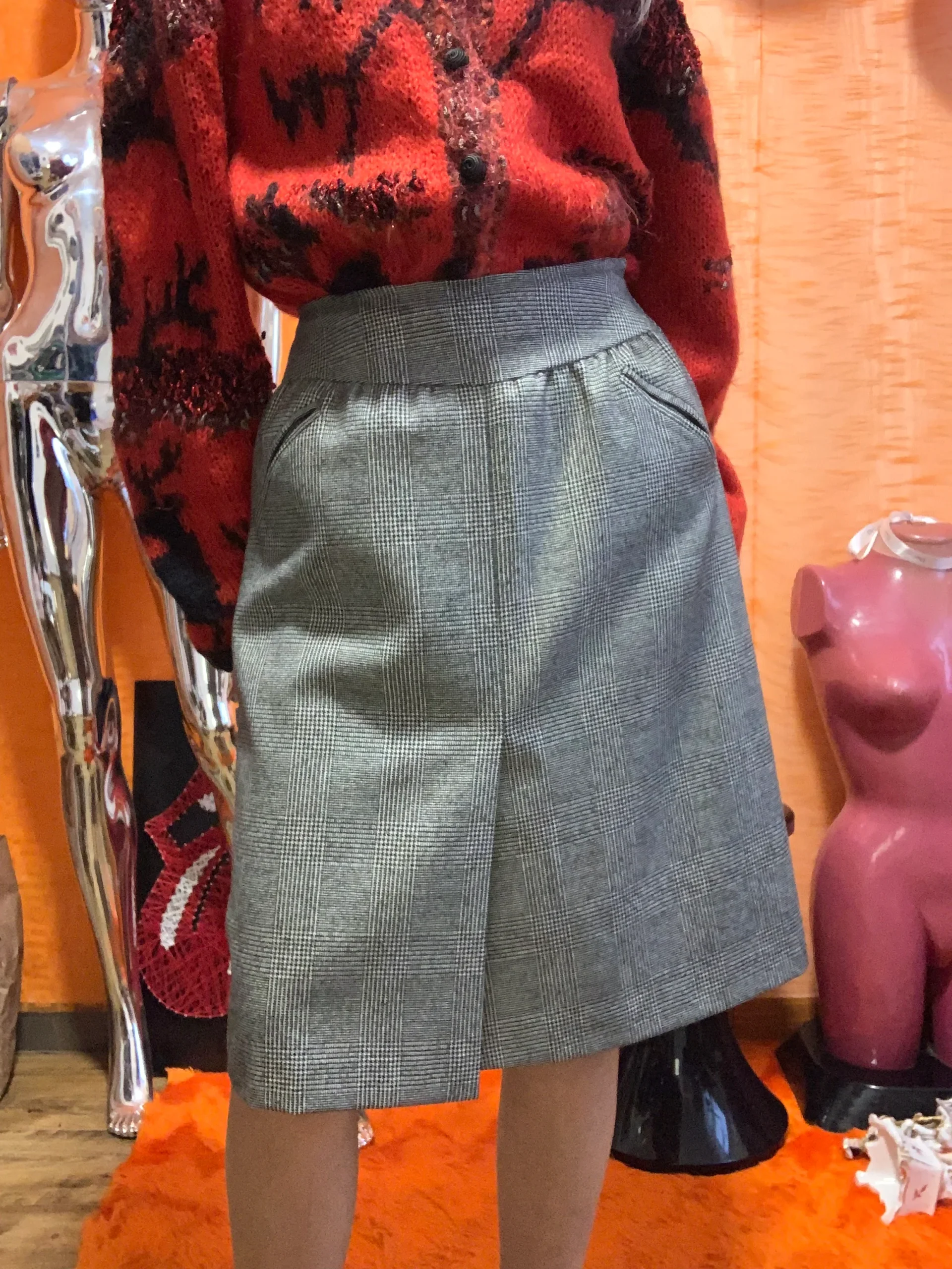 Jupe droite à carreaux Prince de Galles Vintage création faite main