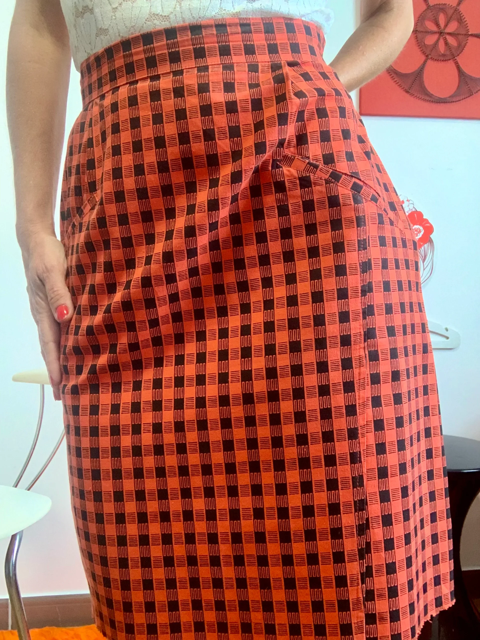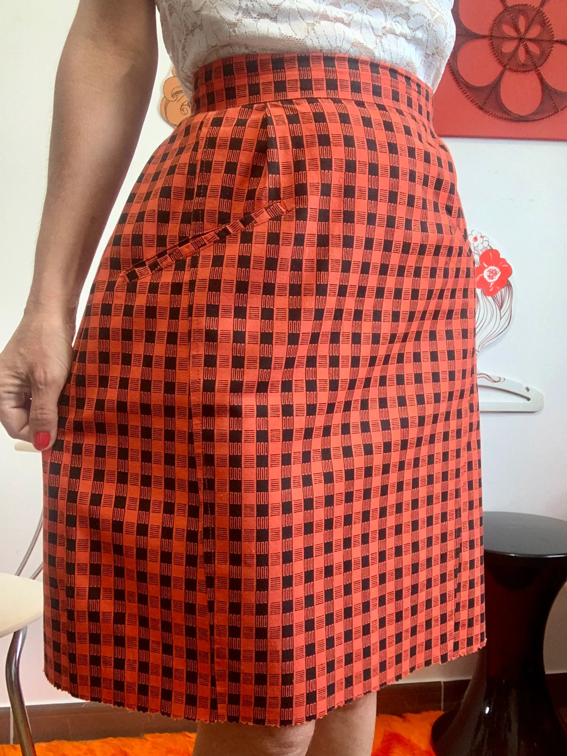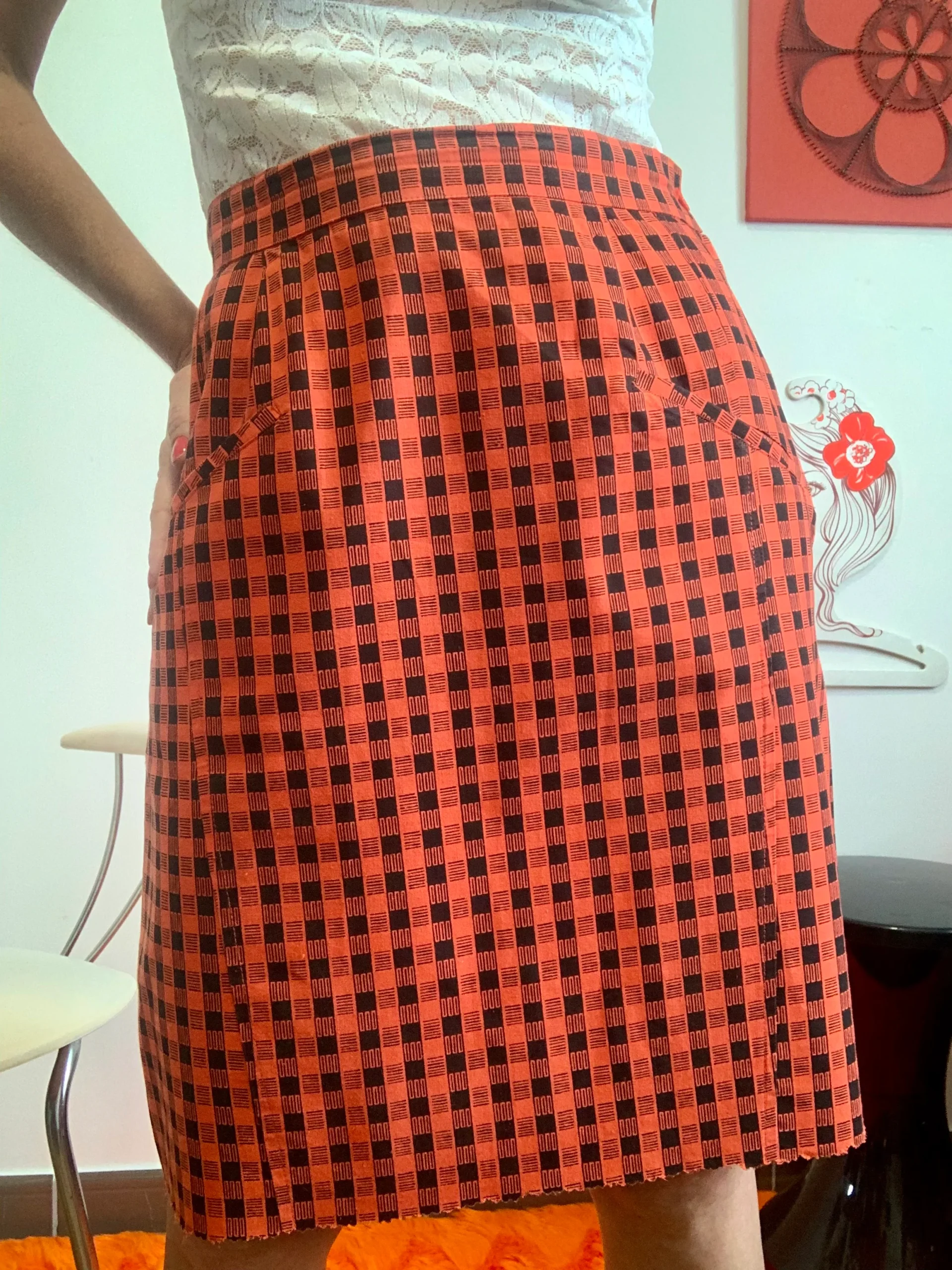Pure Jupe 1980 Fun Vintage Carreaux Noirs/Rouge orangé.