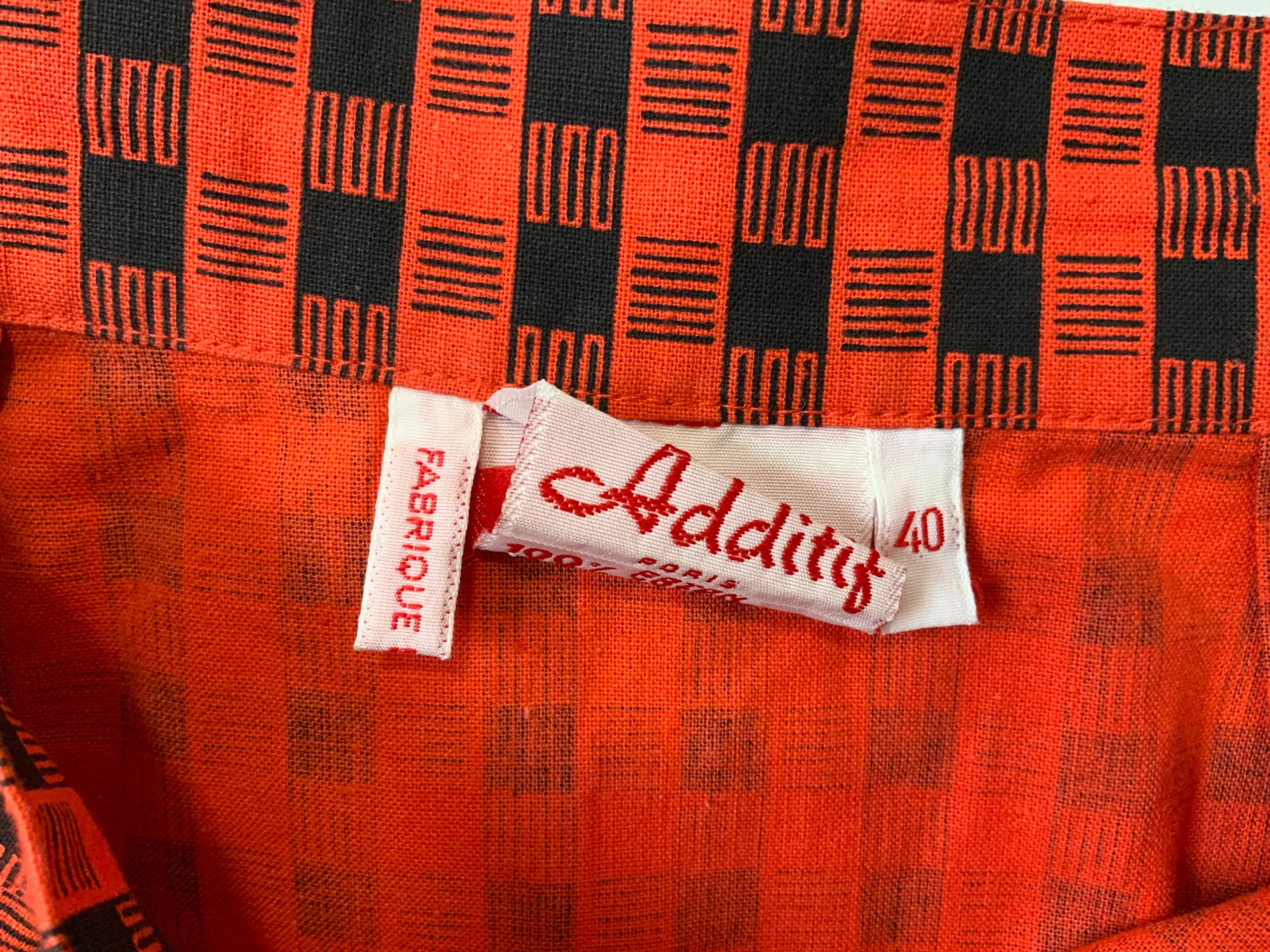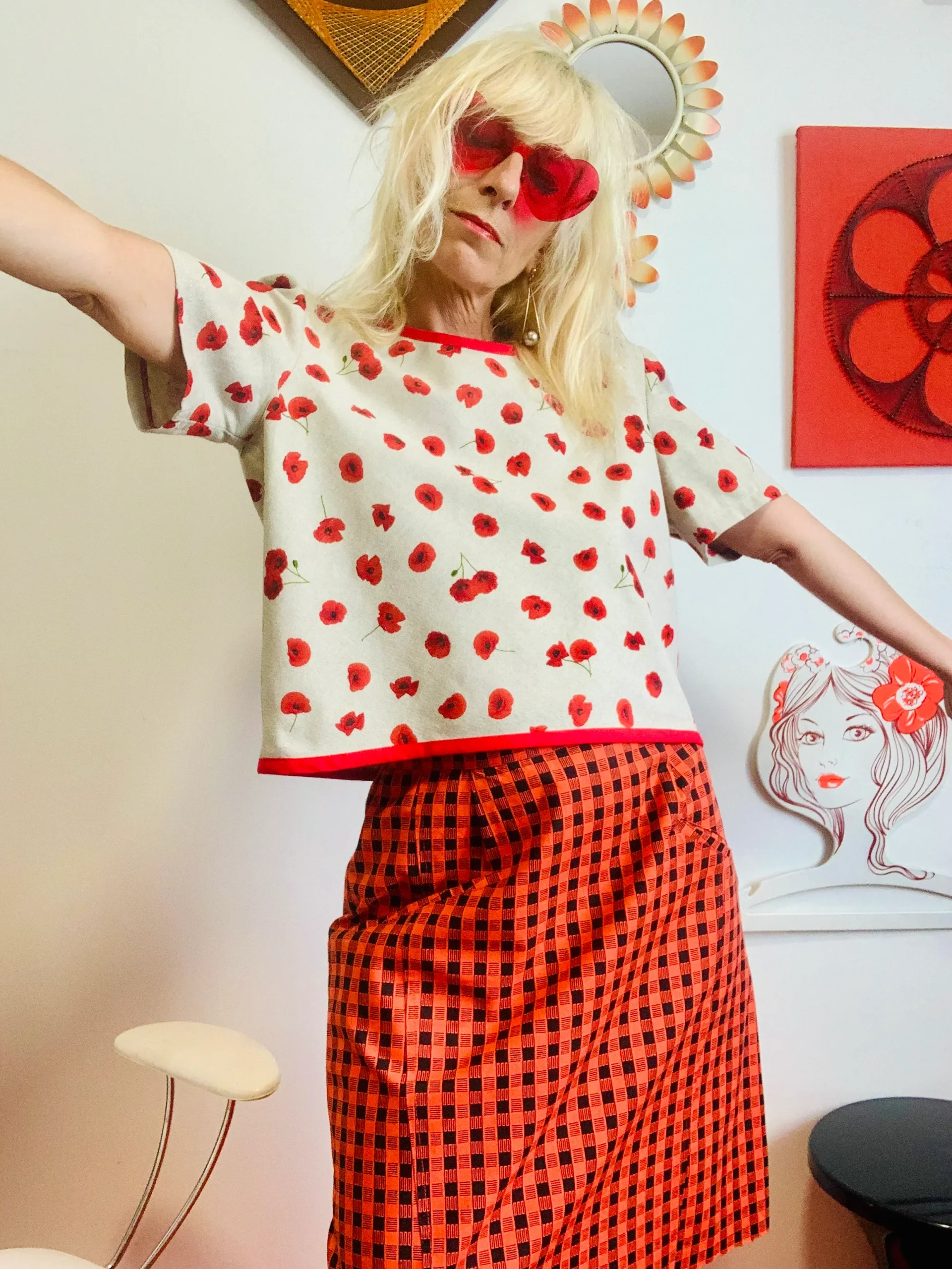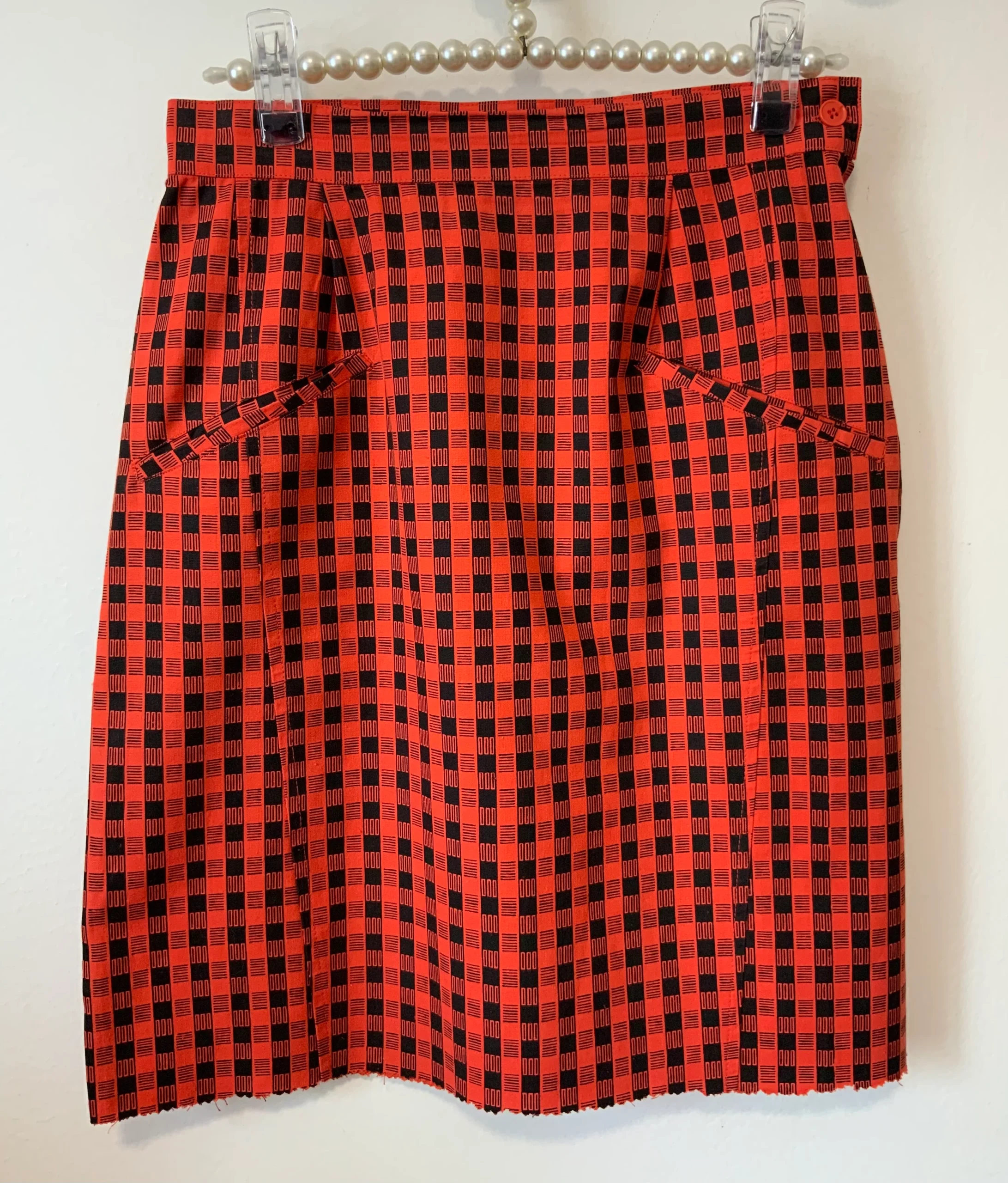 Pure Jupe 1980 Fun Vintage Carreaux Noirs/Rouge orangé.