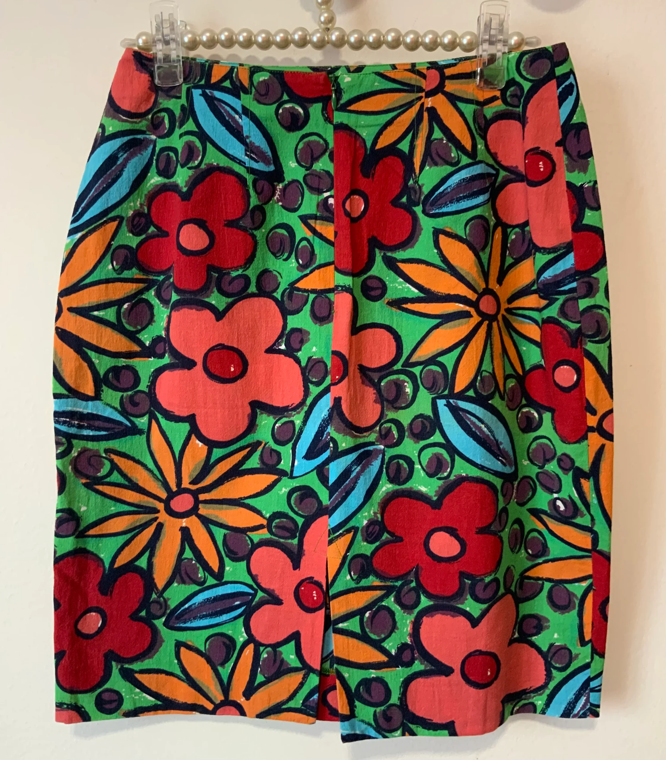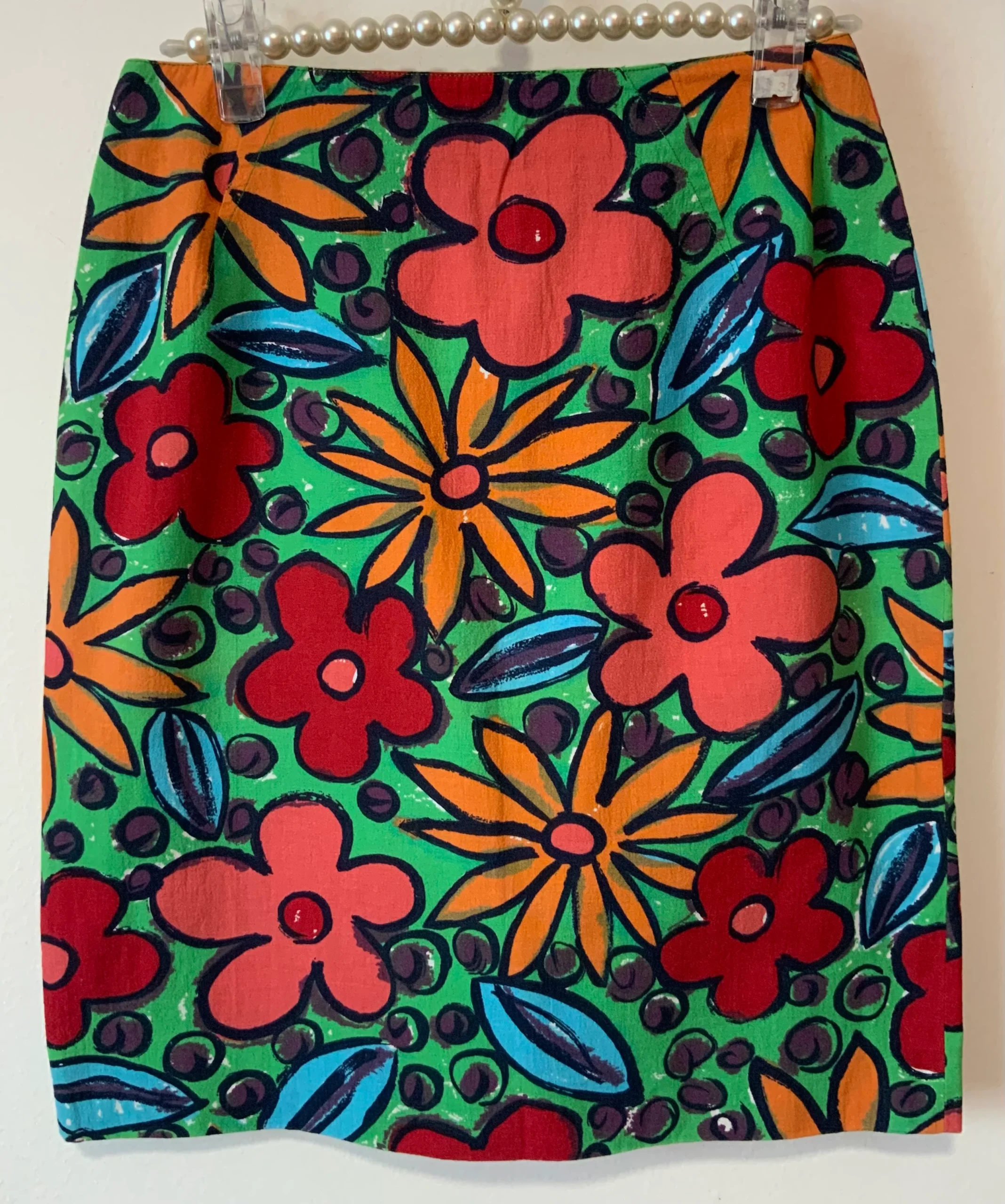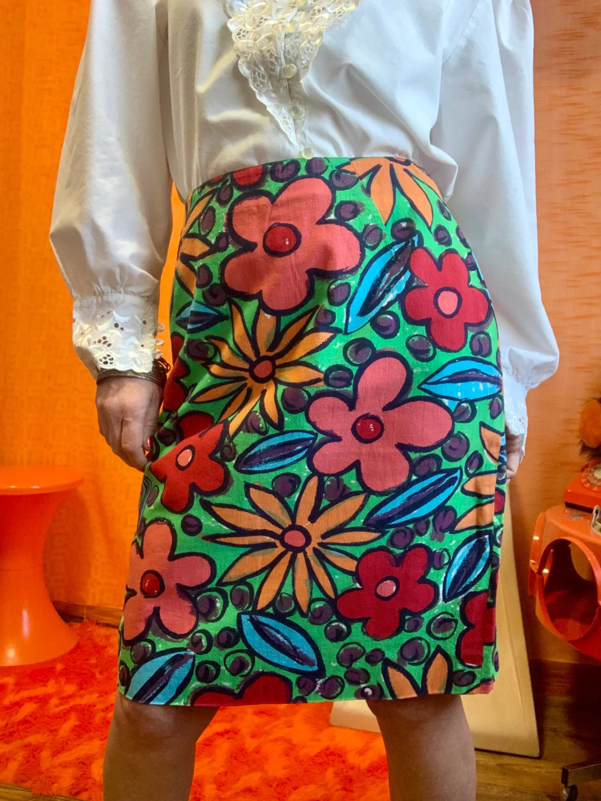 Made in France – Superbe Jupe droite à fleurs colorées Pépite originale Vintage 1980.