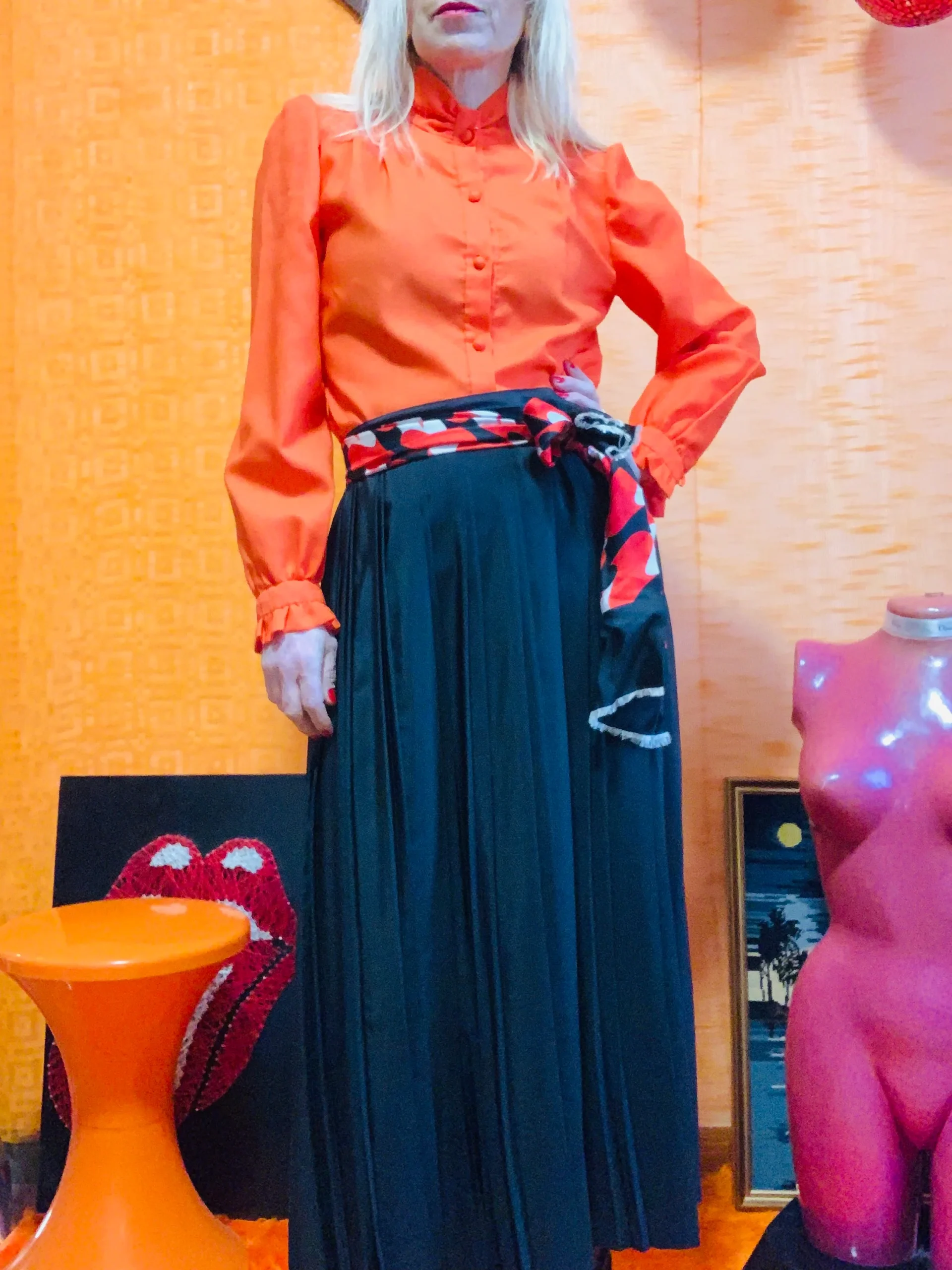 Jupe longue plissée noir Très beau Vintage 1980 fabriqué en France-