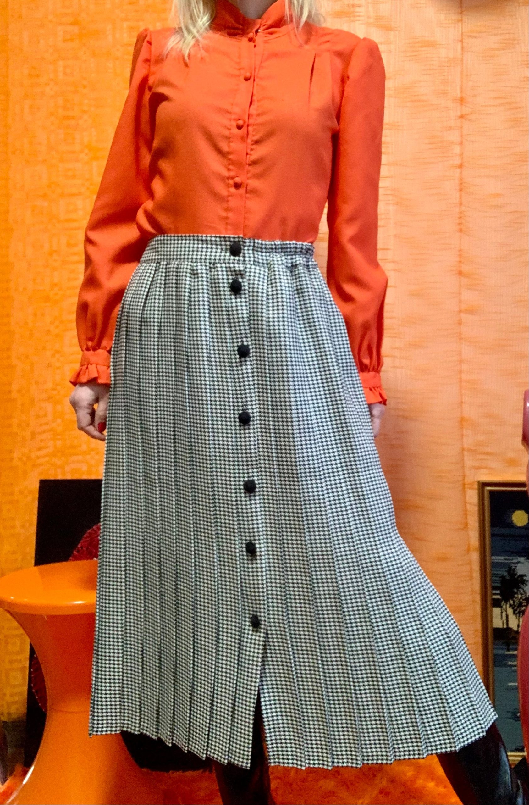 Magnifique Jupe longue à carreaux pieds de poule Boutonnée Très beau Vintage 1980 fabriqué en France-