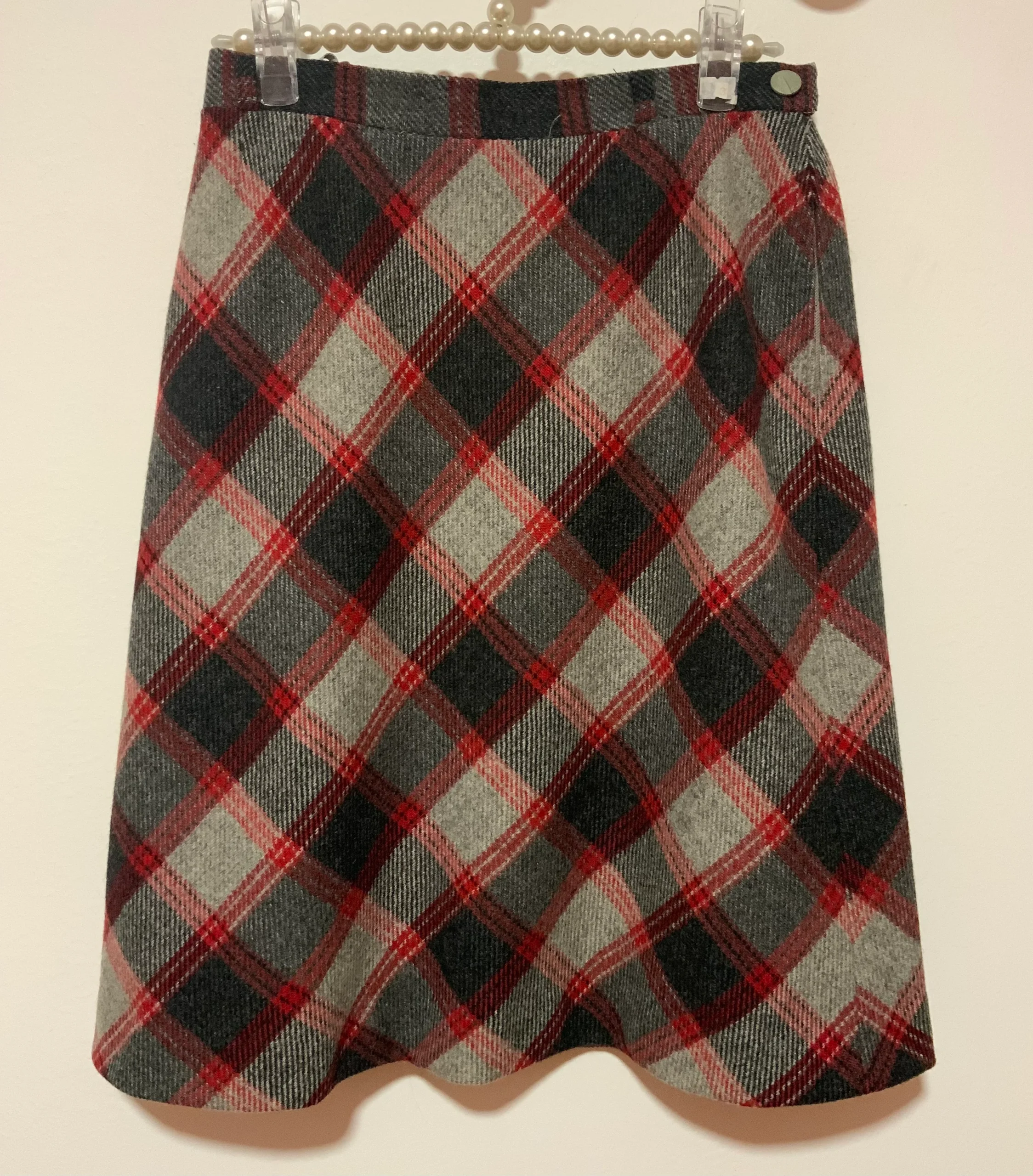 Jupe Laine à carreaux tartan Écossais Faite main création Vintage 1970 – en Laine doublée satiné avec zip et bouton sur le côté – État excellent.