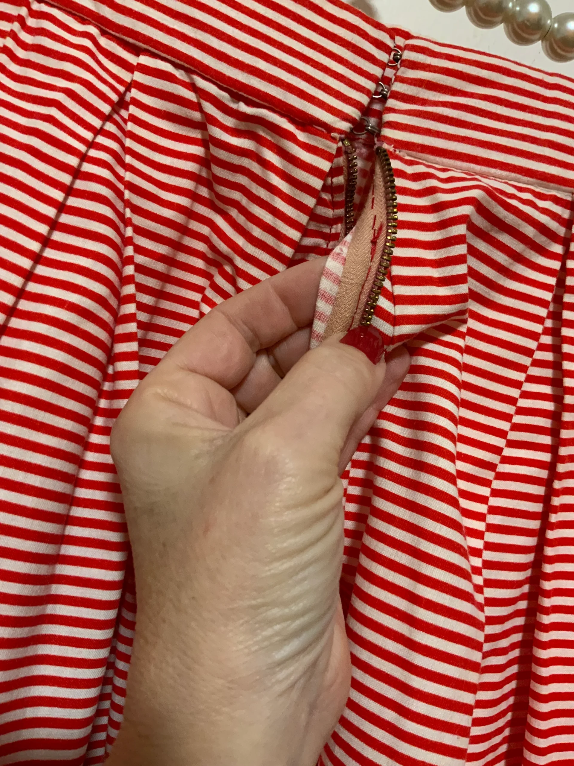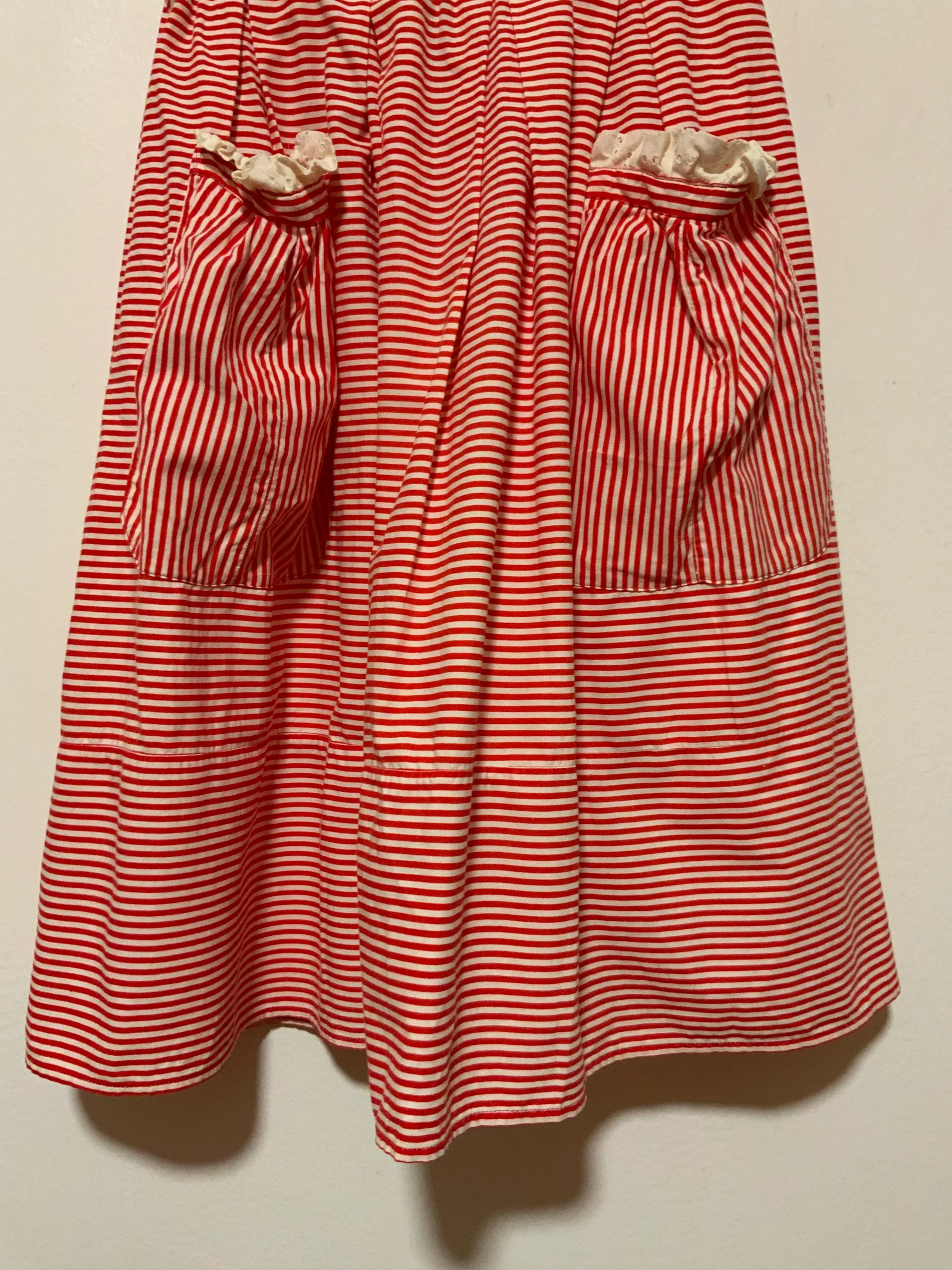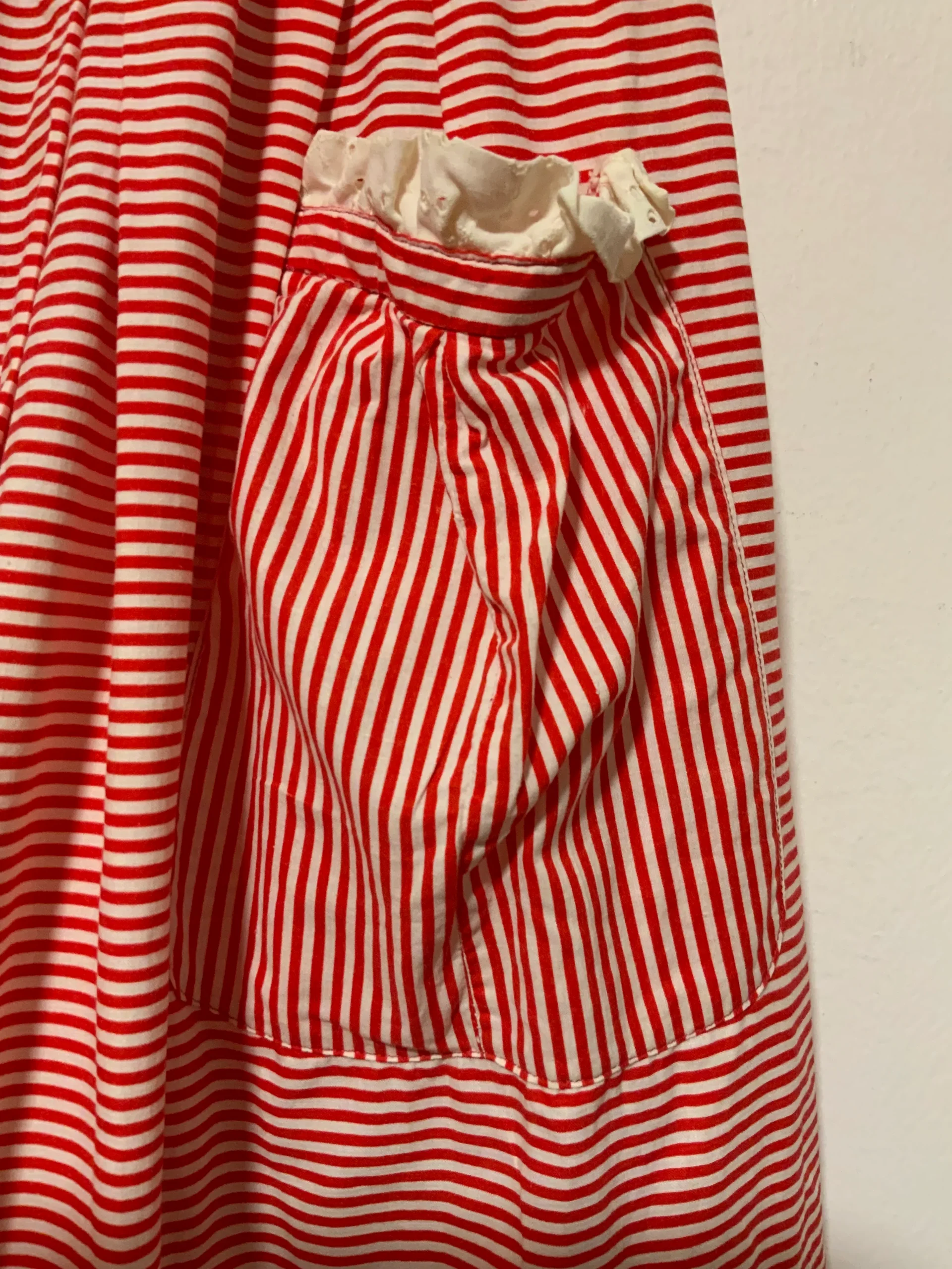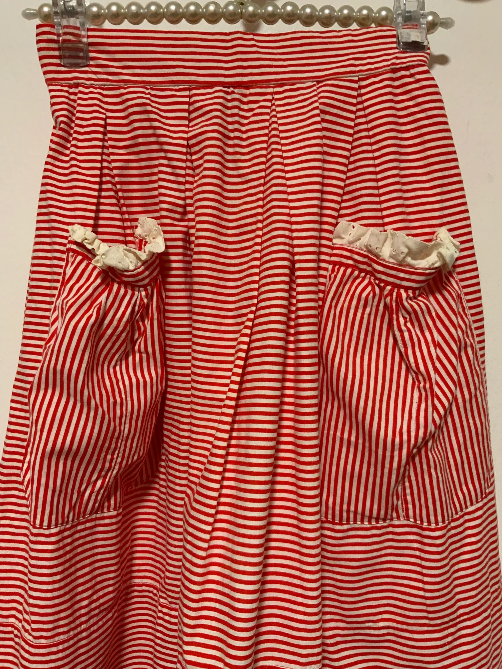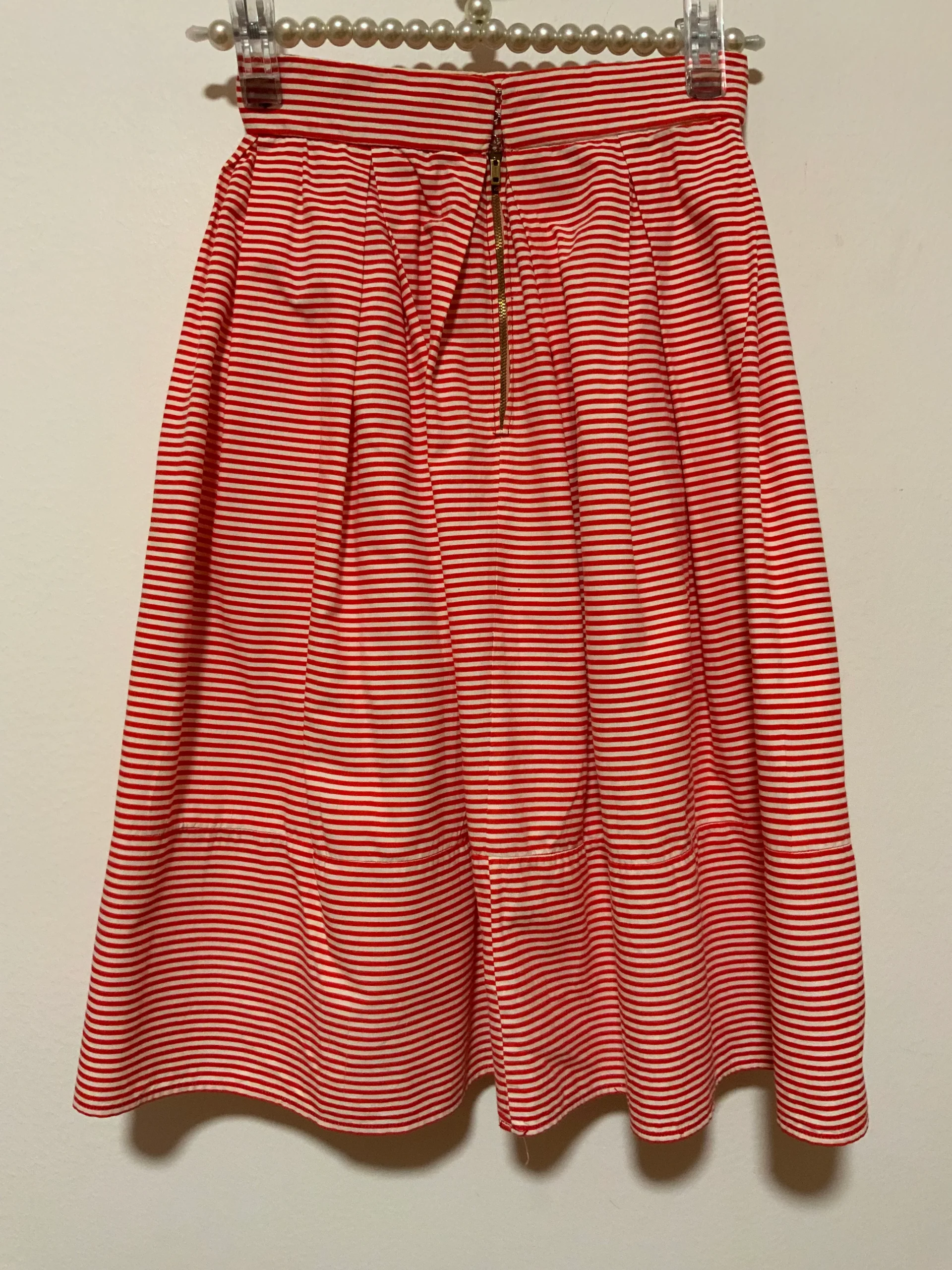 Jupe à rayures Vintage 1970 entièrement confectionnée main – État excellent rouge et blanche en coton.
