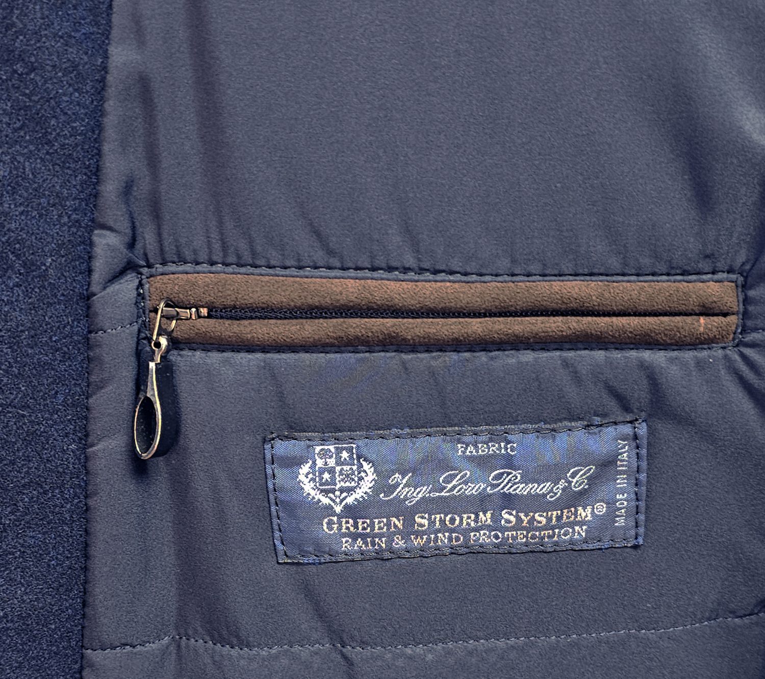 Manteau de voiture, fabriqué en Italie avec le tissu emblématique et luxueux « Loro Piana Storm System ». Isolation légère, coupe-vent et imperméable font de ce manteau le plus chaud et le plus pratique que vous puissiez posséder.