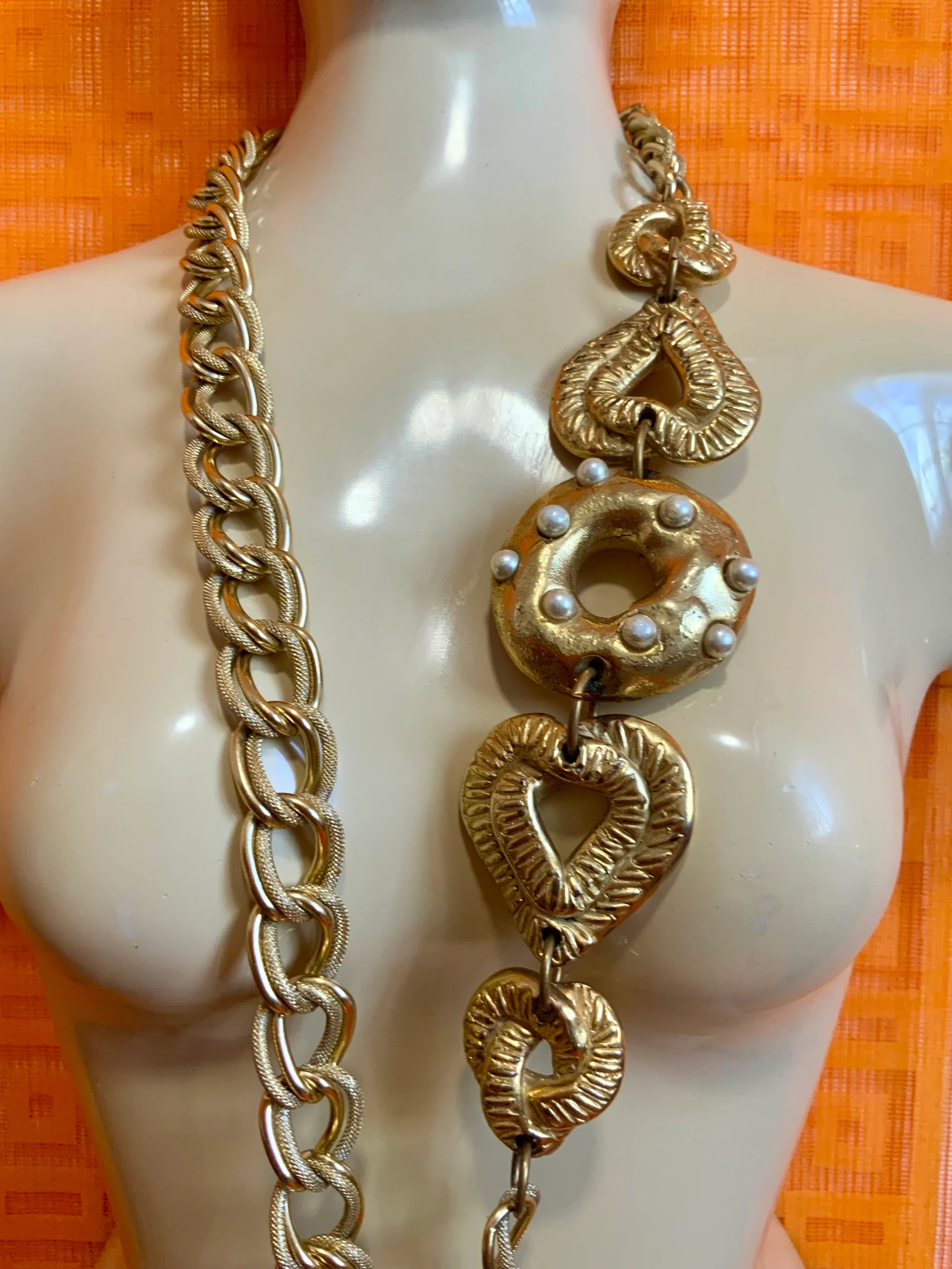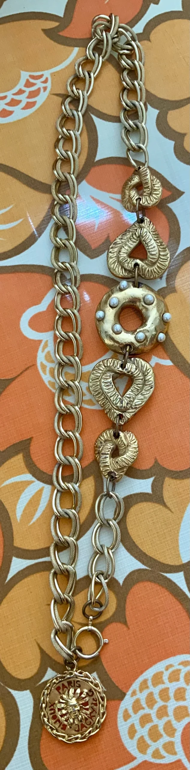 Metal double chaîne maillons avec motifs coeurs et ronds avec logo et perles. Ajustable taille unique, une merveille !