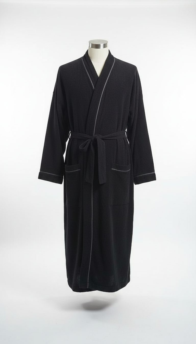 Pour les clients qui recherchent le luxe dans leur chambre à coucher, nous proposons une excellente robe de chambre en laine et cachemire. La texture douce du tissu ajoute une touche d’élégance à cette robe de chambre classique.