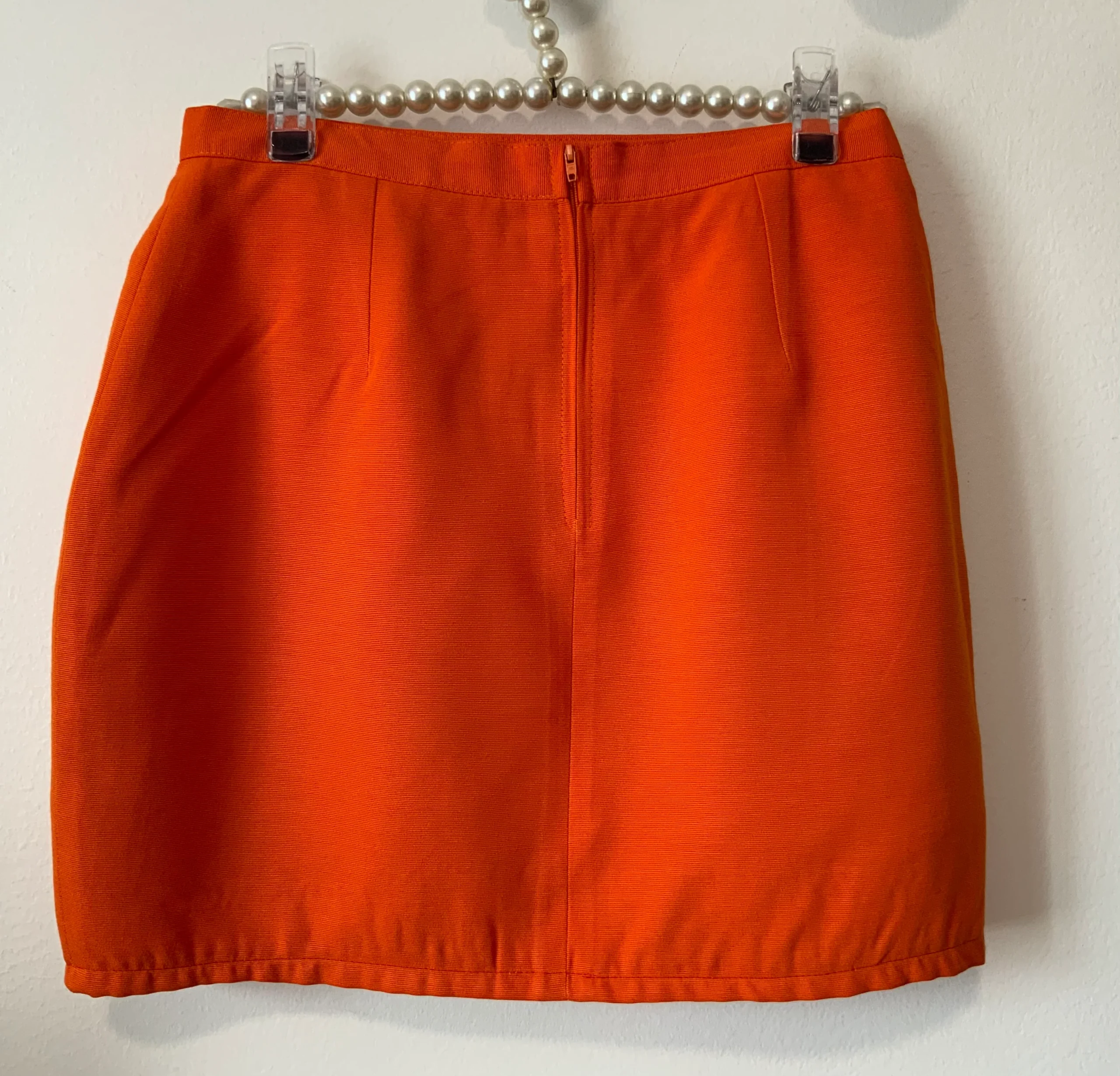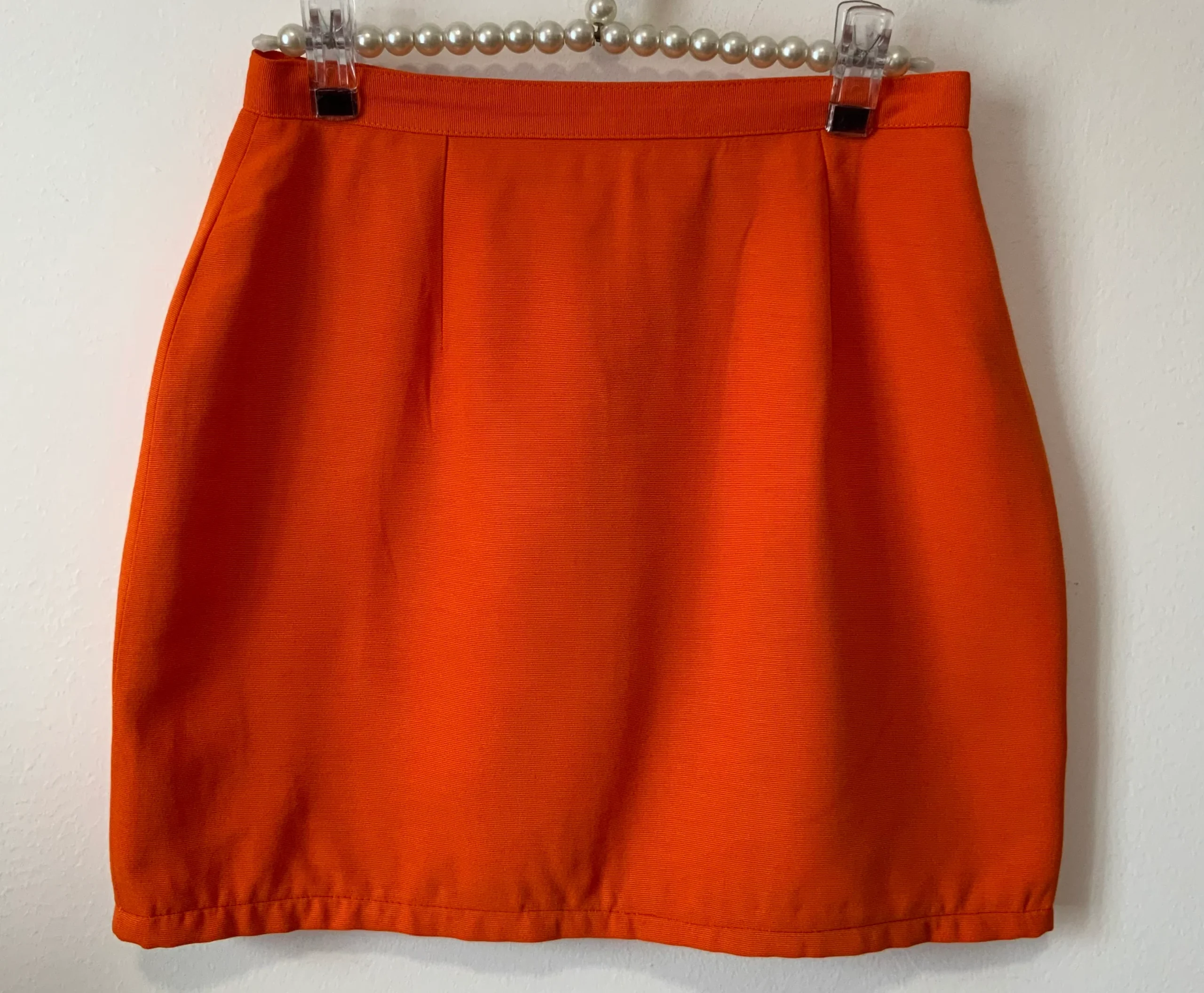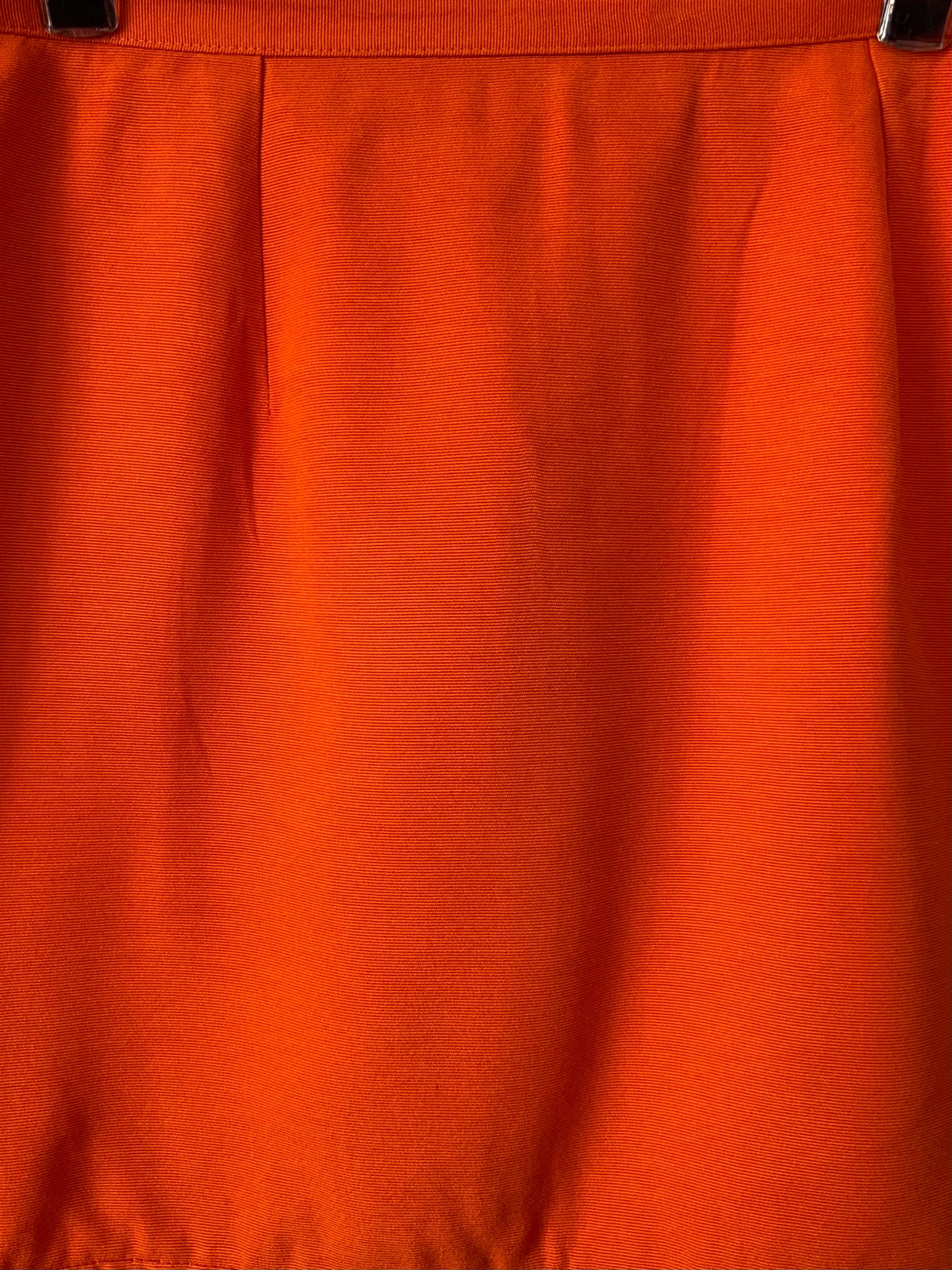 Jupe courte orange Vintage 1990 entièrement doublée Polyester viscose excellent état Marque Pecca – Made in France