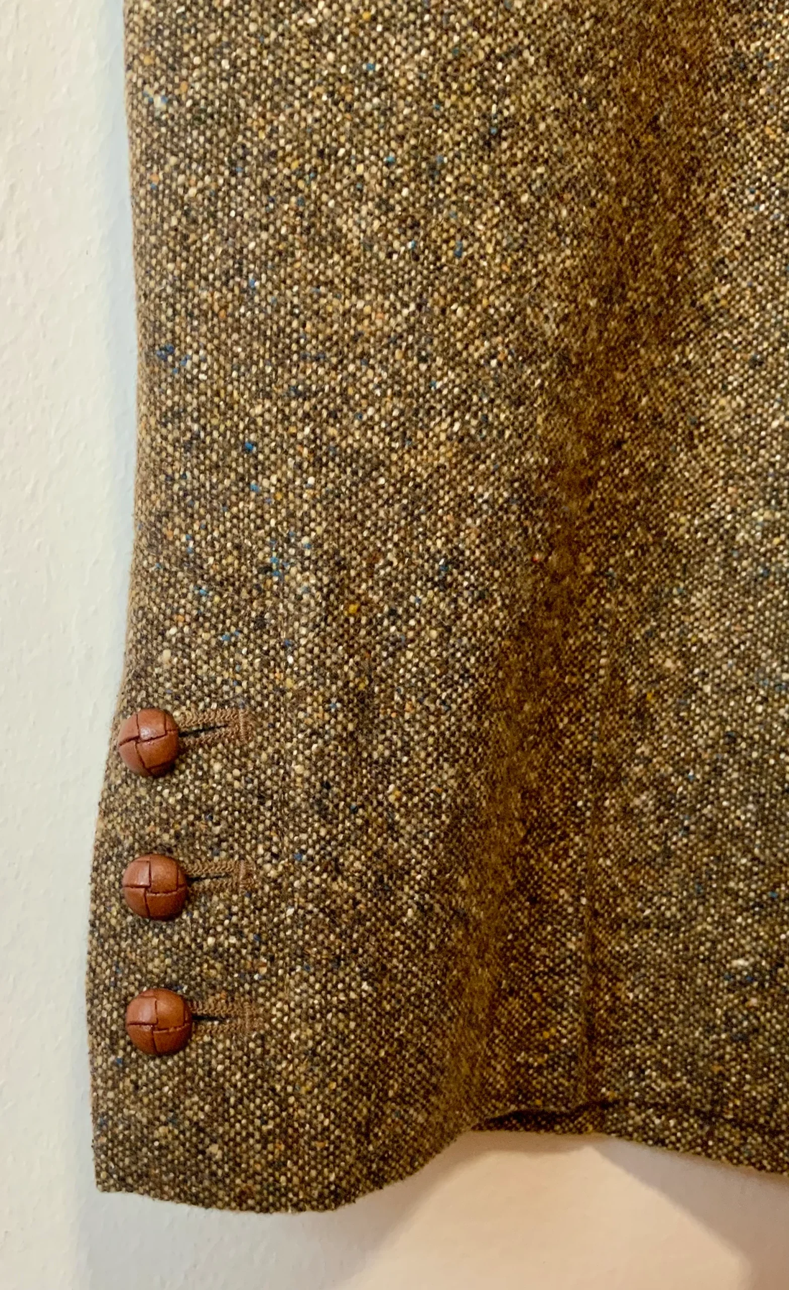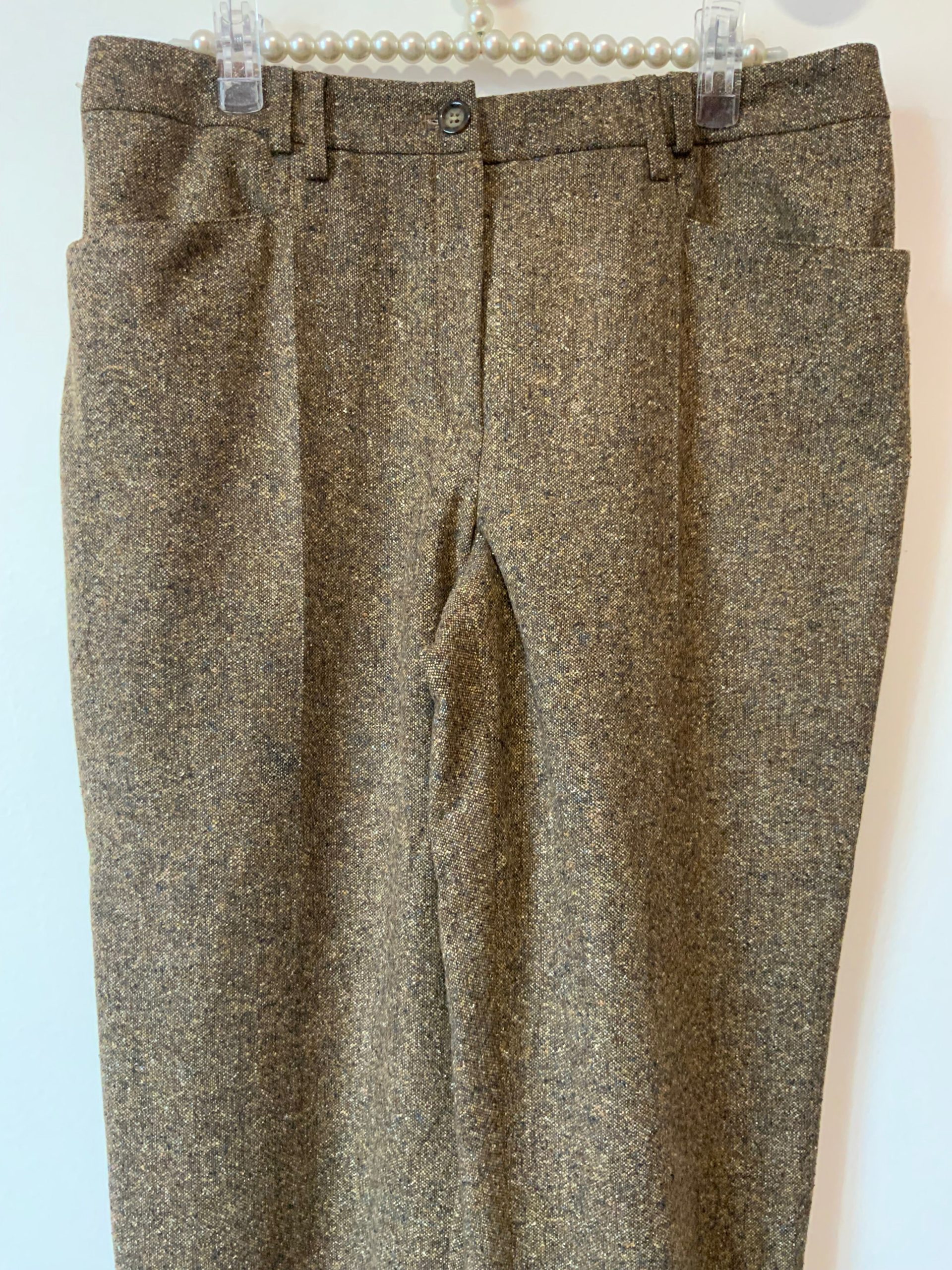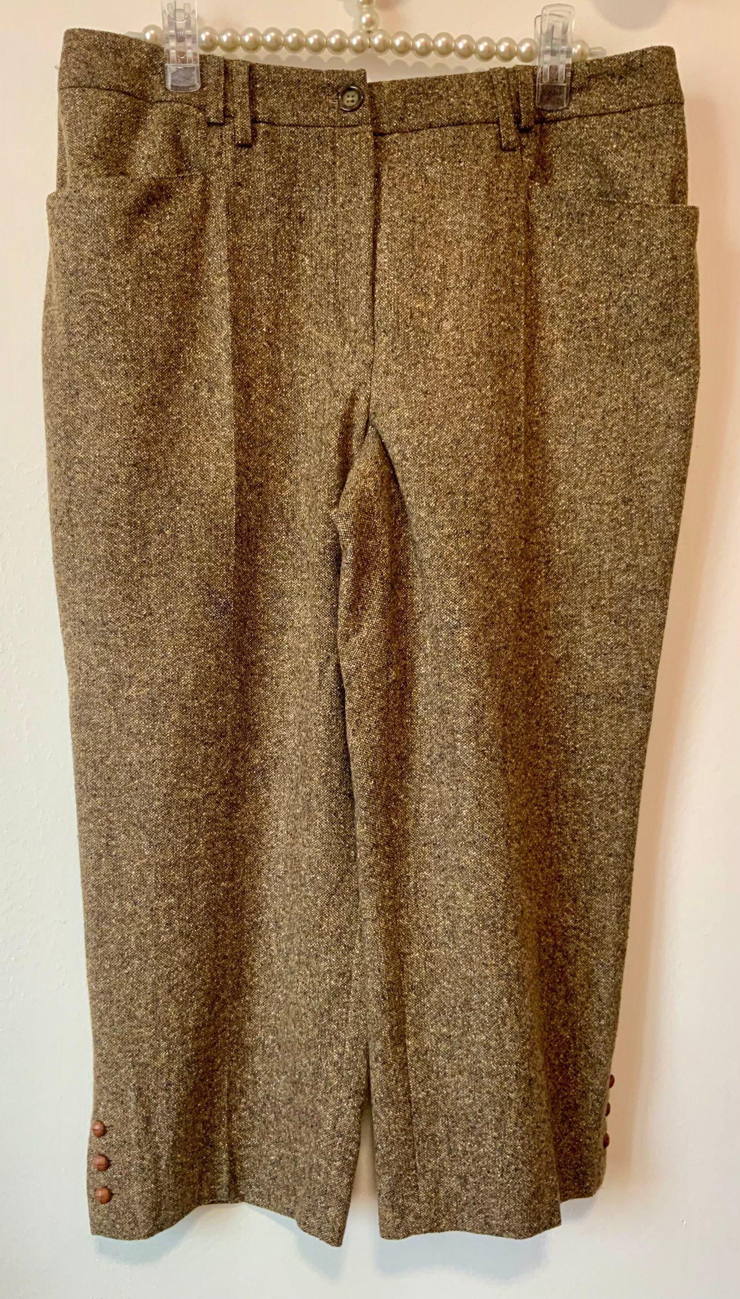 Tres beau PantaCourt marron chiné avec poches passepoilées et magnifiques petits boutons bas de jambes effet cuir.