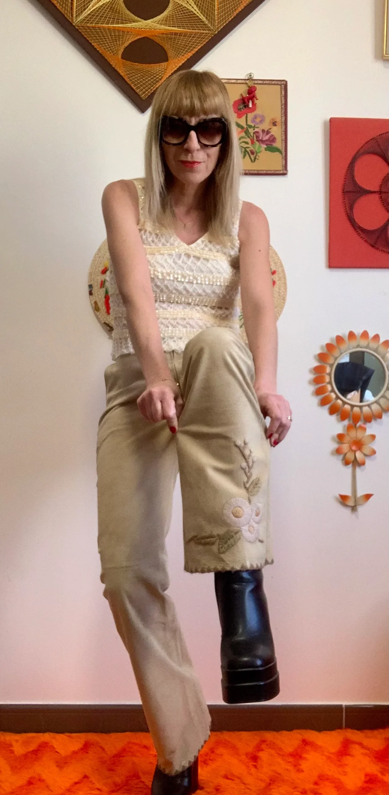 Soyez le premier à laisser votre avis sur “Pantalon Daim beige et Fleurs brodées en bas Beauté Vintage 1990”