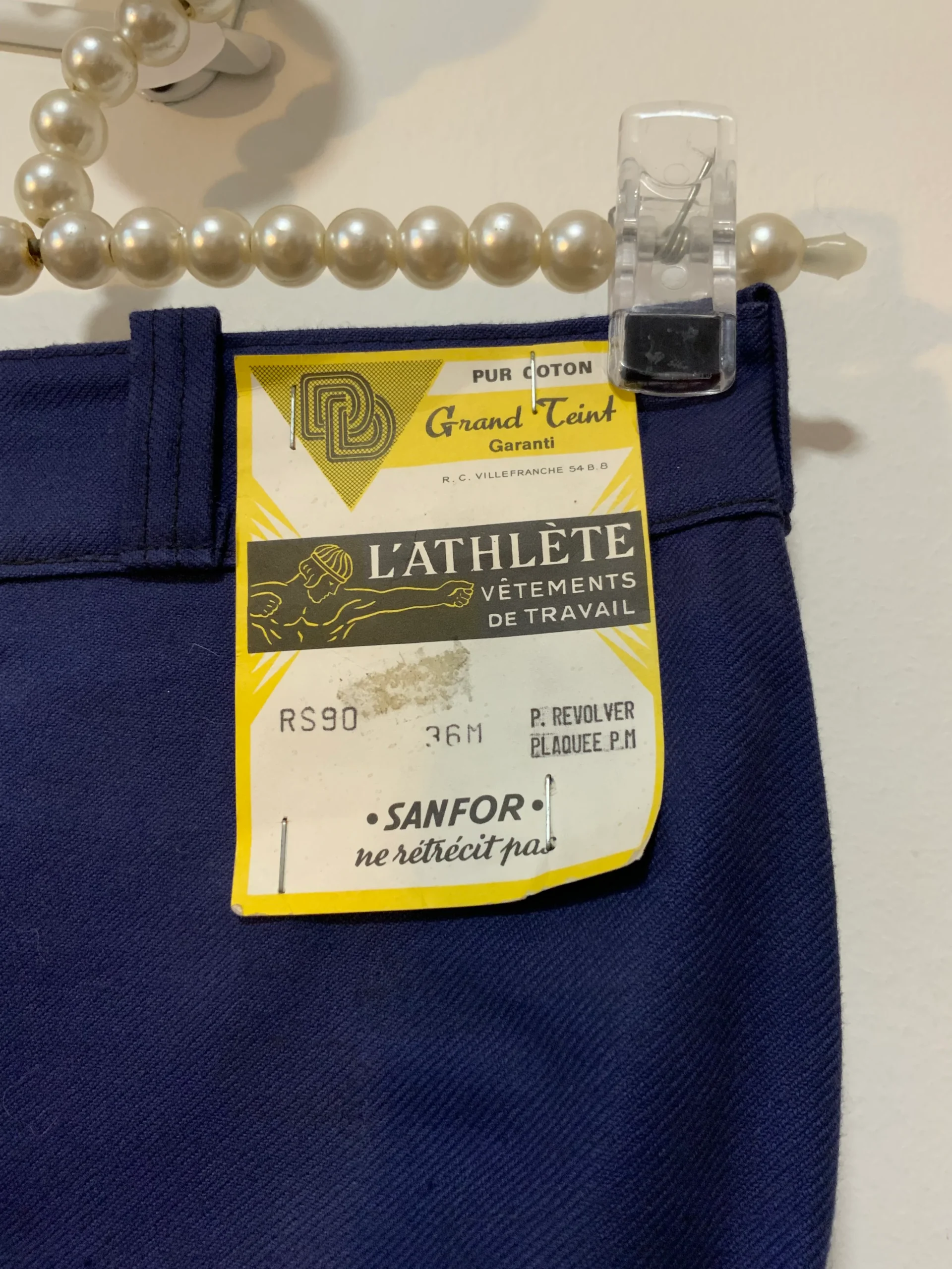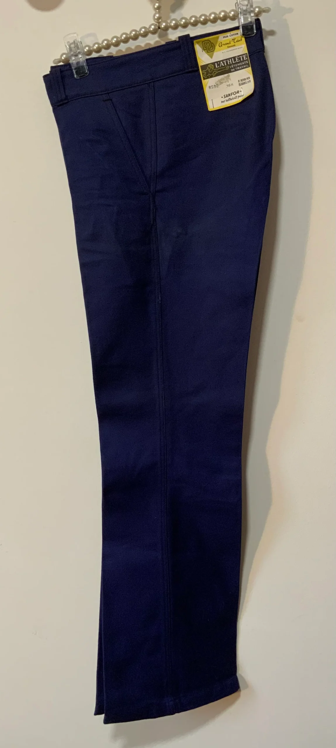 Pantalon Bleu de travail pattes d’éléphant Flare Denim Provenance stock rétro 1970/80 Marque L’Athlete vêtement de travail, Pur coton grand teint garanti, Sanfor ne rétrécit pas, fait en France Villefranche.