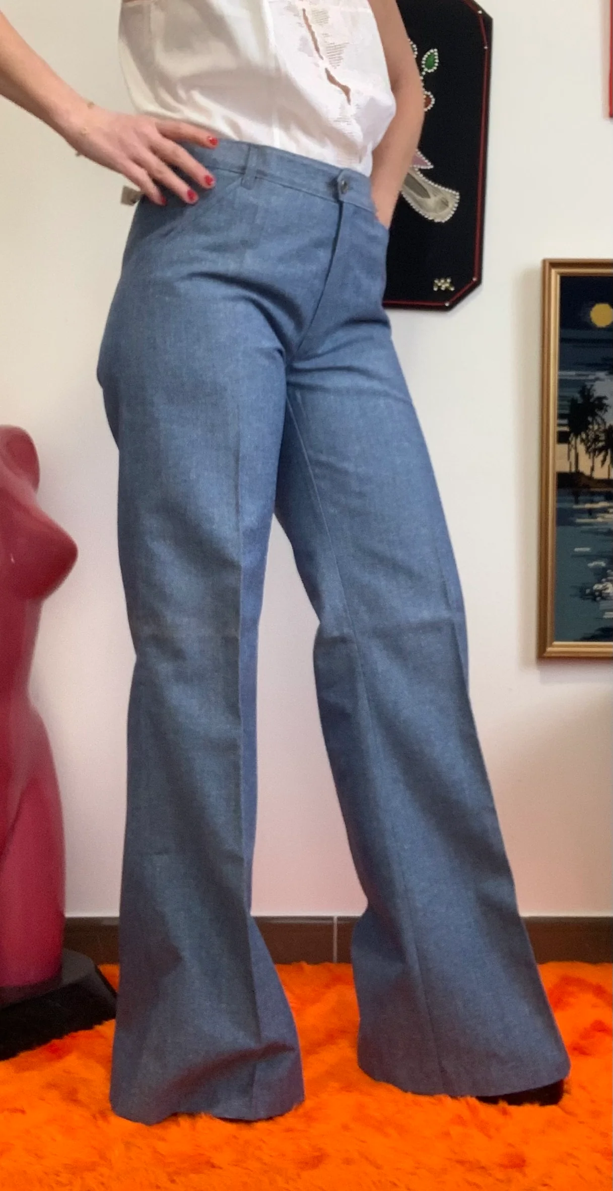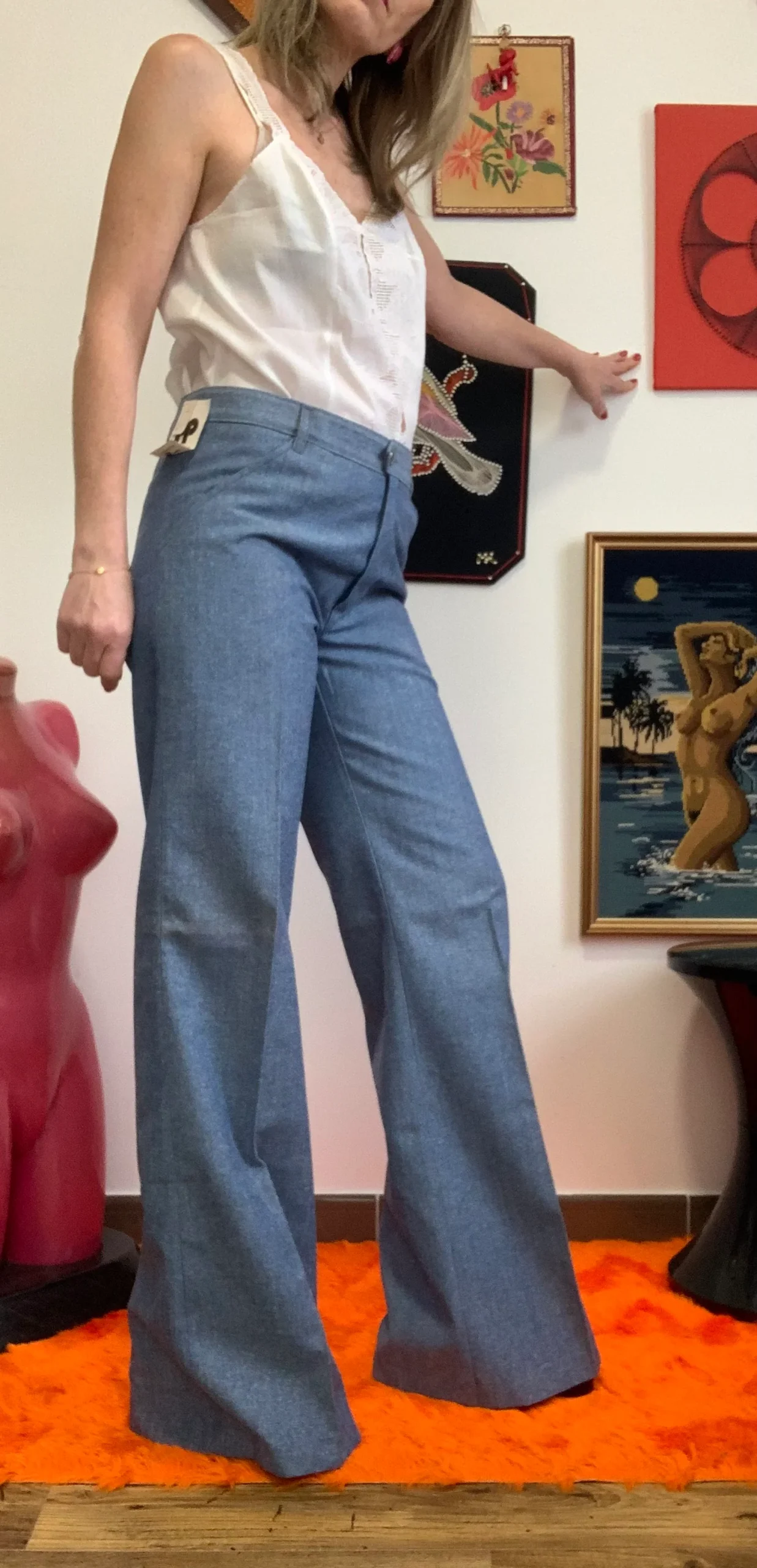 Pantalon Flare Pattes d’éléphant Bleu Deadstock 1970 Vintage