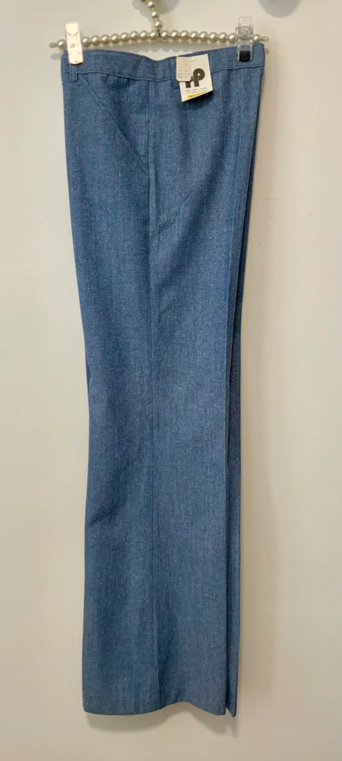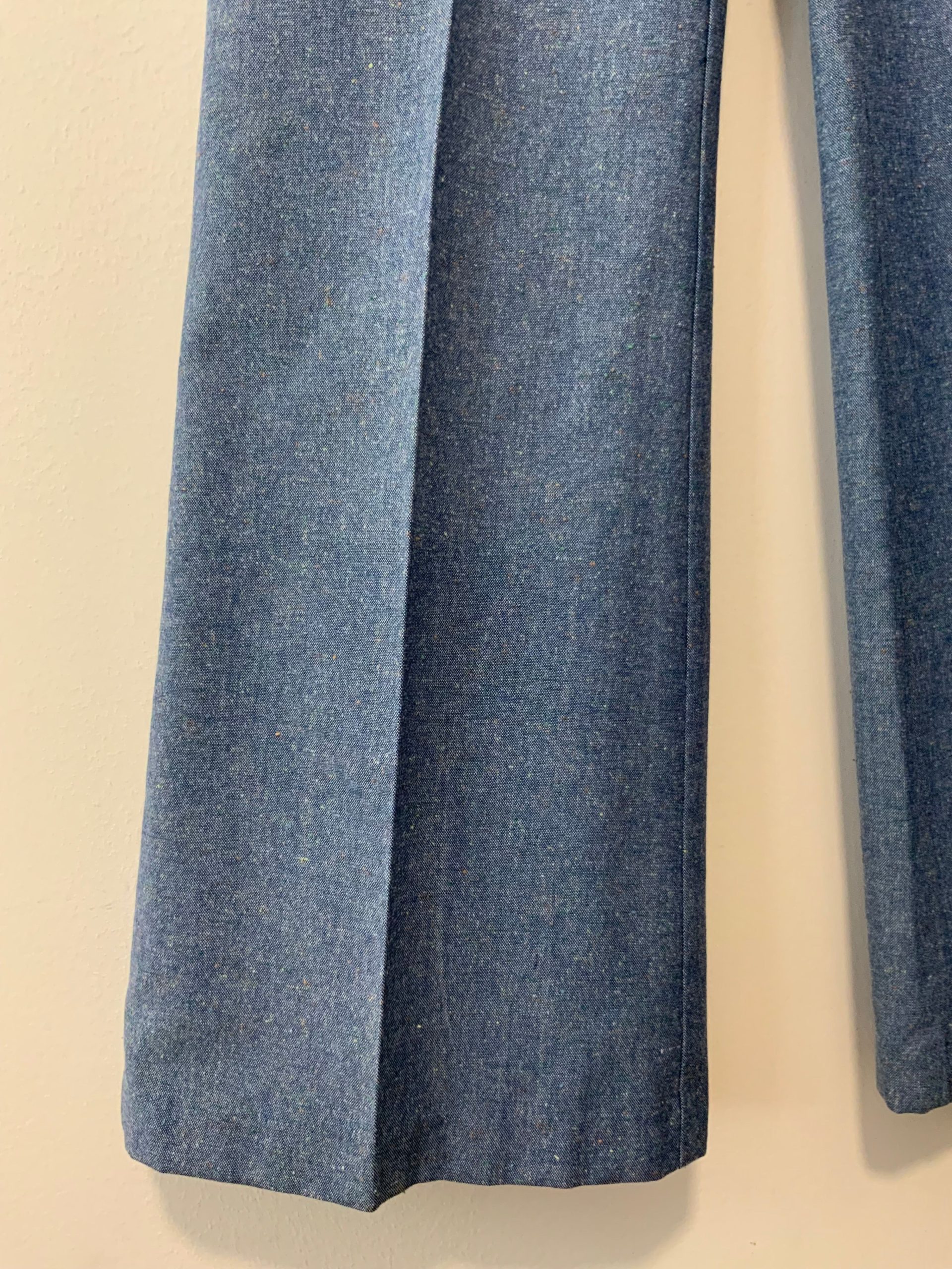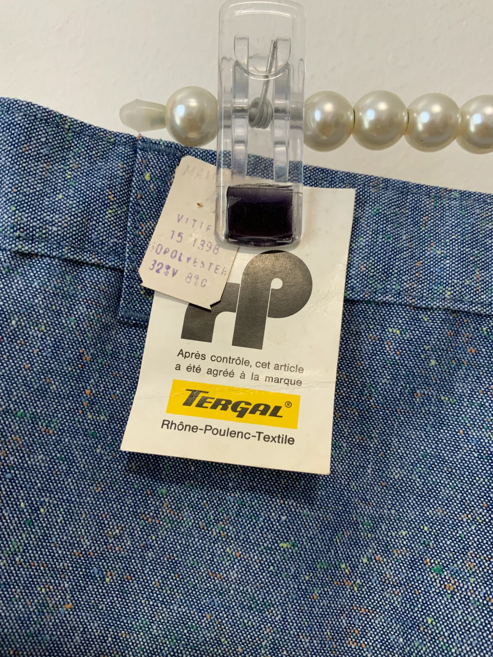 Superbe Pantalon Pattes d’éléphant Bleu clair chiné couleurs – Authentique Vintage 1970 Stock Neuf 1970 Tergal.