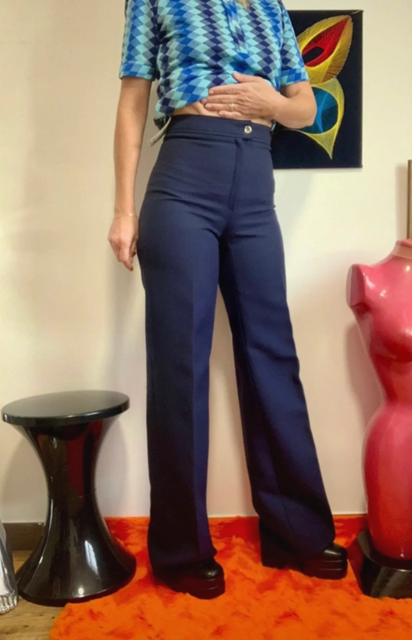 Très beau et large pantalon Tergal 1970 Deadstock avec ses étiquettes neuves, Made in France pattes d’éléphant.