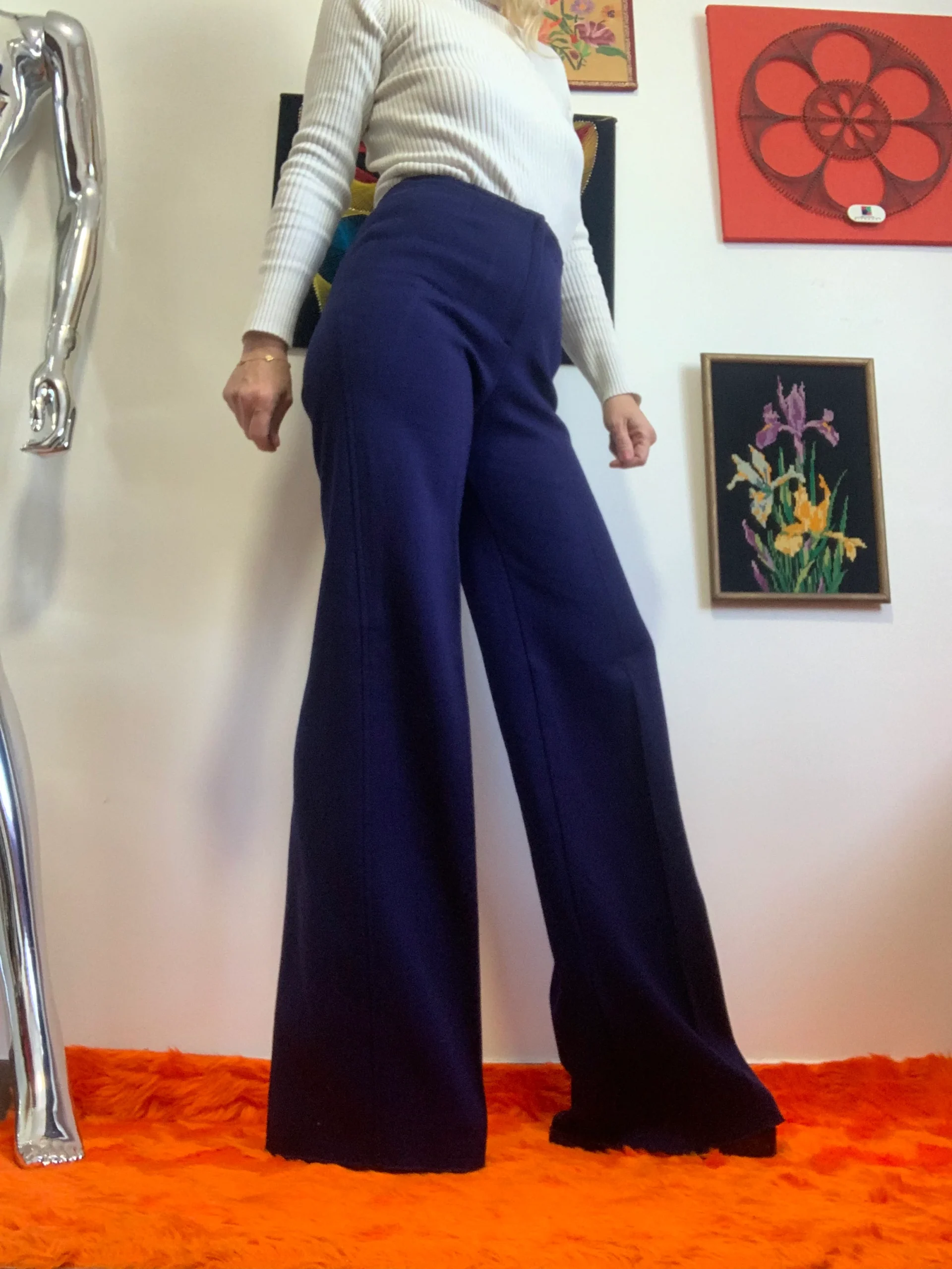 Sublime pantalon Pattes d’éléphant Flare 1970 Vintage Chic et authentique Made in France Dralon tout confort matière extensible.