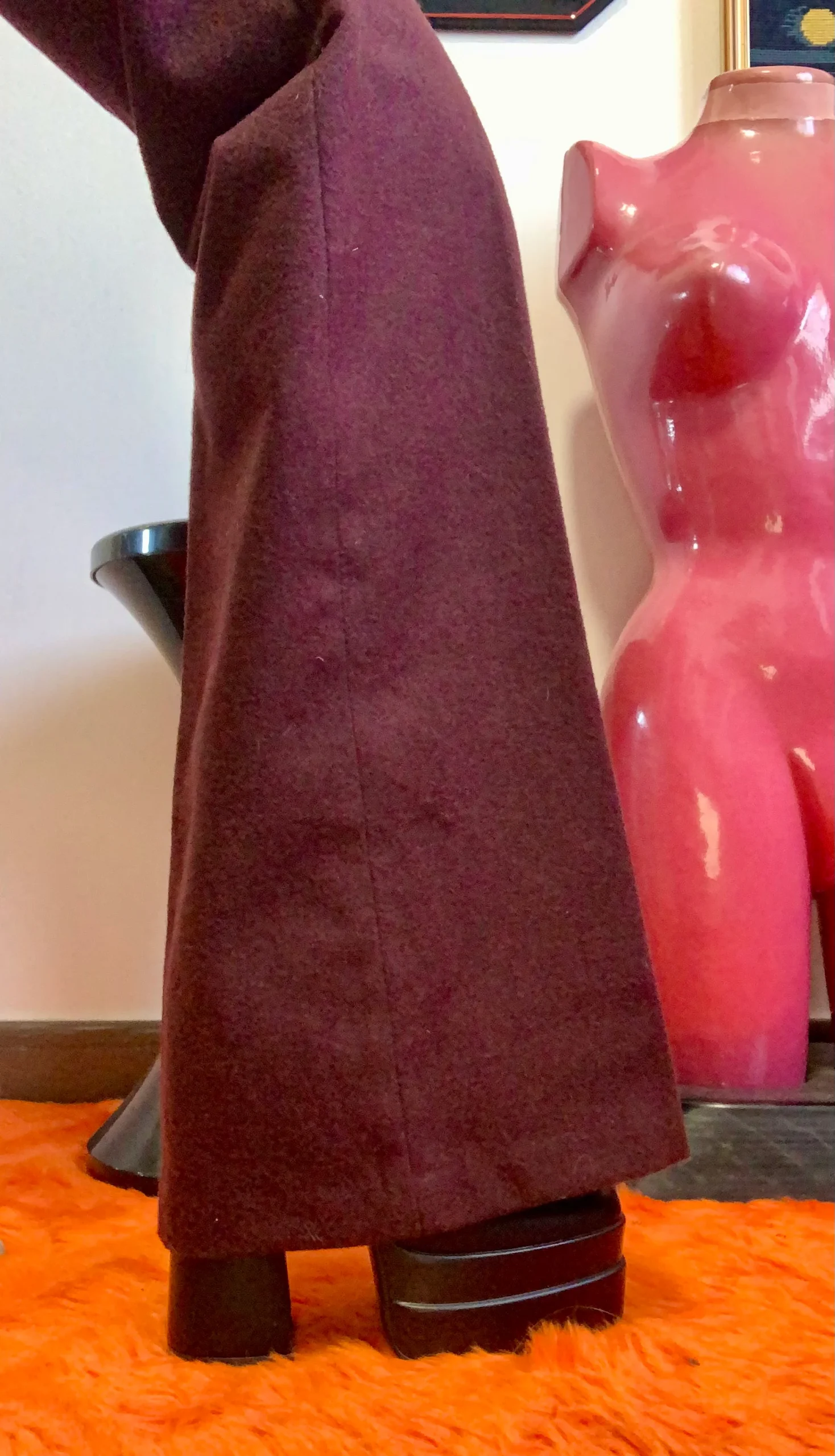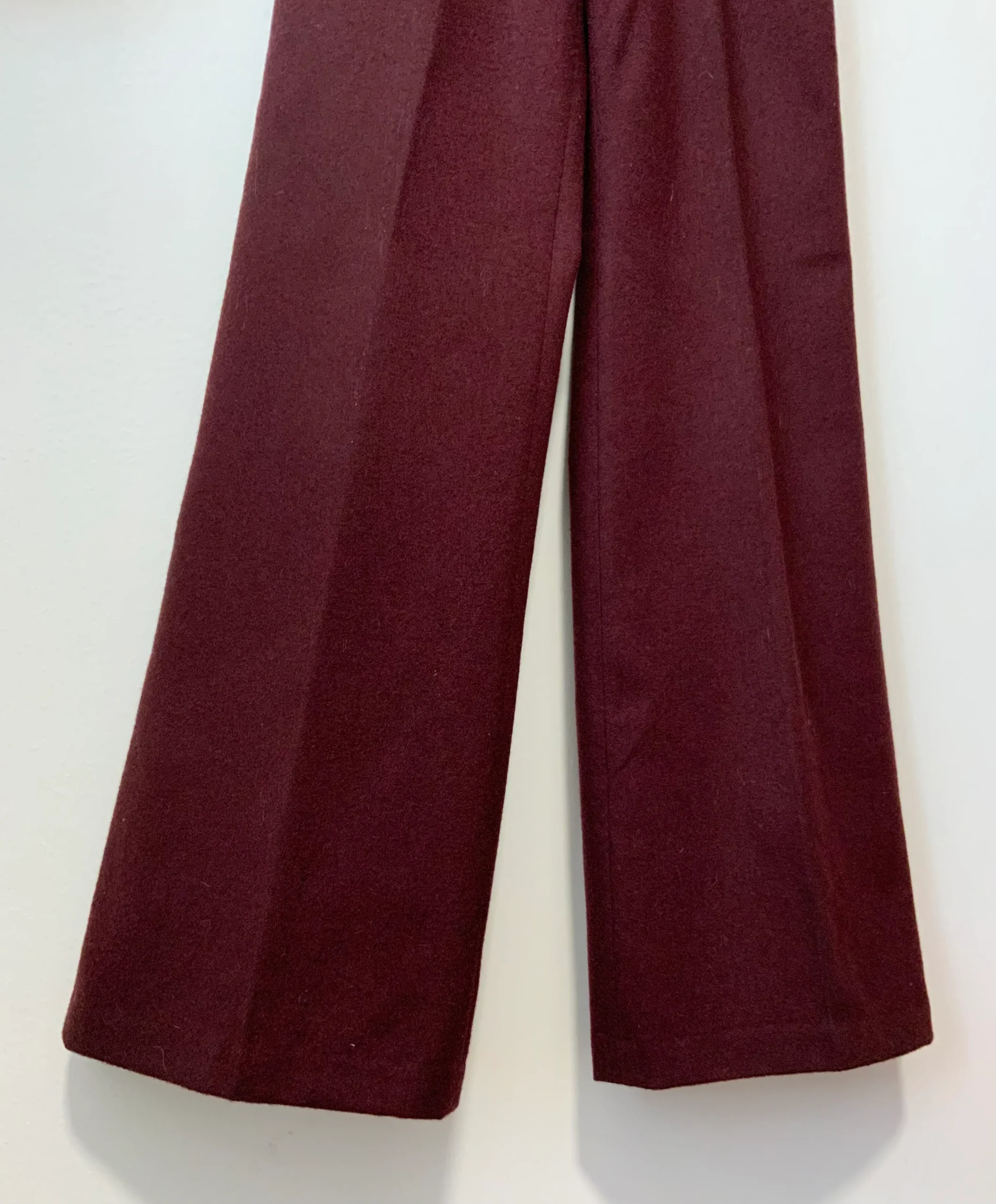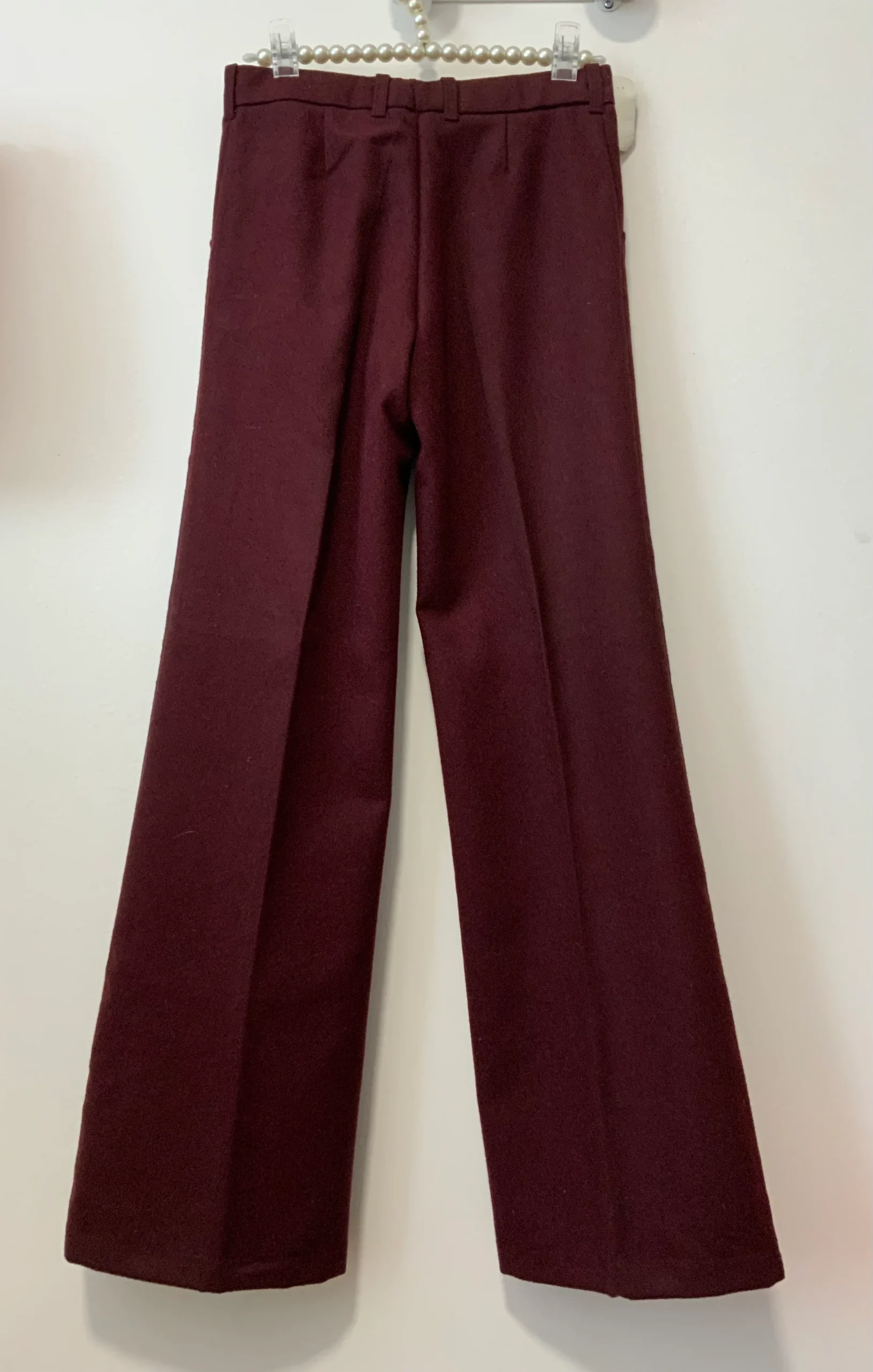 Très beau pantalon flare pattes d’éléphant 1970 Vintage de couleur bordeaux, Taille très haute – Une coupe sublime Seventies !