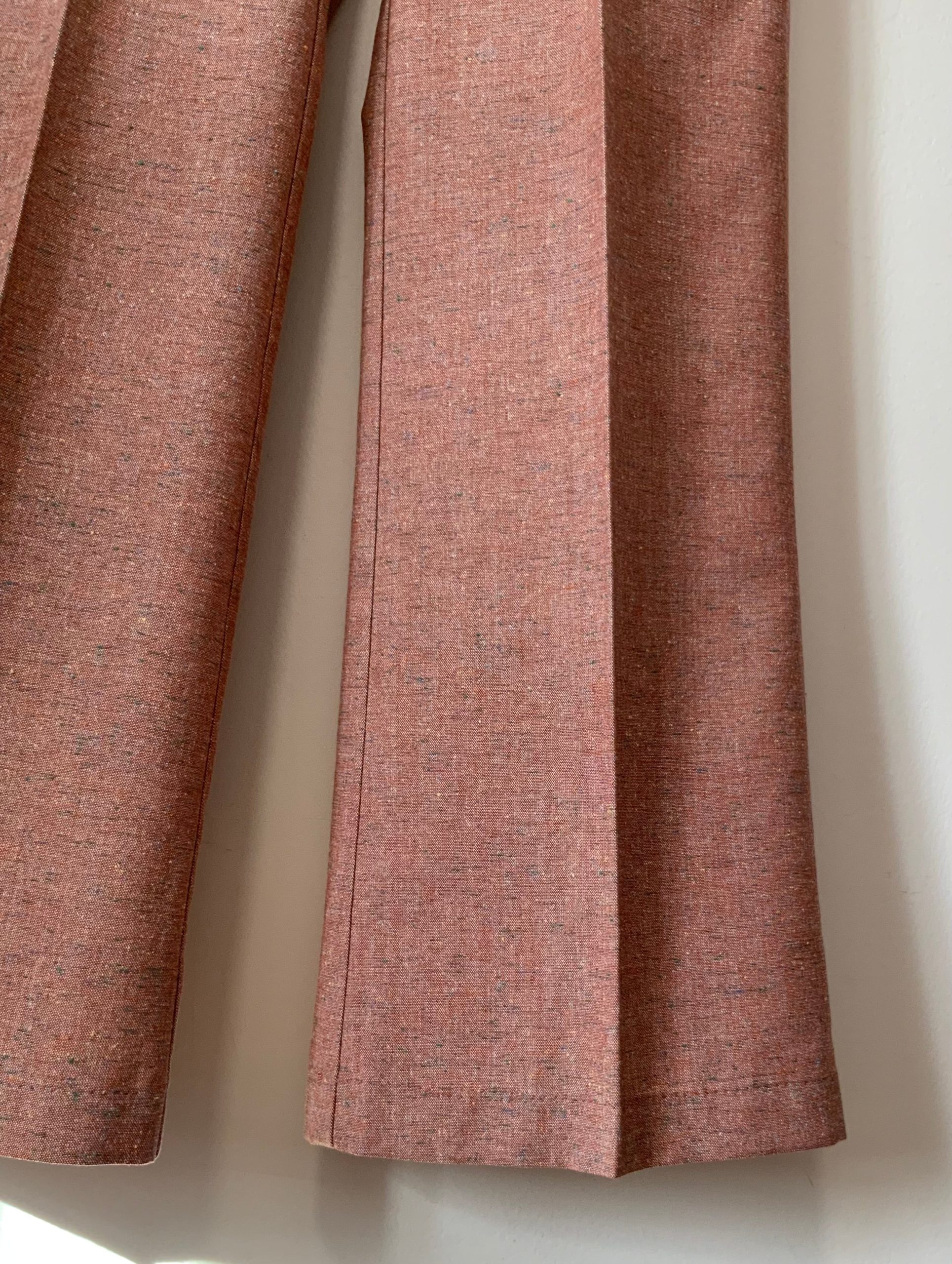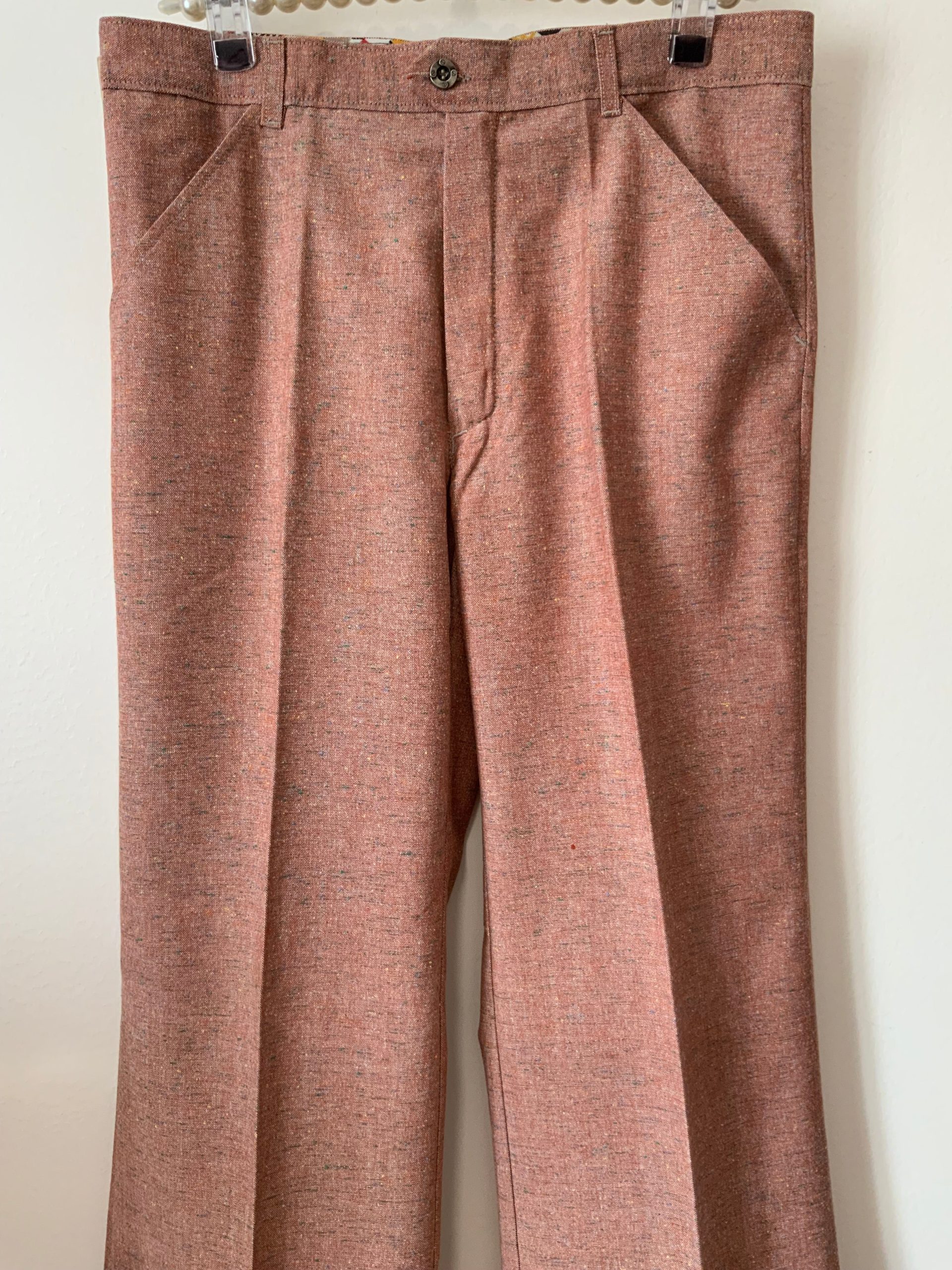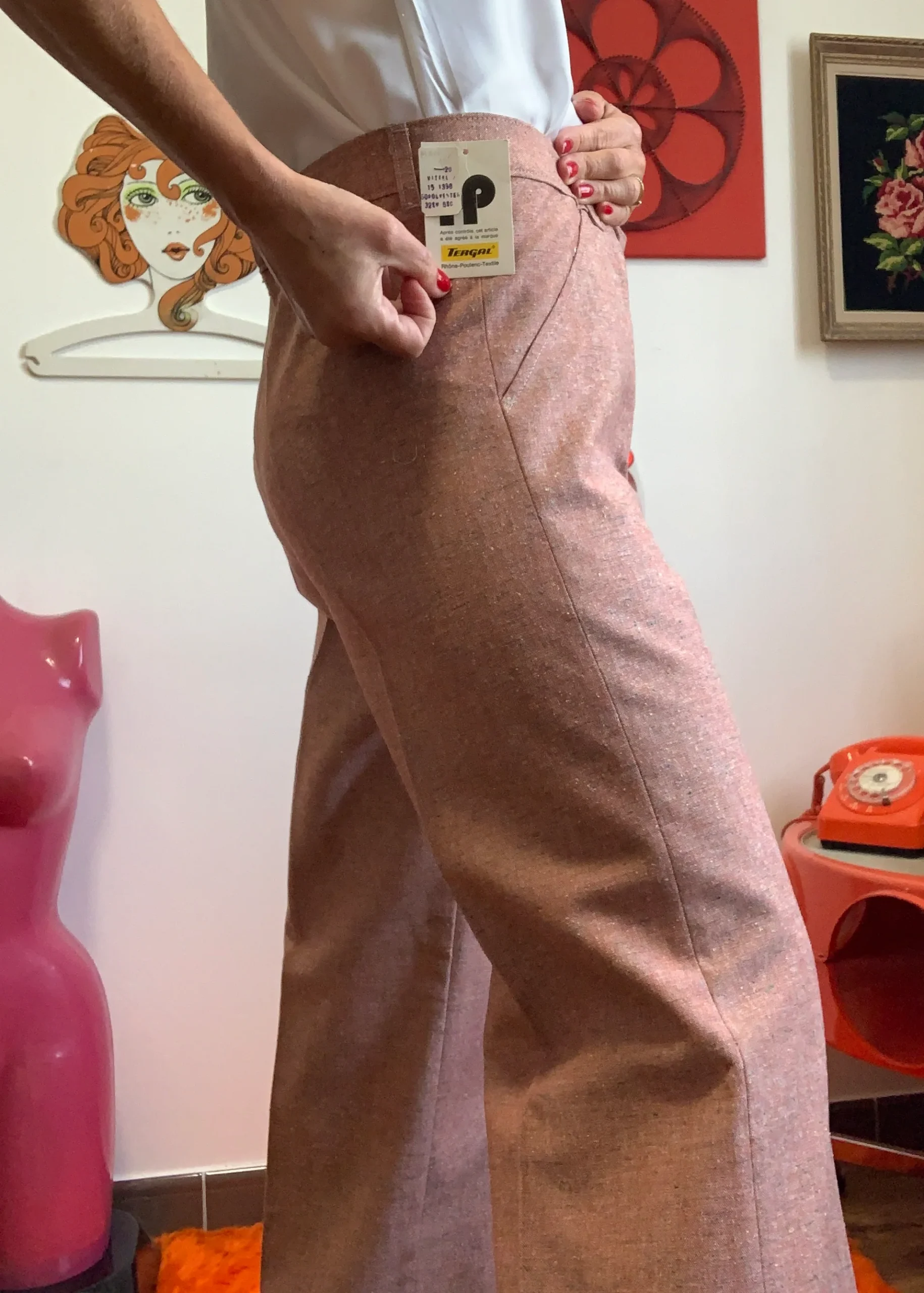 Superbe Pantalon Authentique Pattes D’elephant Flare Tergal Rouge chiné de couleurs Vintage 1970 Deadstock issu stock rétro .