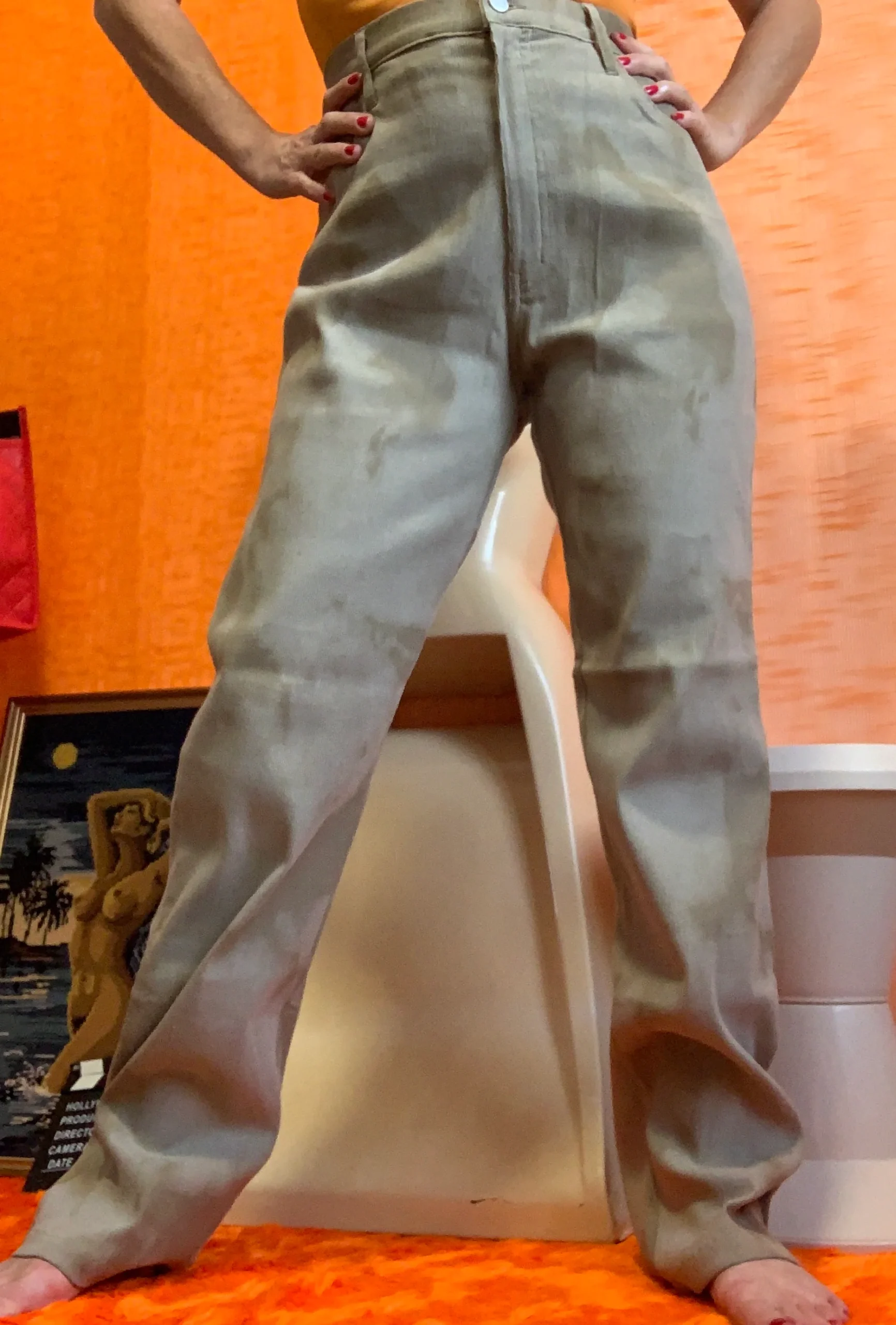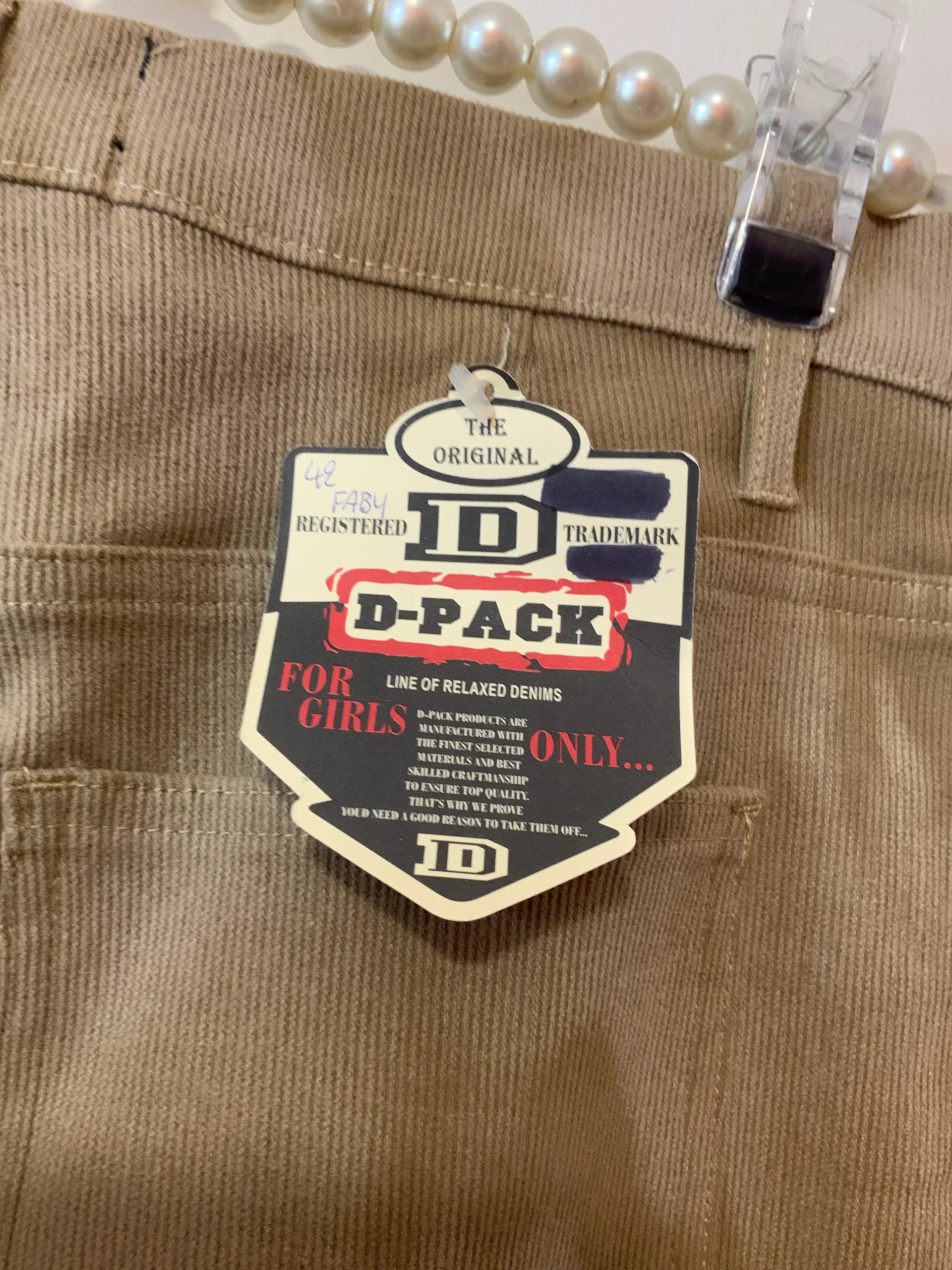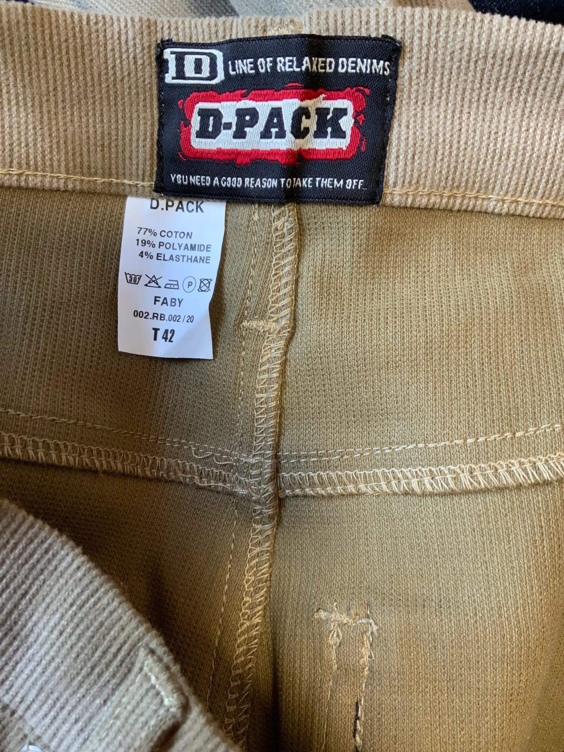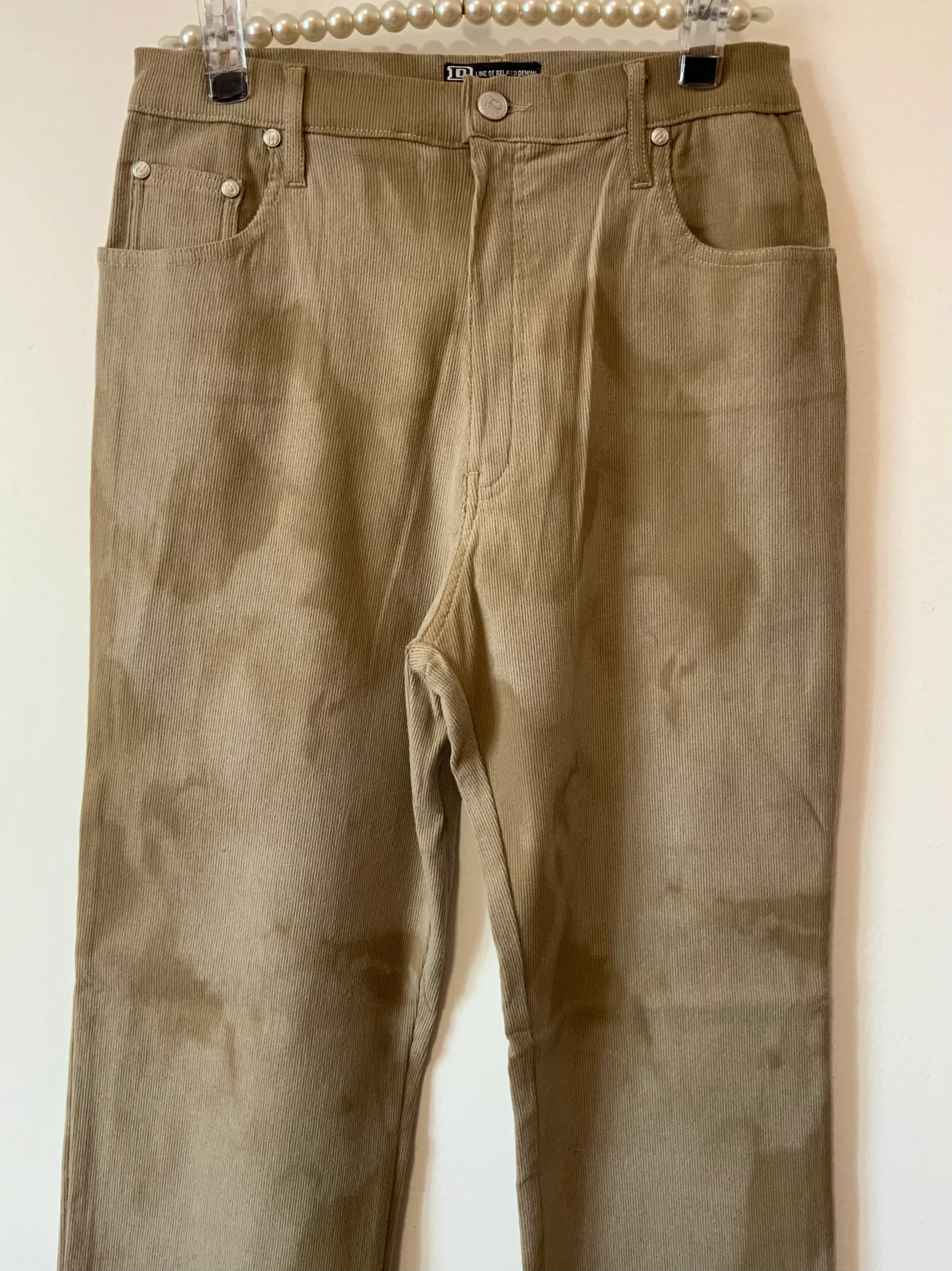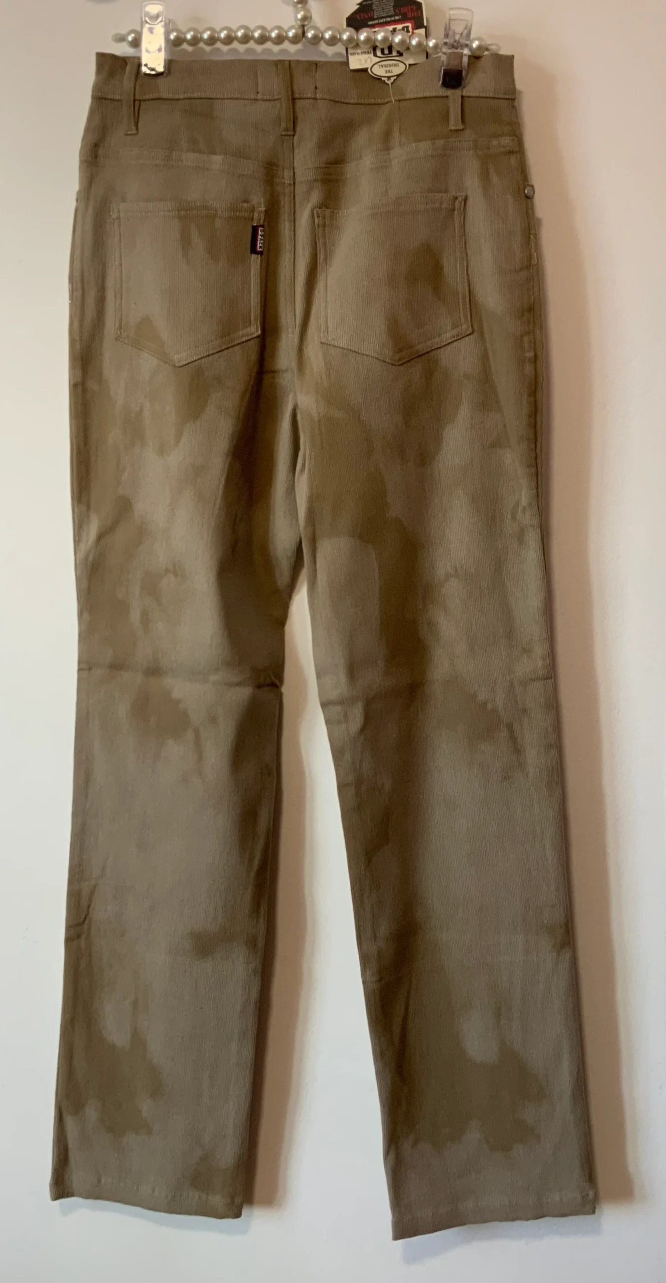 Pantalon Taille haute Velours côtelé Motifs tie and die Vintage Neuf 1990 beige Marron très clair – Neuf avec ses étiquettes – Fin velours côtelé tout doux – D Pack Modèle Faby 77% coton 19% polyamide % elasthane- 0 défaut – Taille haute 90’