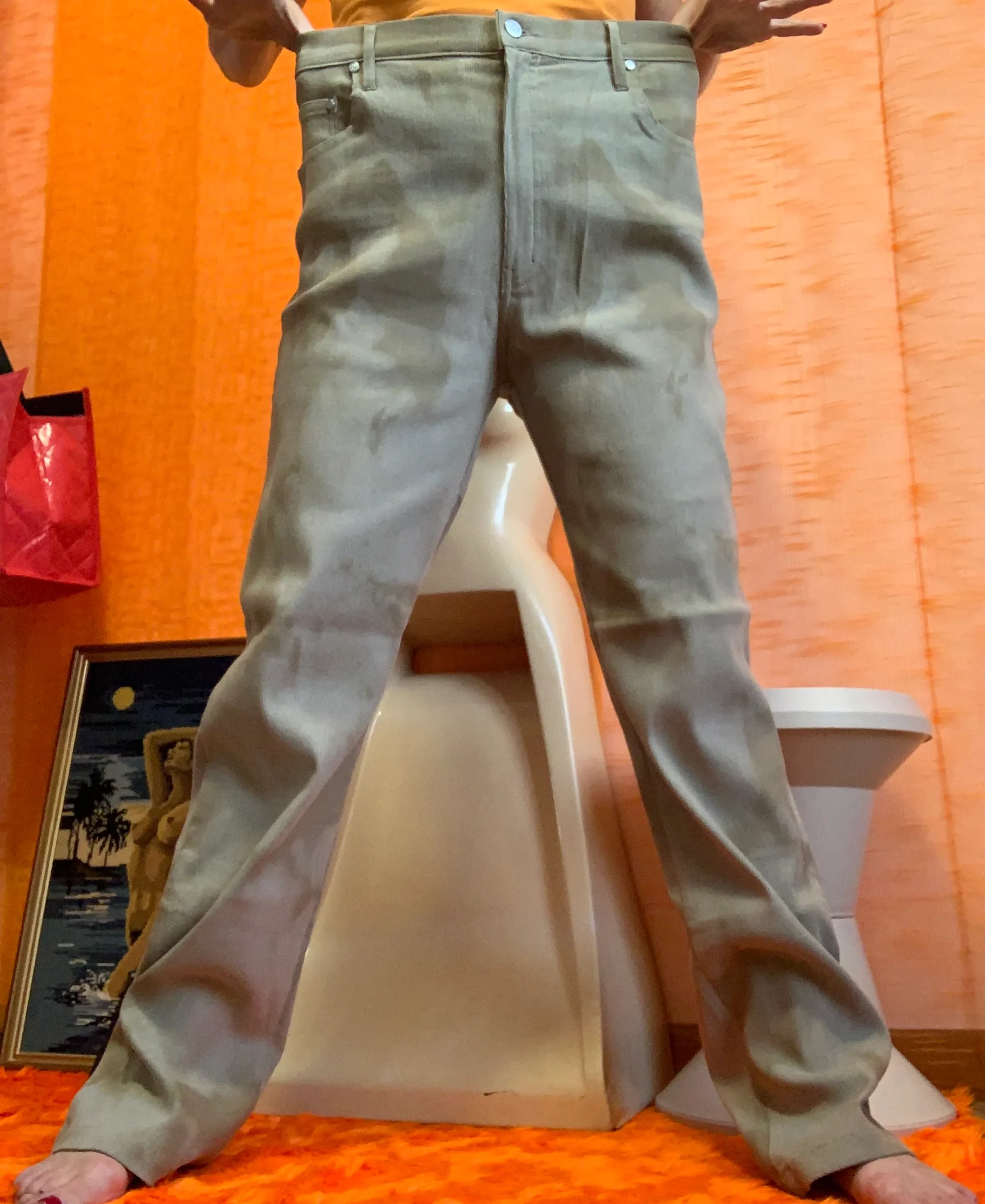 Taille 40/42- Ses mesures à plat = Taille 38 Hanches 50 L 108 L de l’entrejambe 77 centimètres.