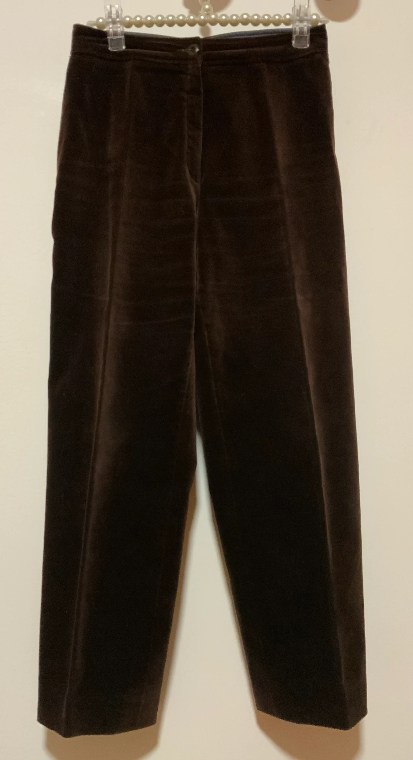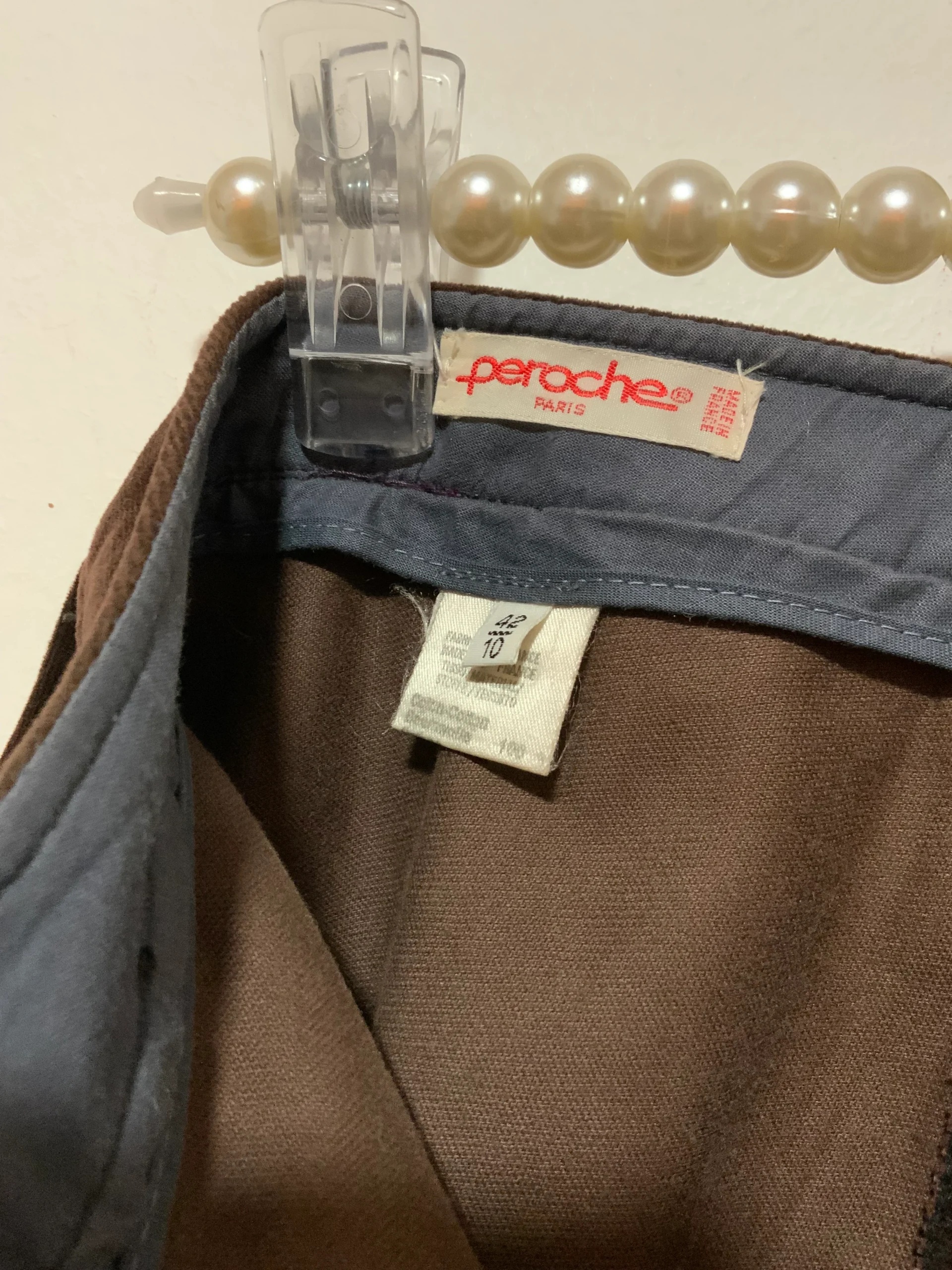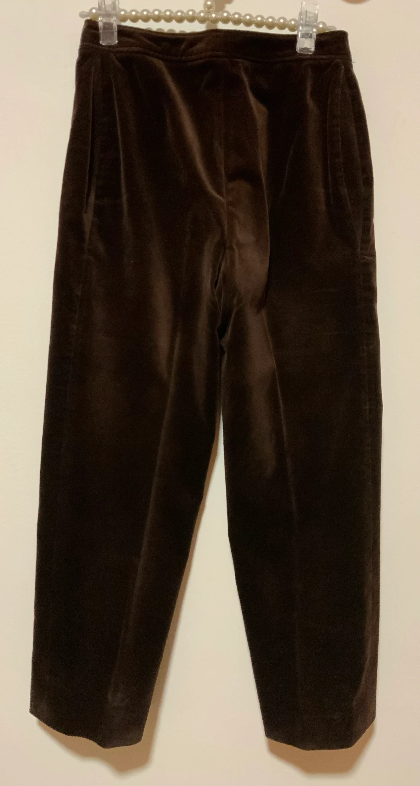 Superbe pantalon 100% Coton Velours 1980 Vintage Coupe exceptionnelle taille haute et plis devant – De la marque Peroche Paris – Made in France – État excellent – Velours doux non côtelé marron foncé.