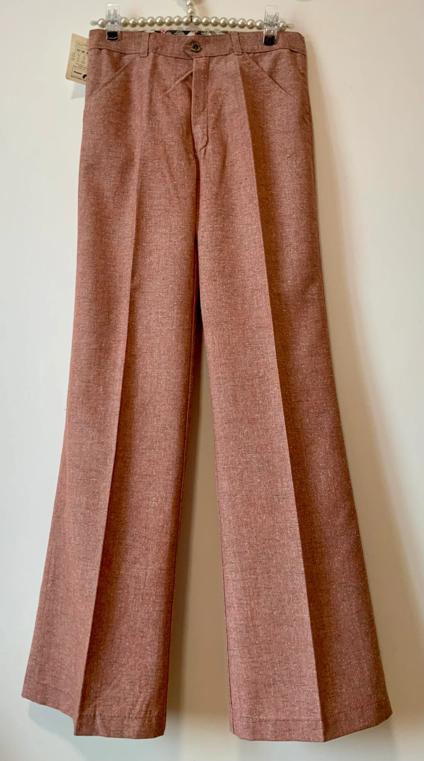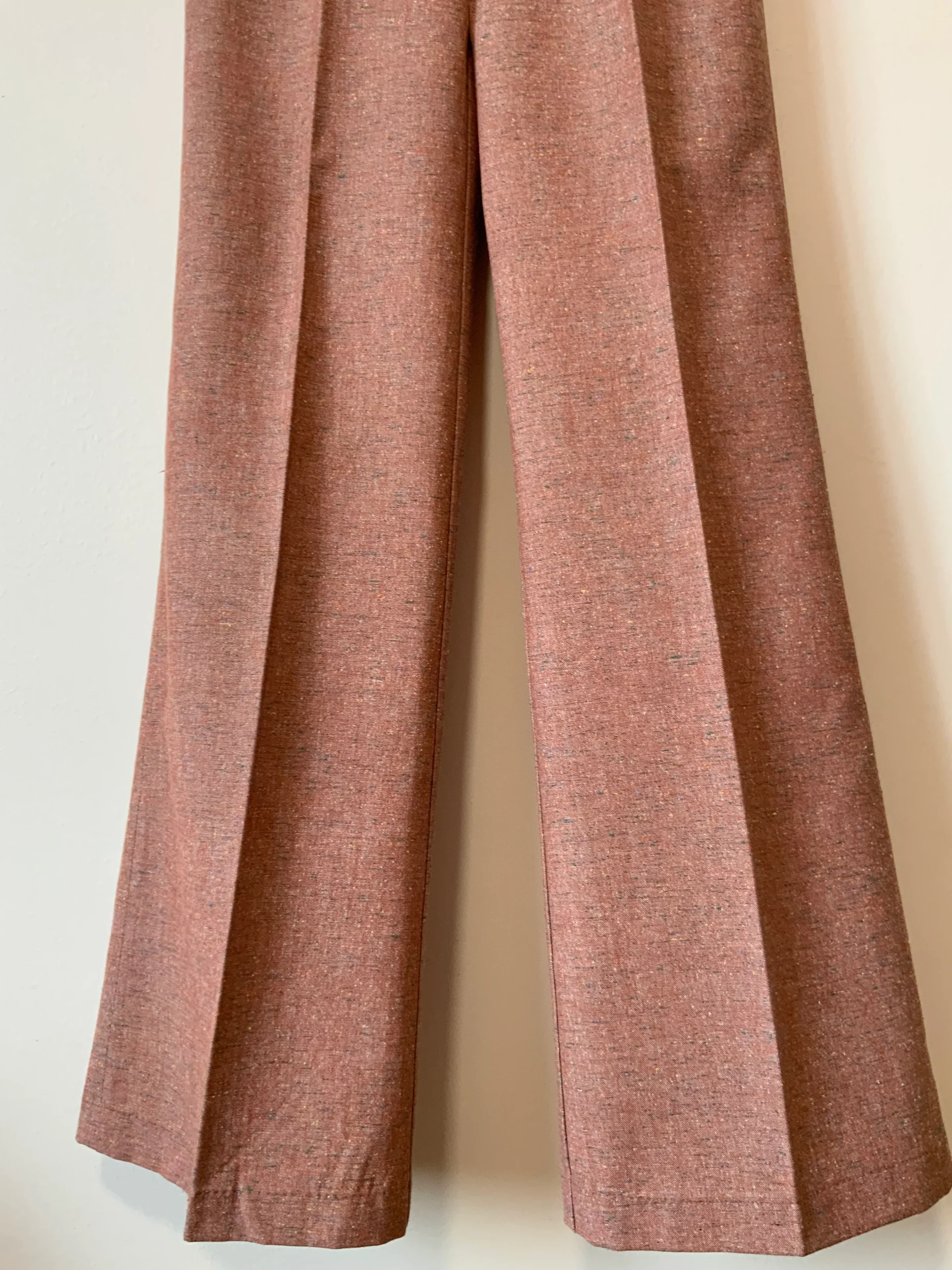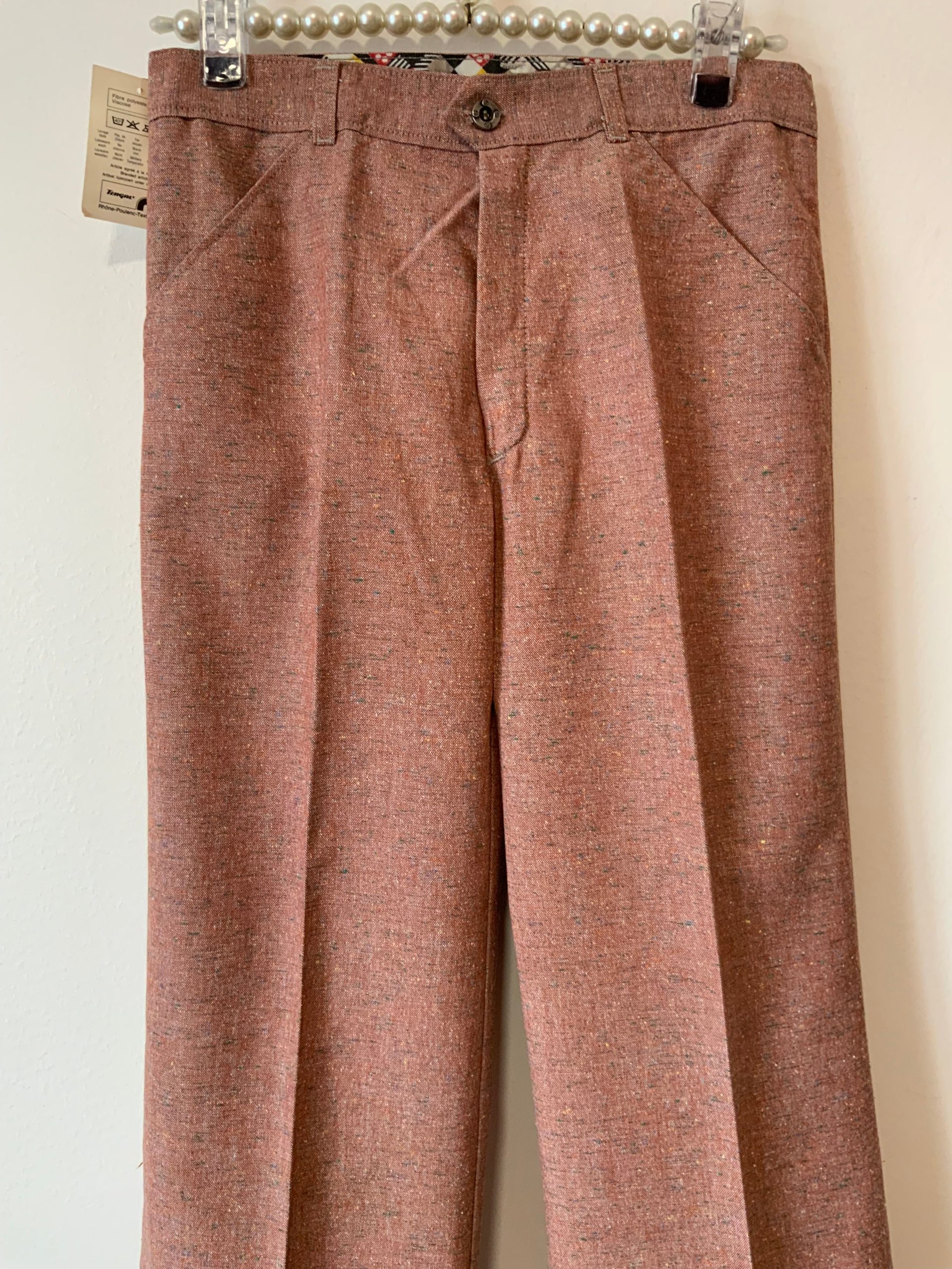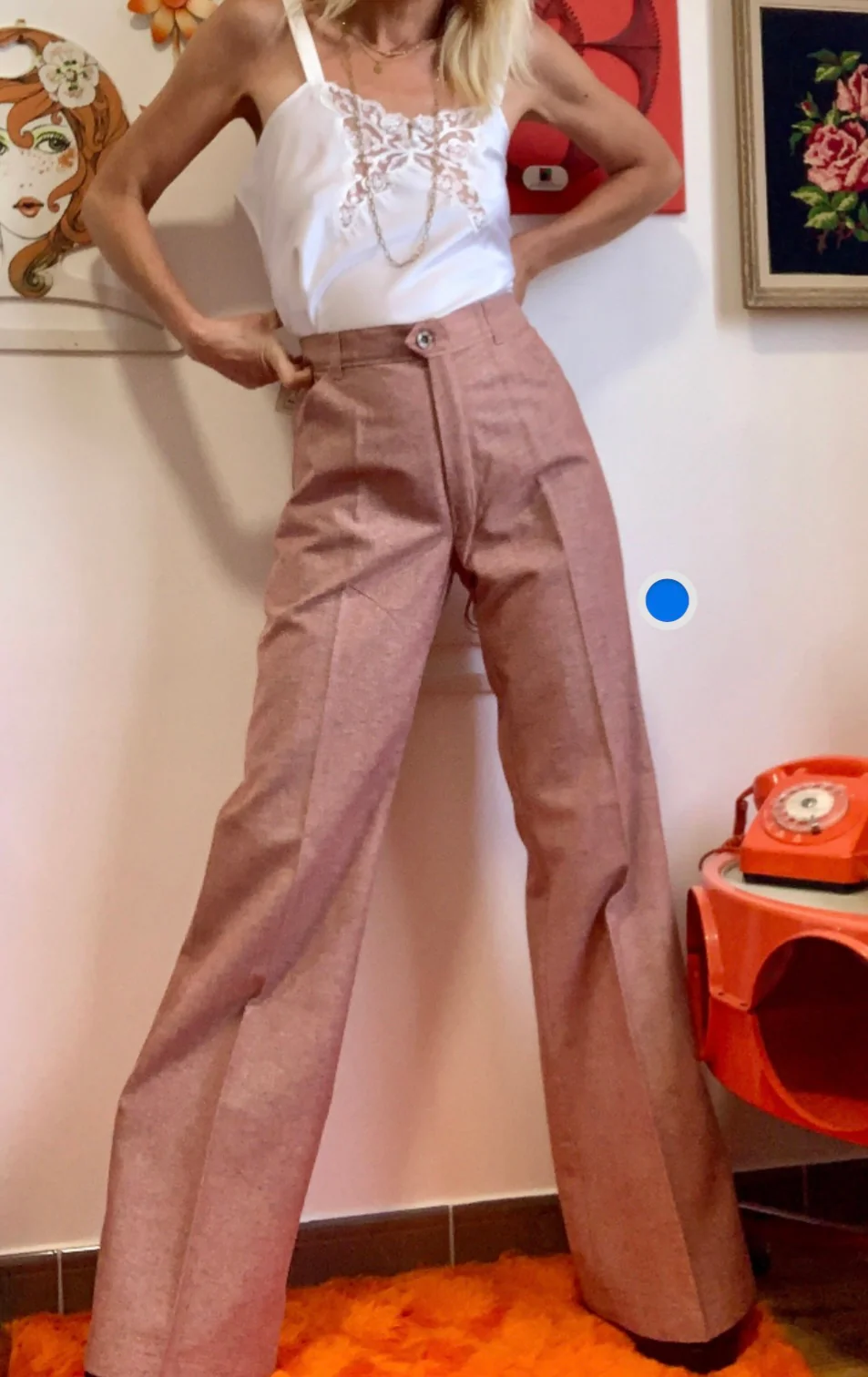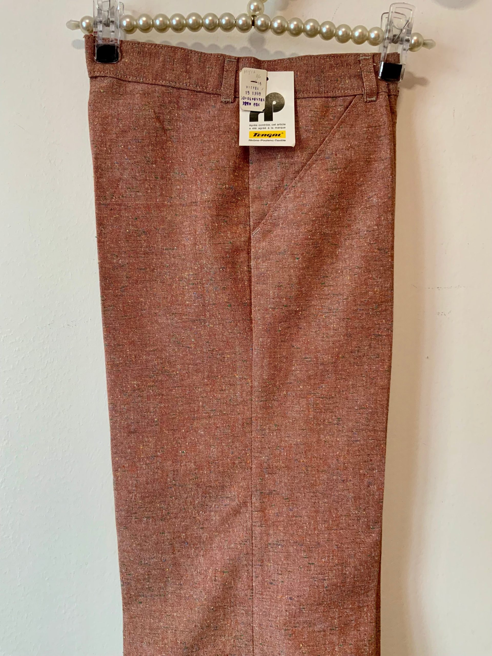 Superbe Pantalon Authentique Pattes D’elephant Flare Tergal Rouge chiné de couleurs Vintage 1970 Deadstock issu stock rétro .