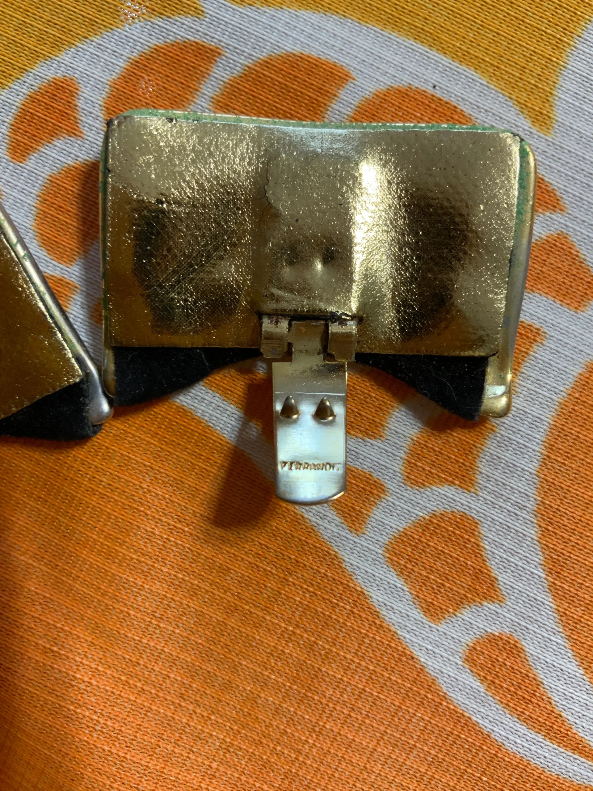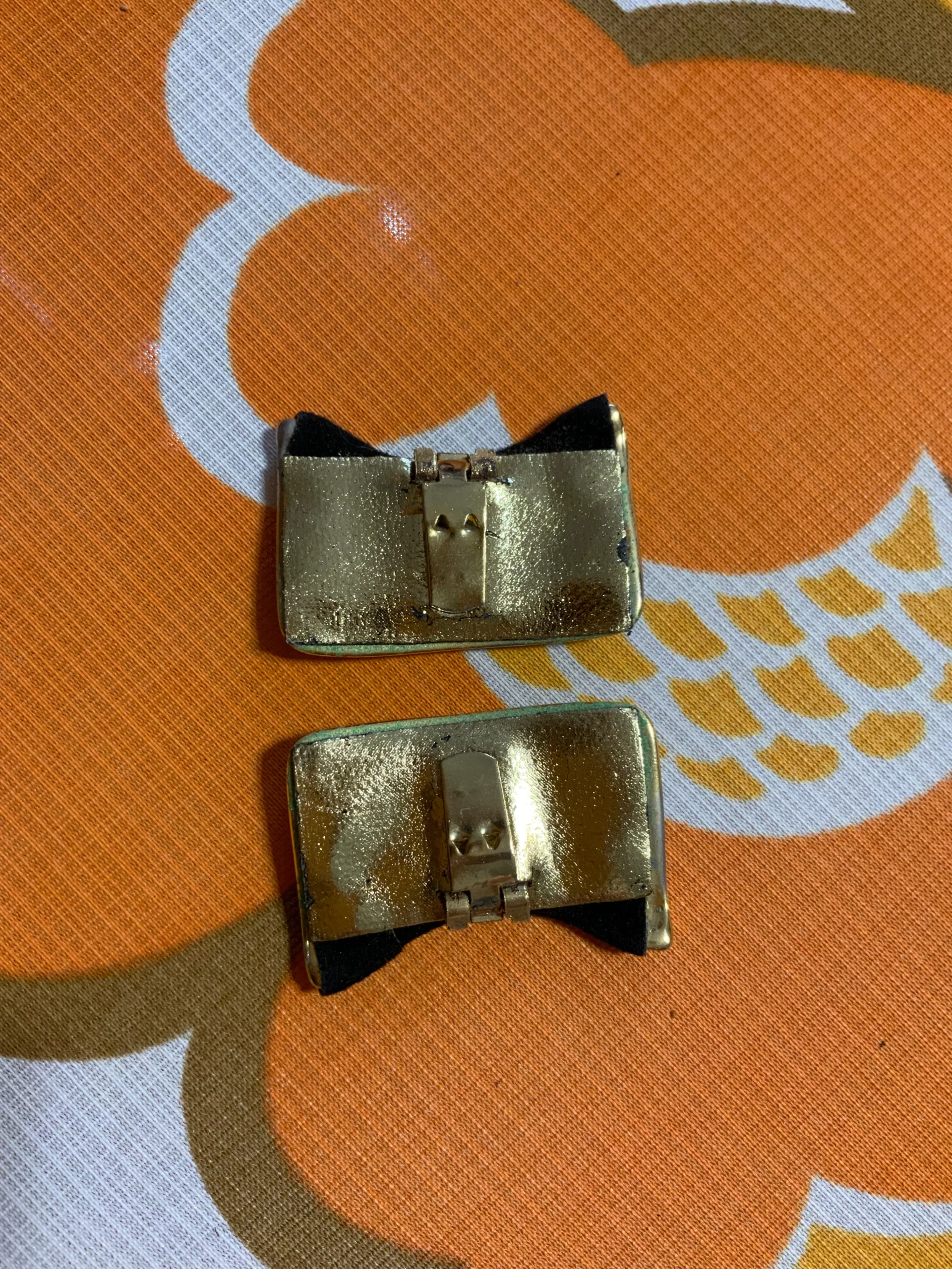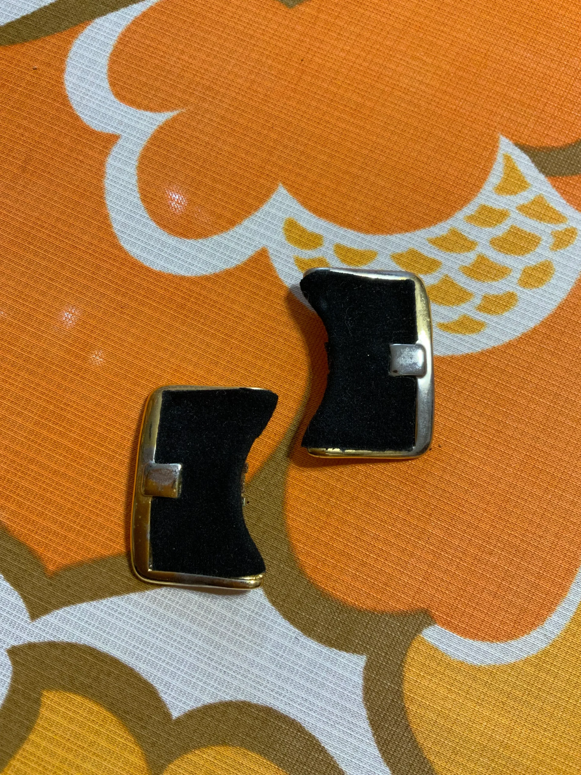Ravissantes pinces à chaussures vintages annees 70/80 signature au dos illisible – Métal doré et velours noir- Bijoux à chaussures.