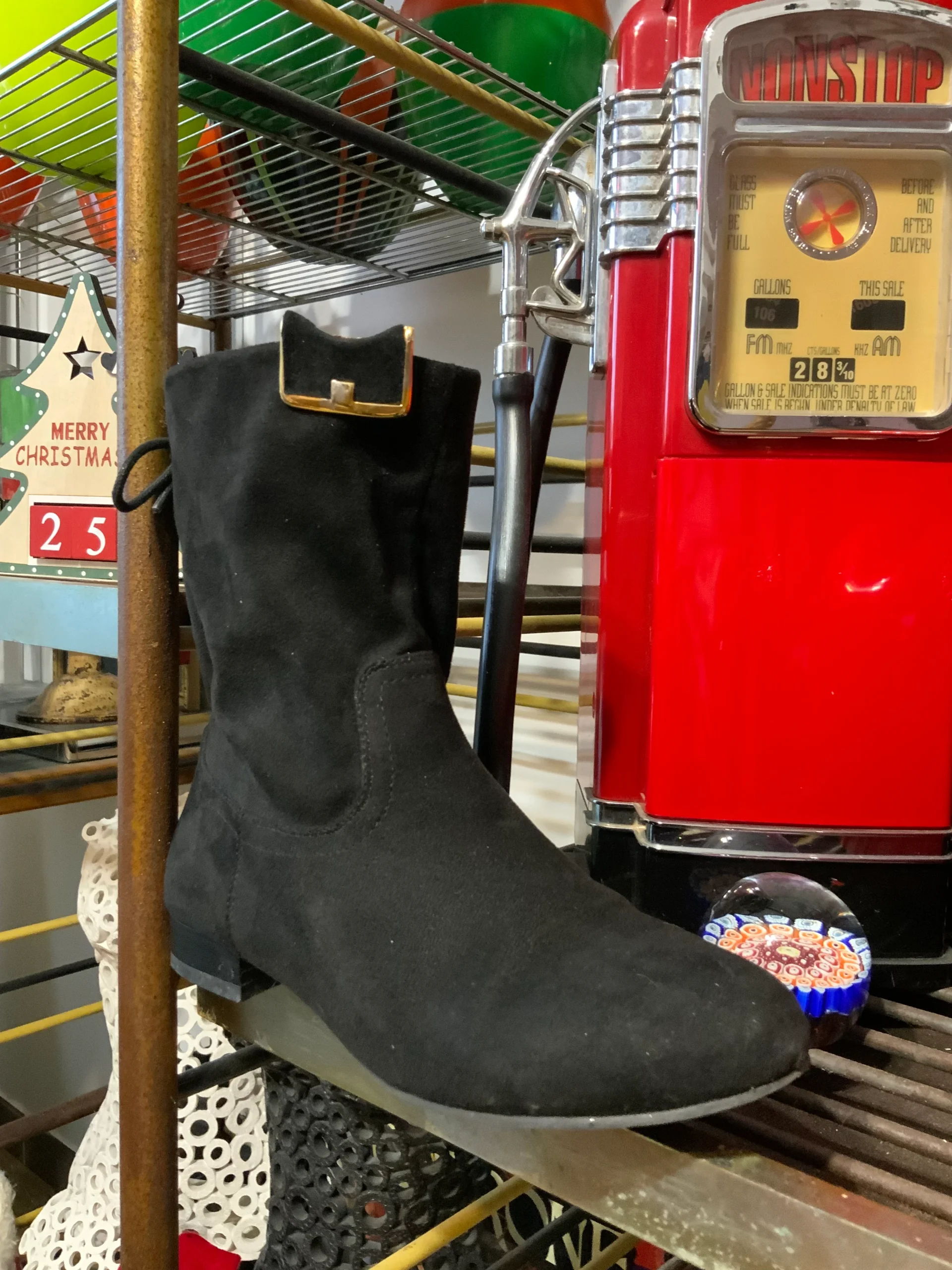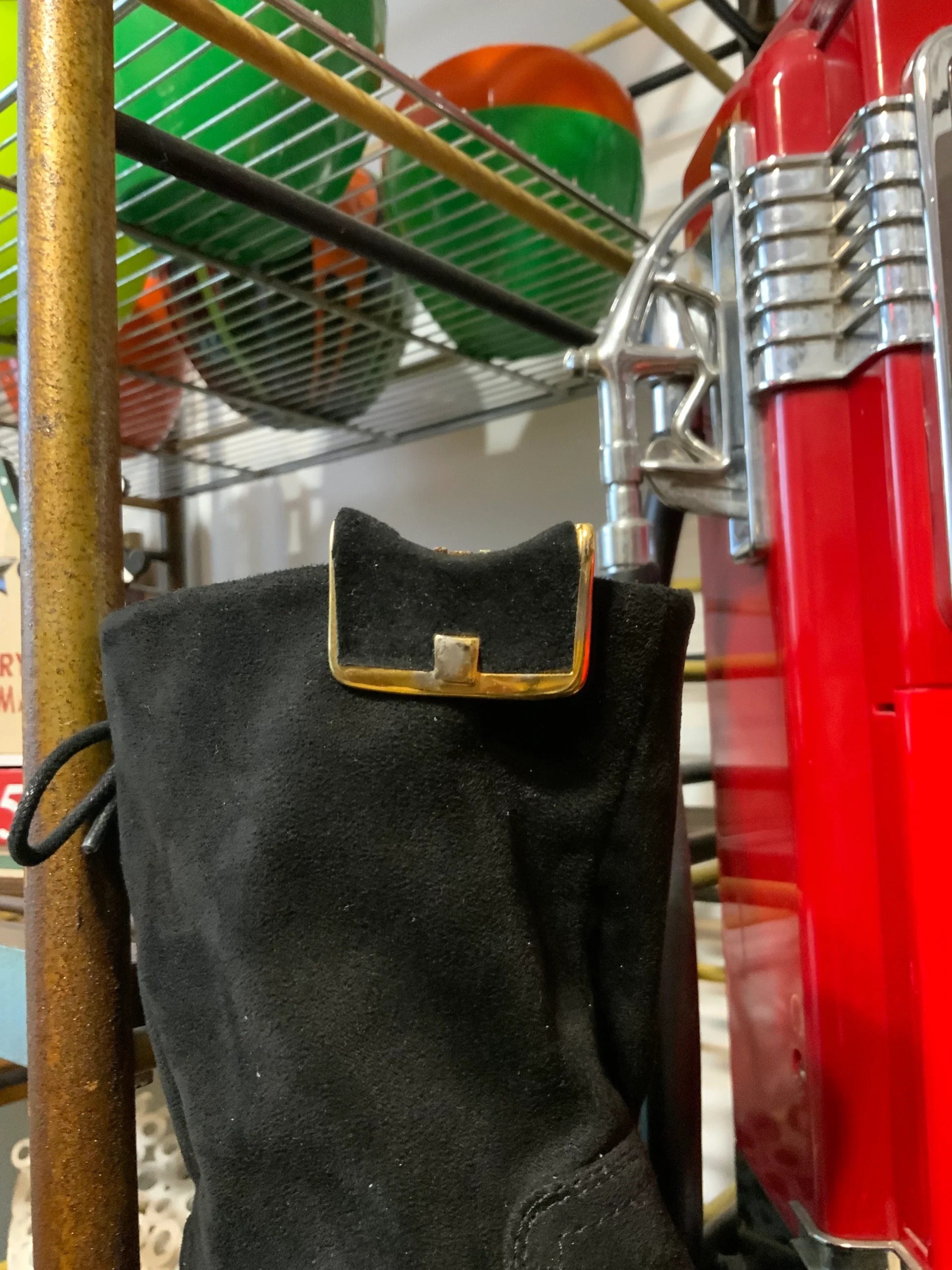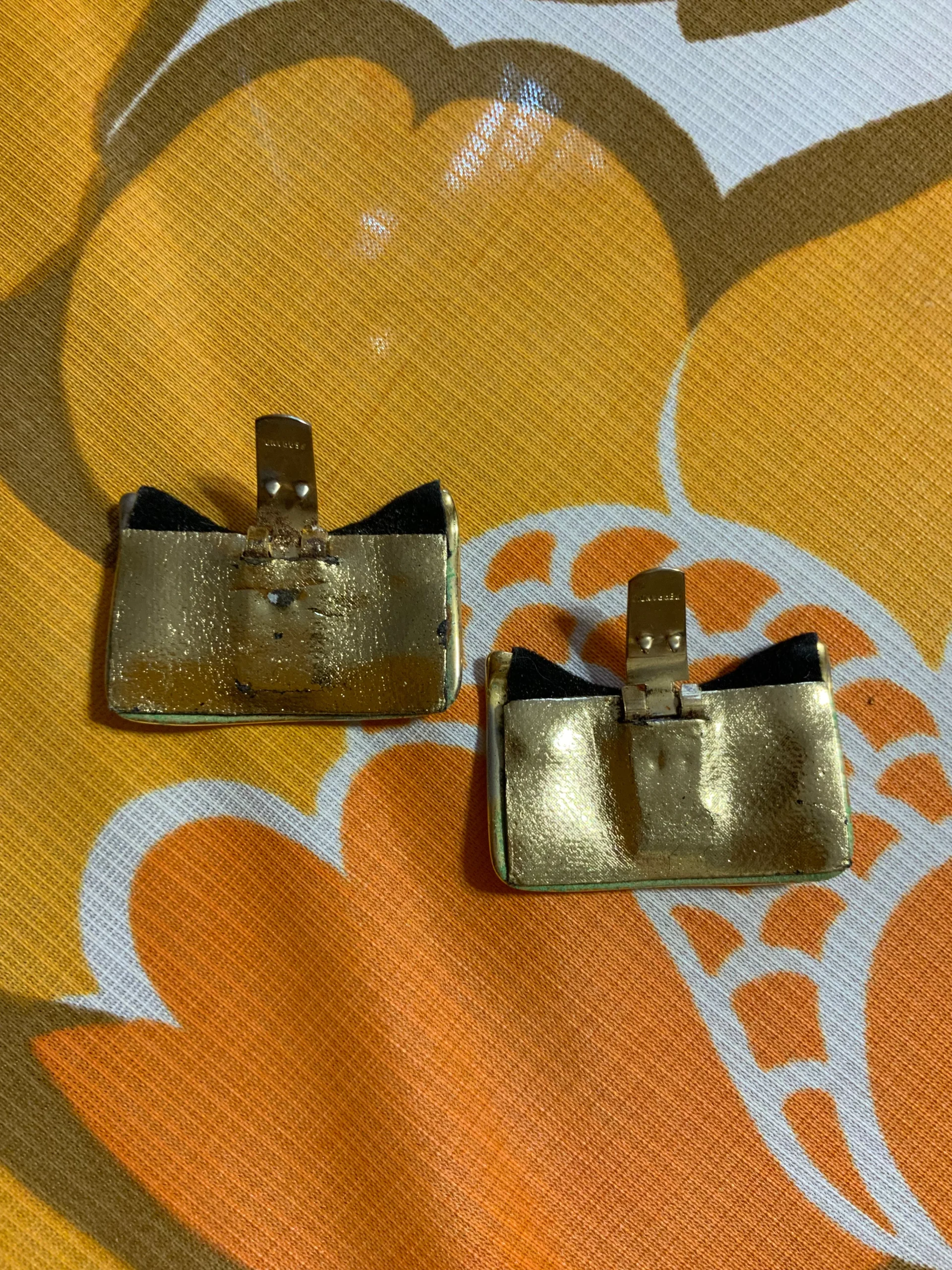 Ravissantes pinces à chaussures vintages annees 70/80 signature au dos illisible – Métal doré et velours noir- Bijoux à chaussures.