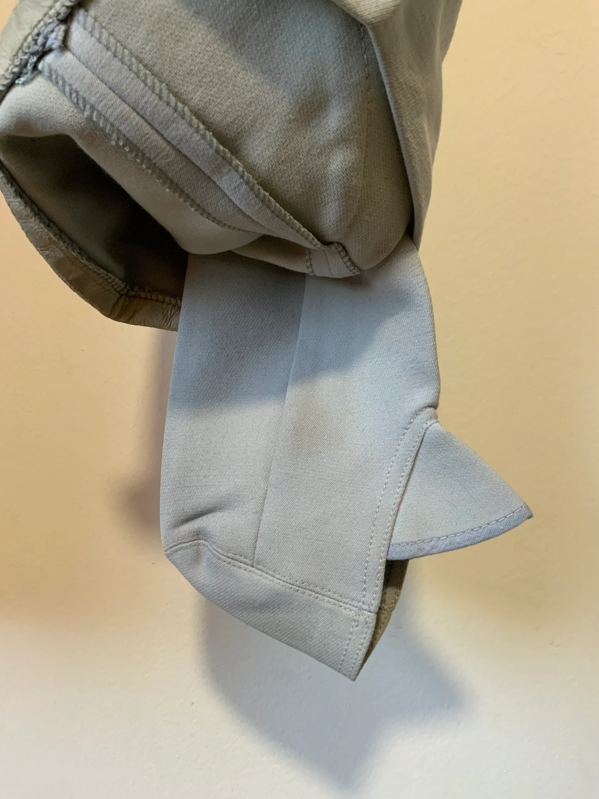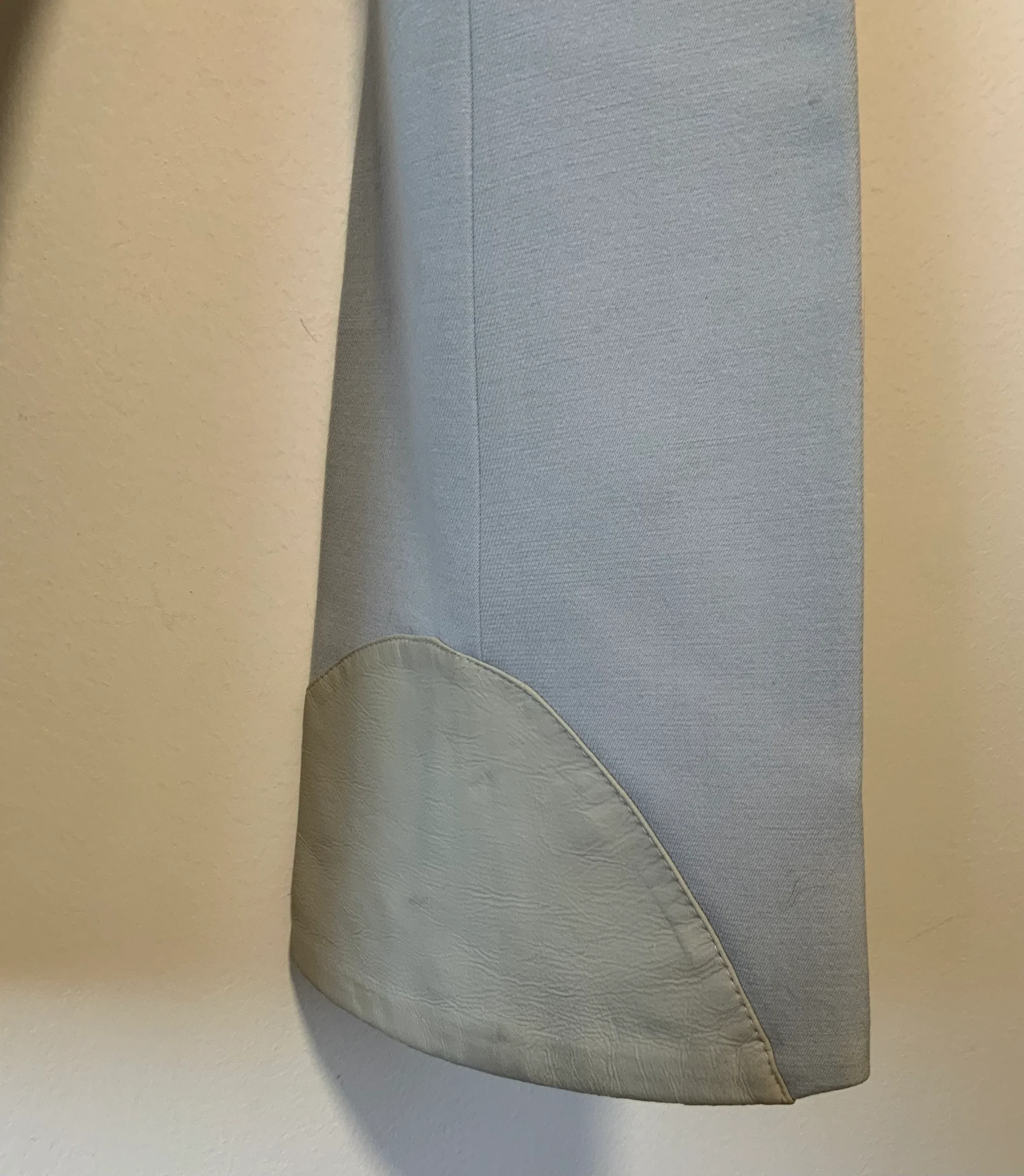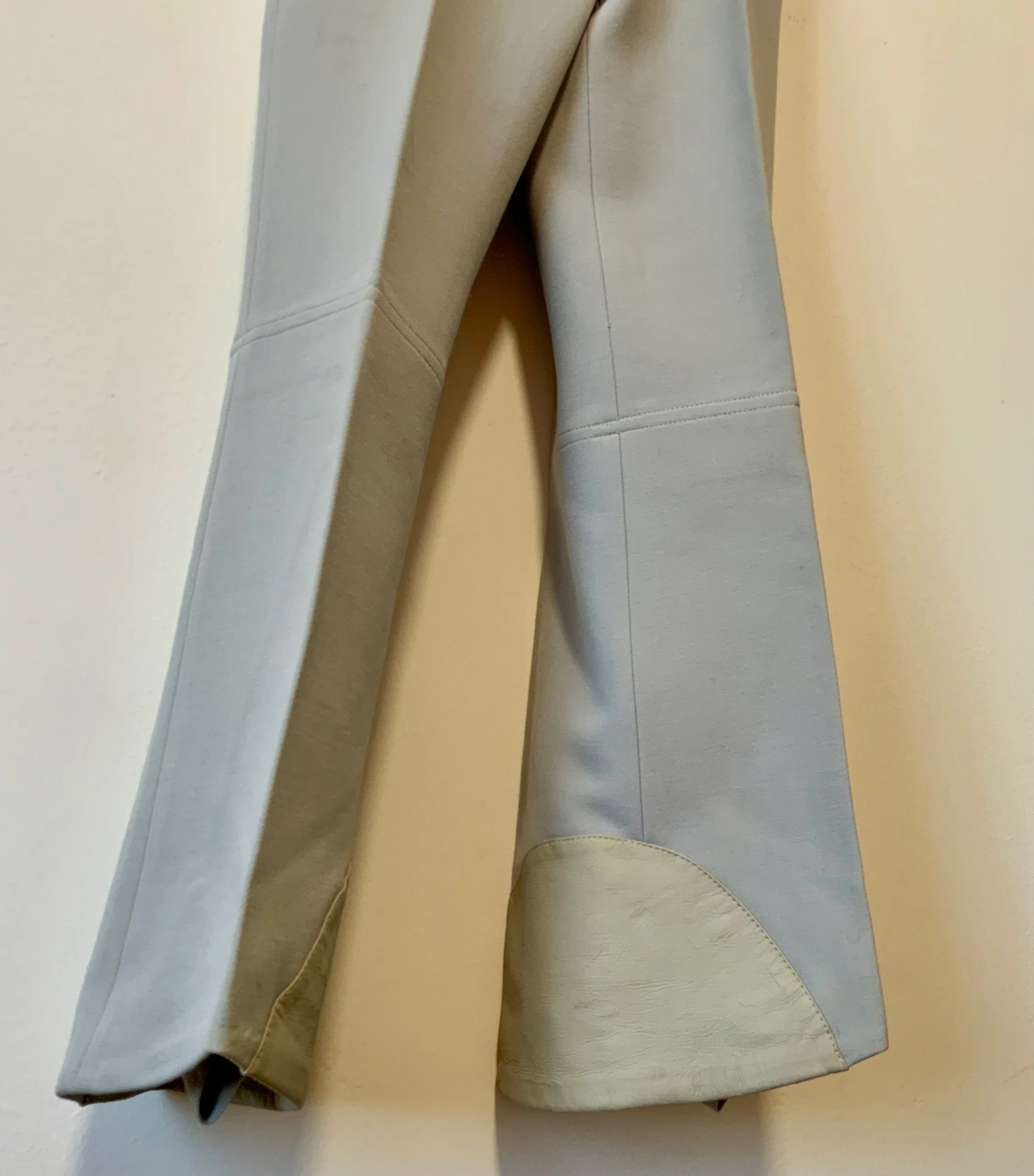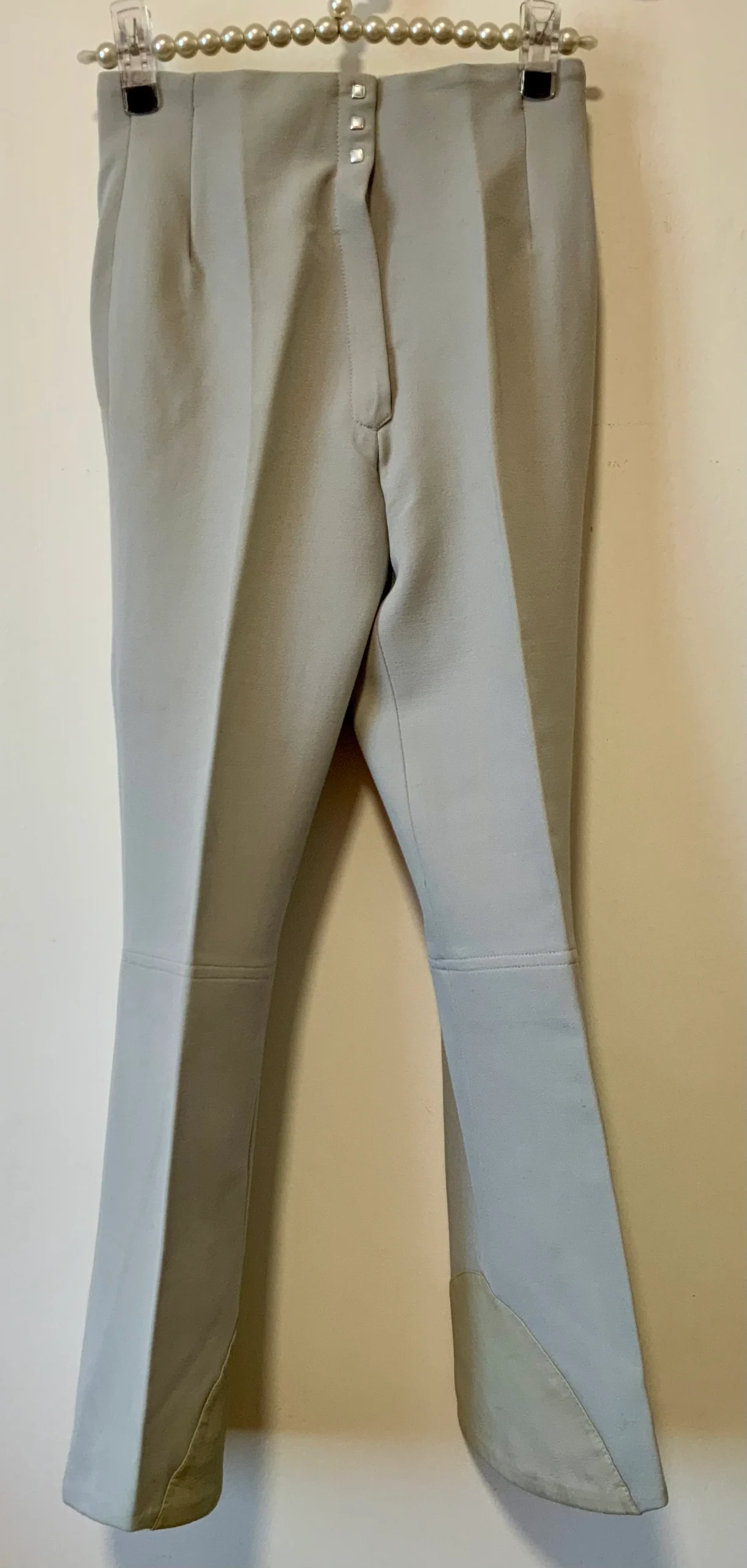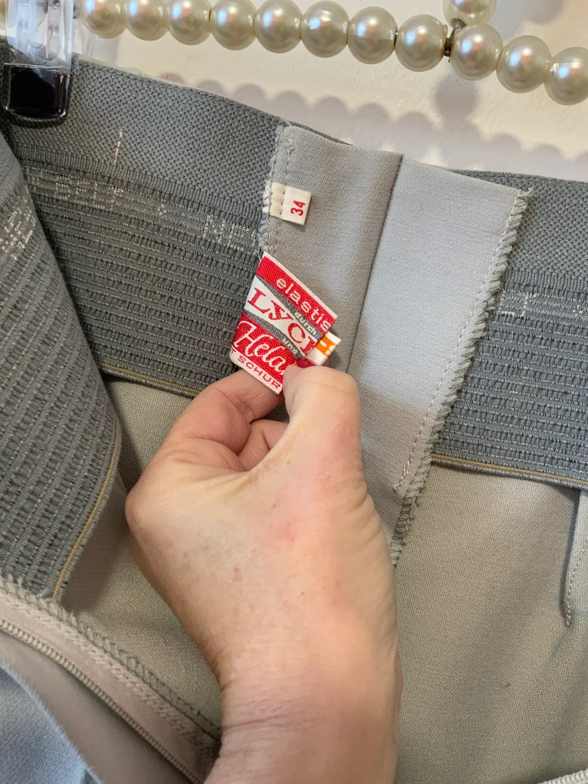 Rare et très beau pantalon pattes d’éléphant Helanca sport Vintage de couleur gris perle avec empiècements de cuir gris clair en bas – En lycra très épais avec empiècements pour pieds Fuseau et un tissu élastique protégeant tout comme un pantalon de ski – AUTHENTIQUE PANTALON FLARE SEVENTIES.