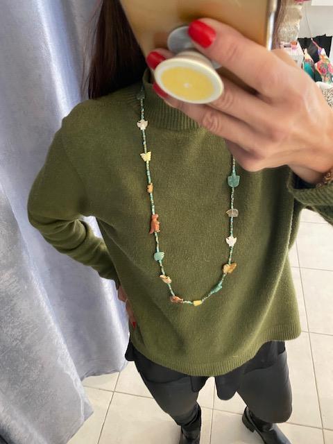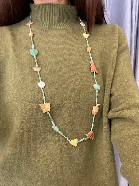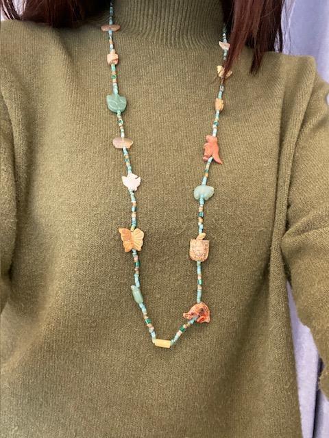Sautoir en perles avec animaux en pierres naturelles. .