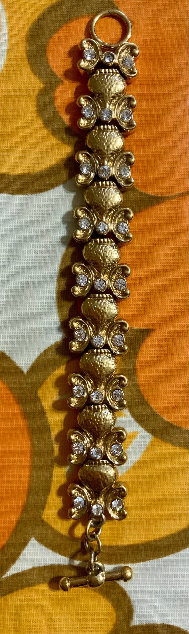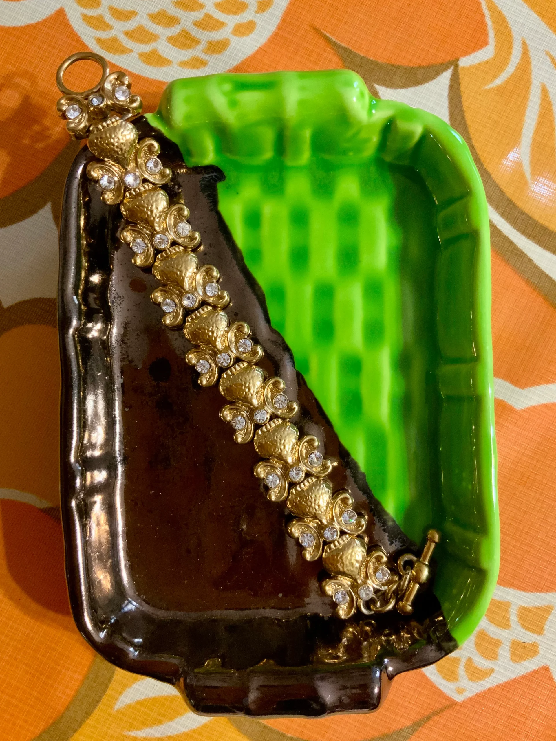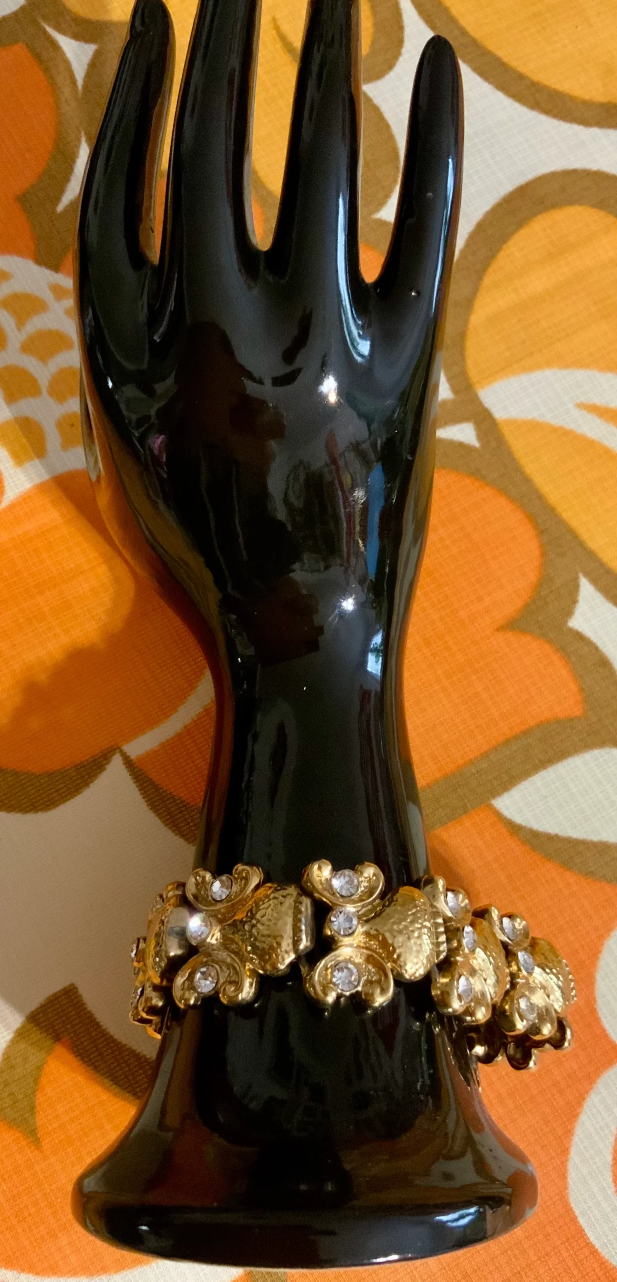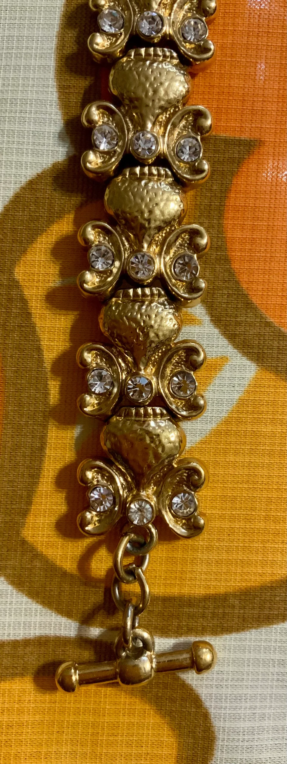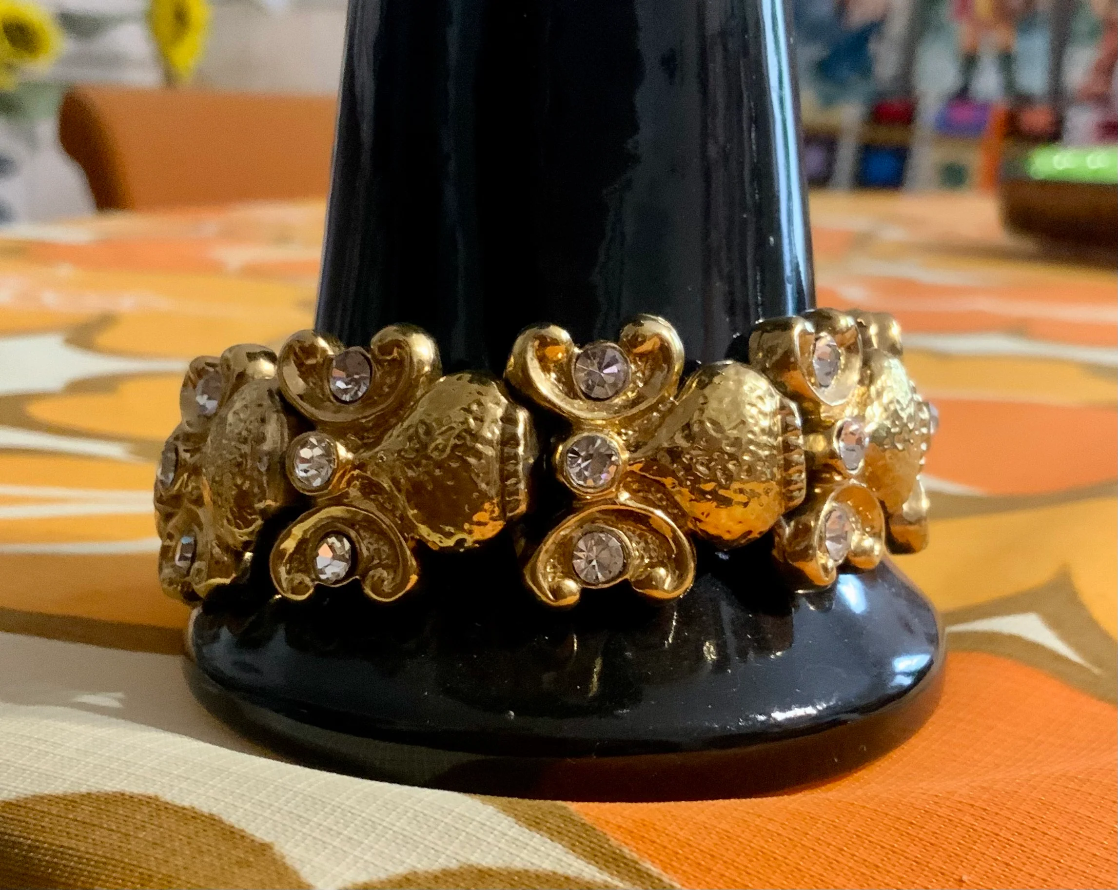 Sublime bracelet de la maison Guy Laroche Paris Vintage 1990 en métal doré plaqué or et strass zirconiums- Tres belle pièce élégante.