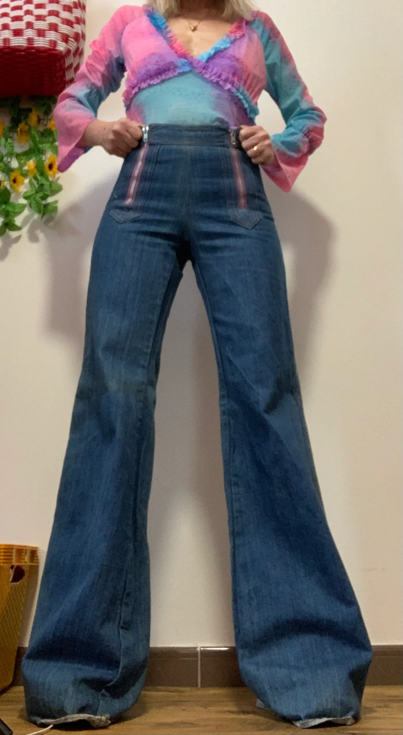 Sublimissime Grand Jean Grandes Fourches Pattes d’éléphant Vintage 1970 Provenance stock rétro magasin seventies neuf.
