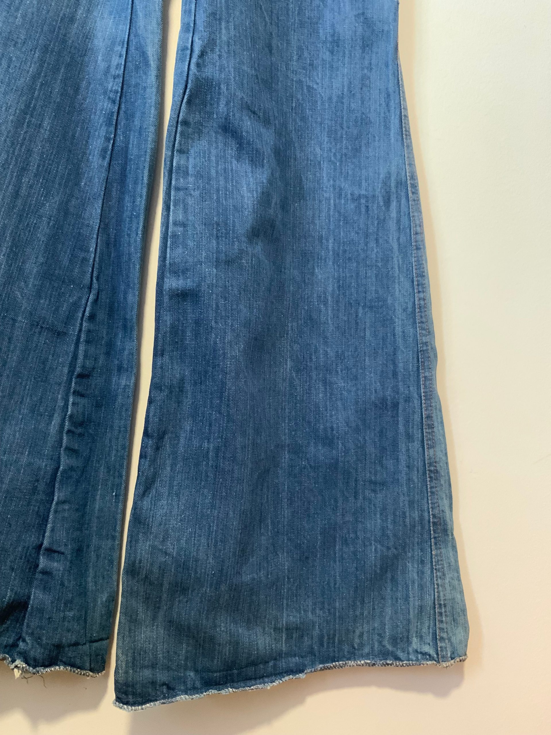 Une pépite rare ! Le Vrai Pattes d’éléphant des années 70 avec des bas de pattes d’une largeur chacun de 34 cms, il est en excellent état Neuf.