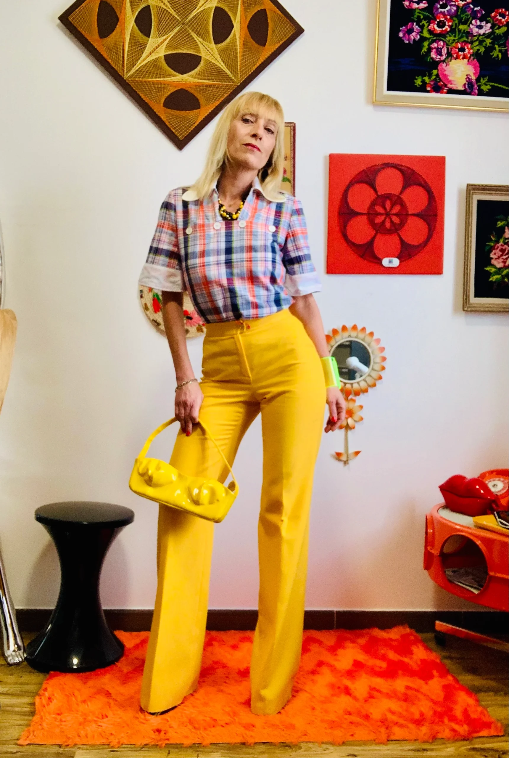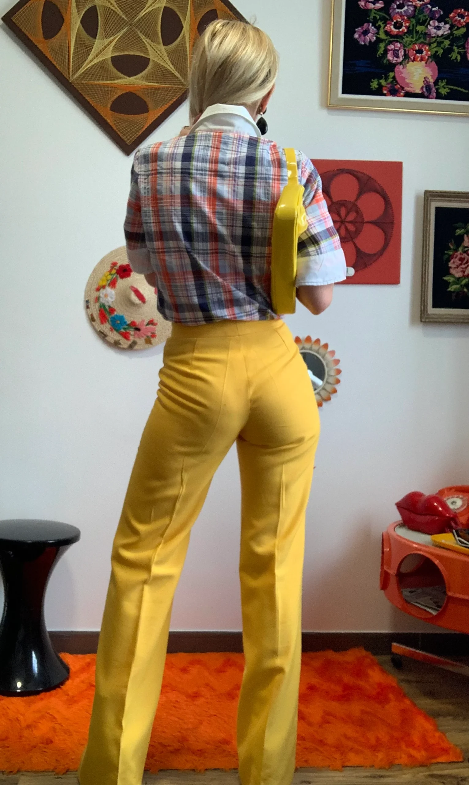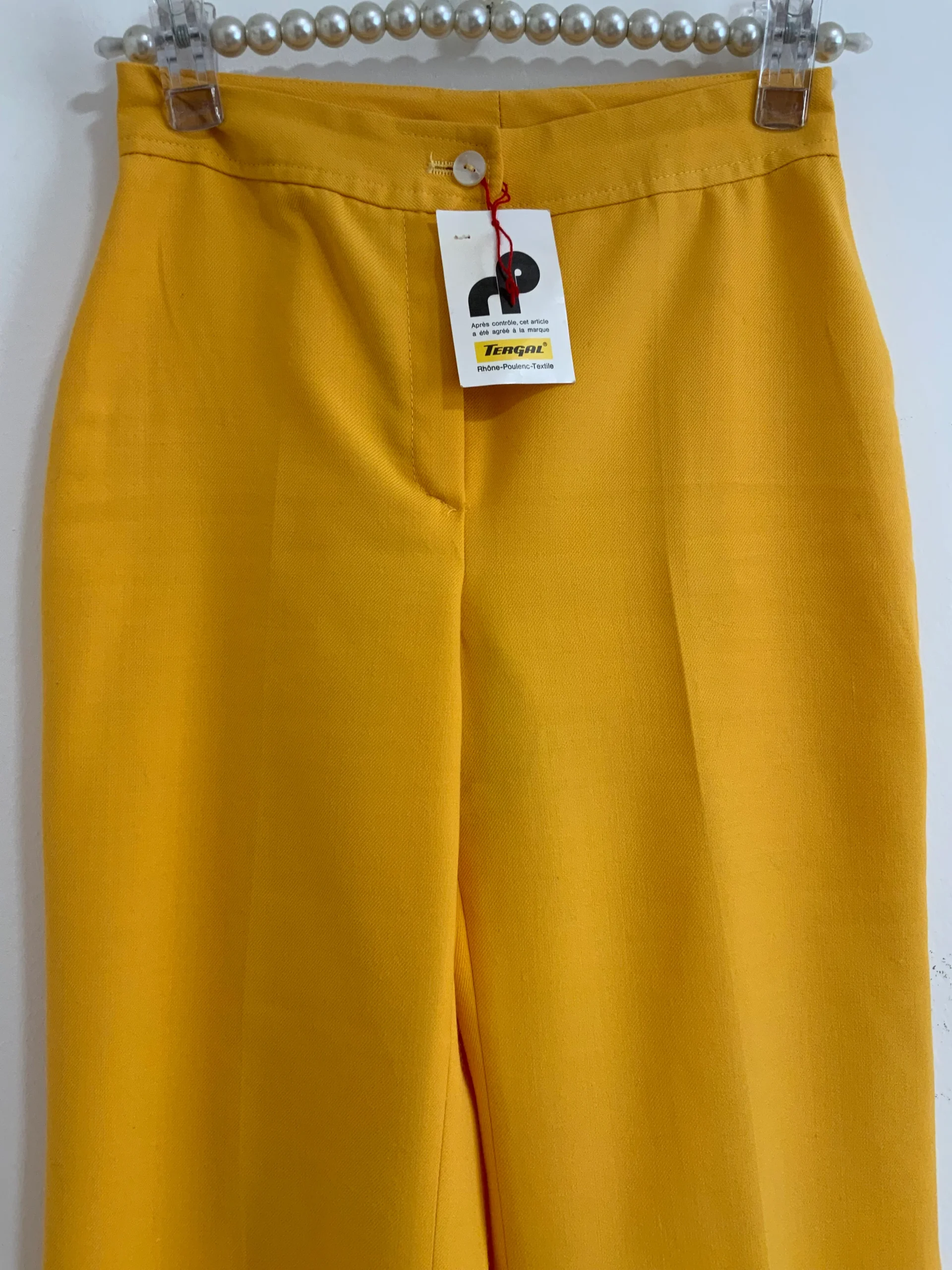 Sublime pantalon Pattes d’éléphant Flare 1970 Vintage Jaune Très Chic et authentique Made in France, un rayon de soleil.