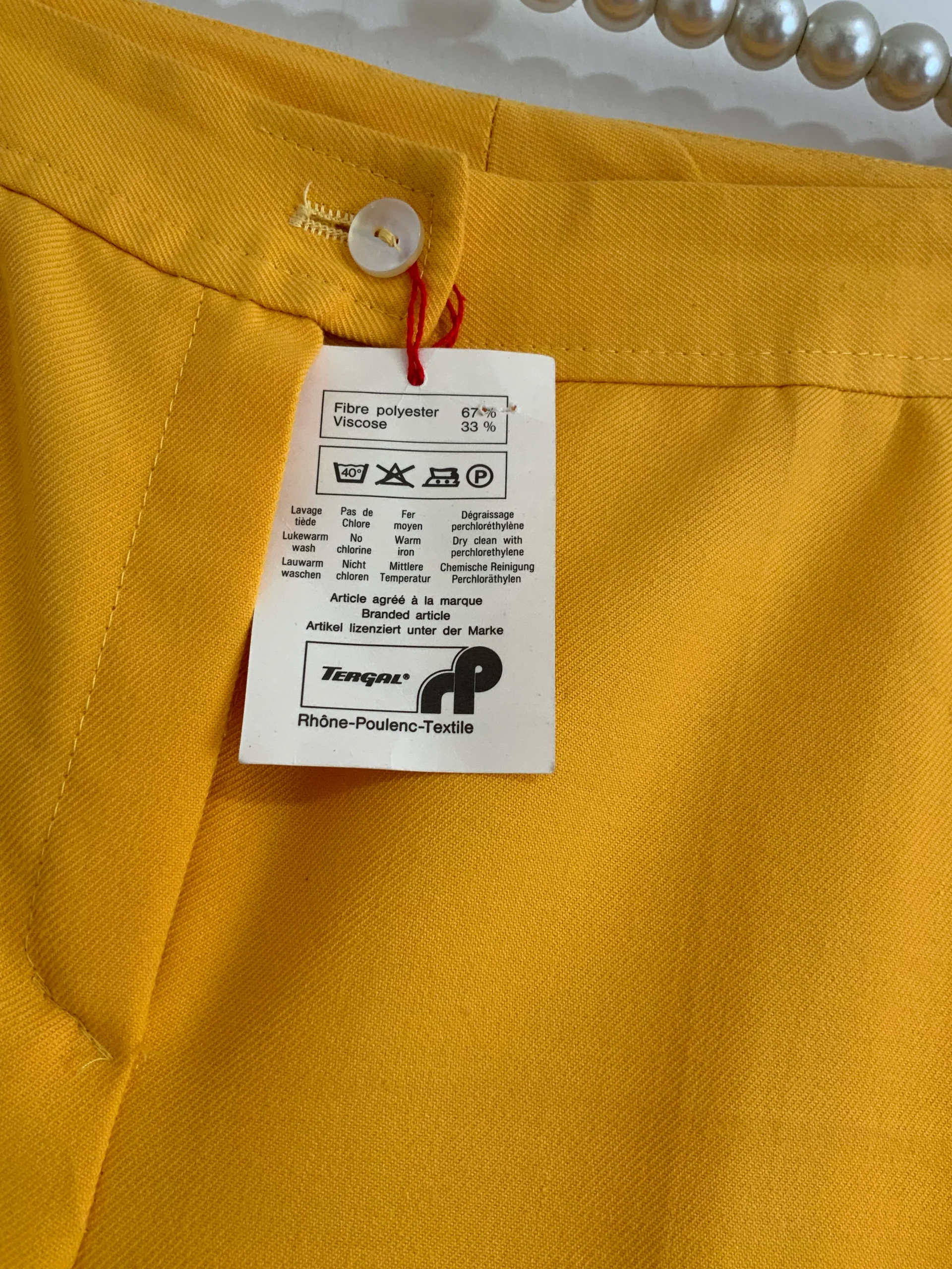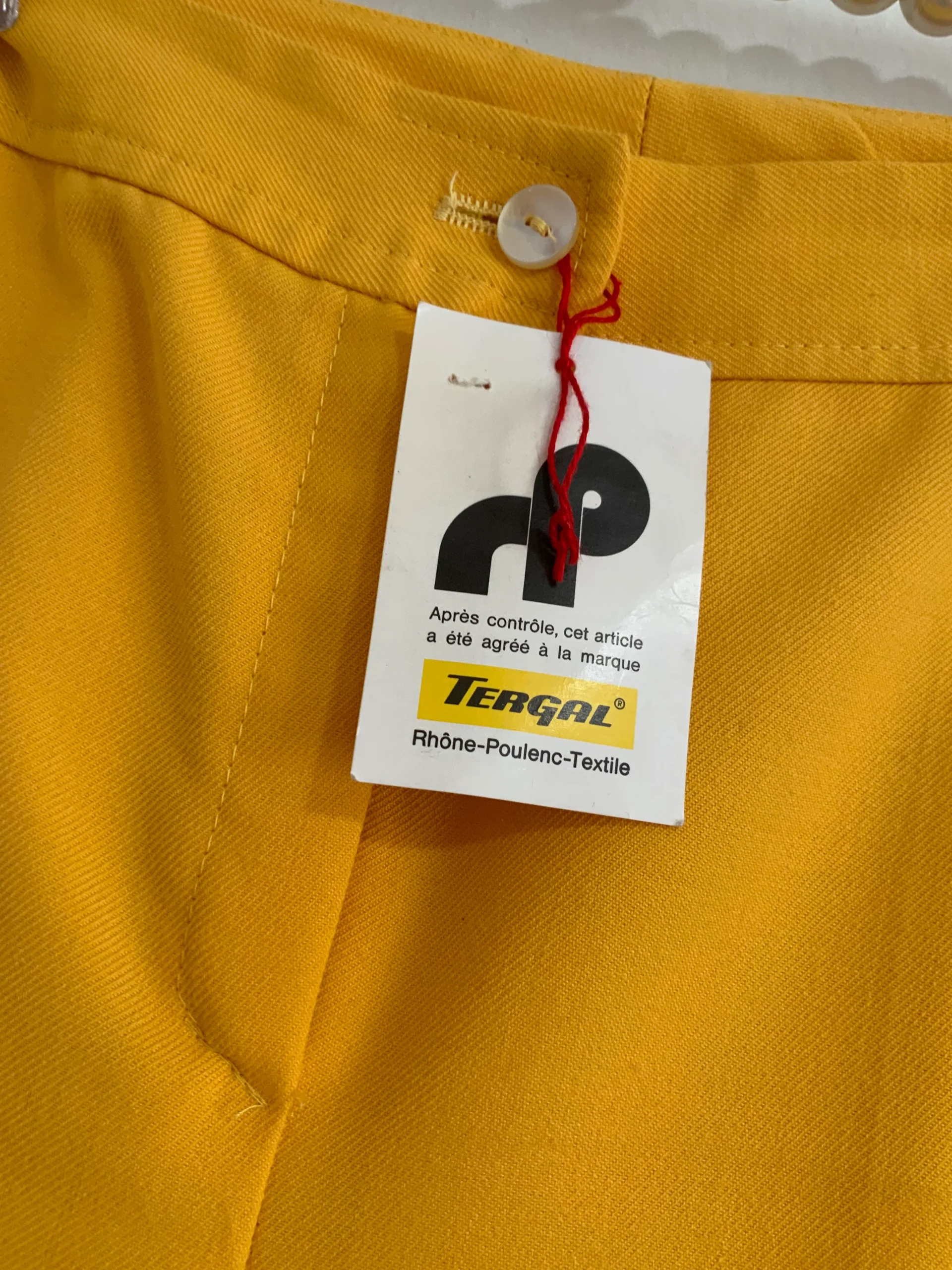 Jambes très larges et taille très haute, il est Deadstock avec son étiquette de vente Tergal – provenance d’un stock rétro – 0 défaut Excellent état neuf 1970.