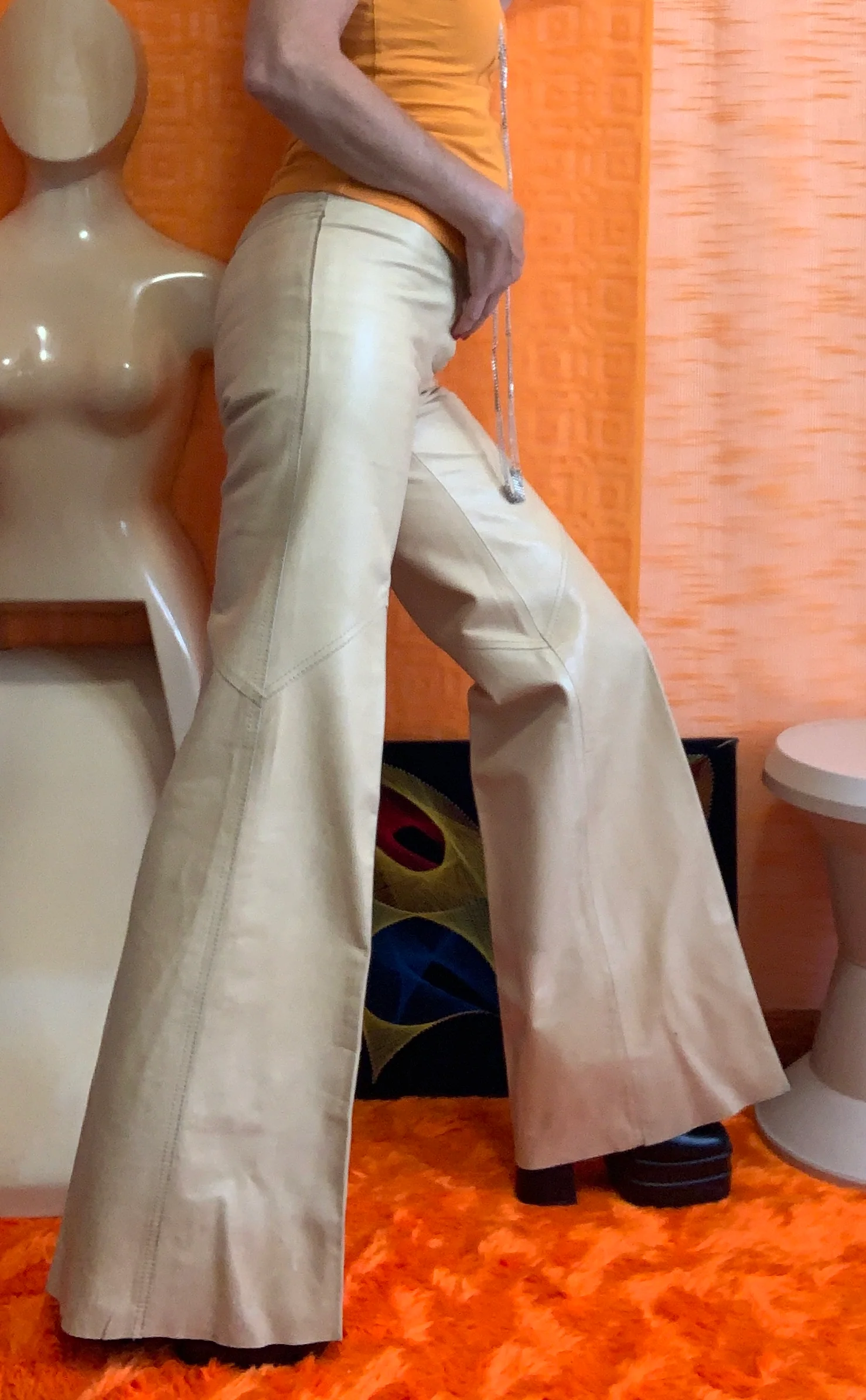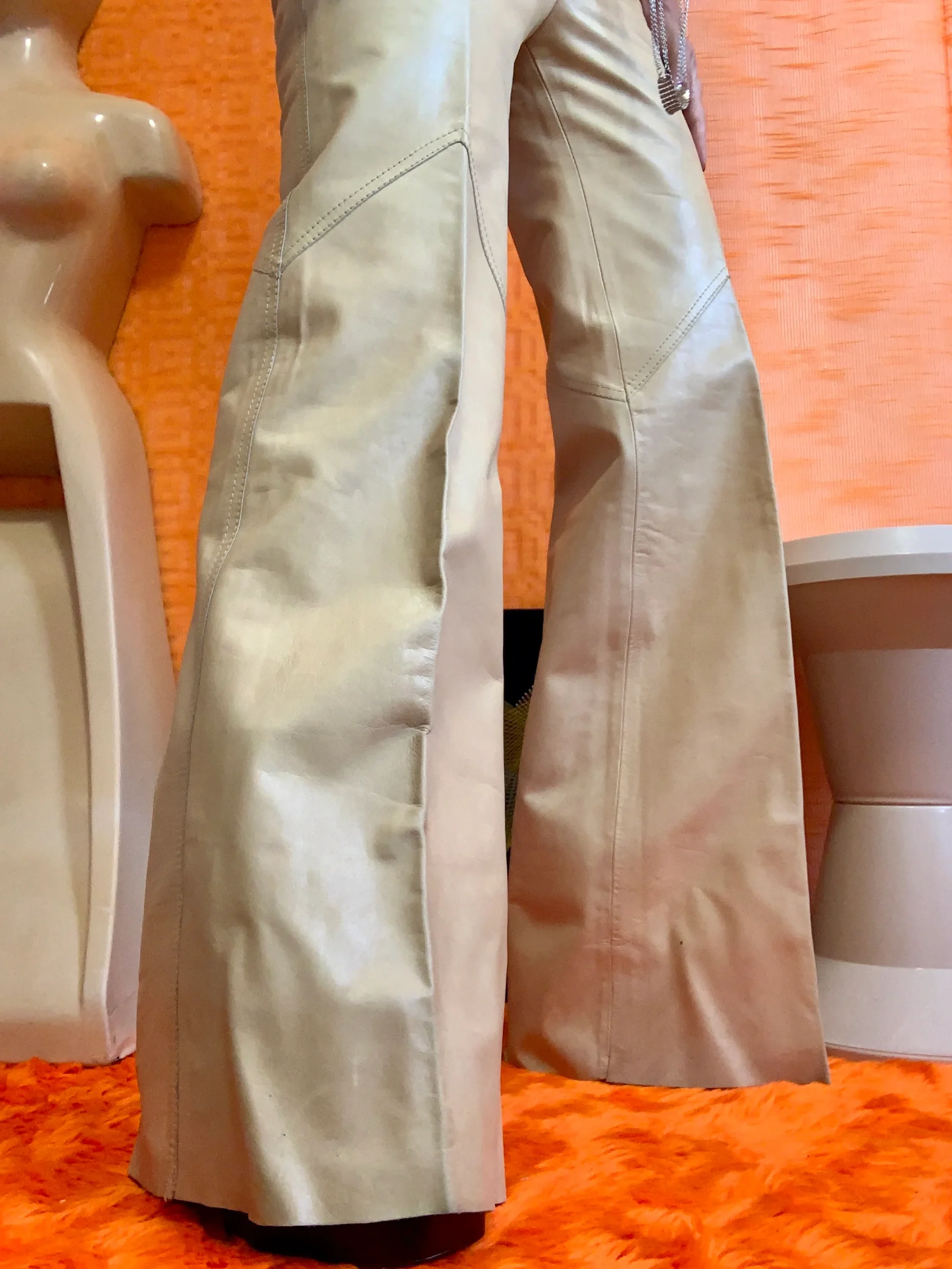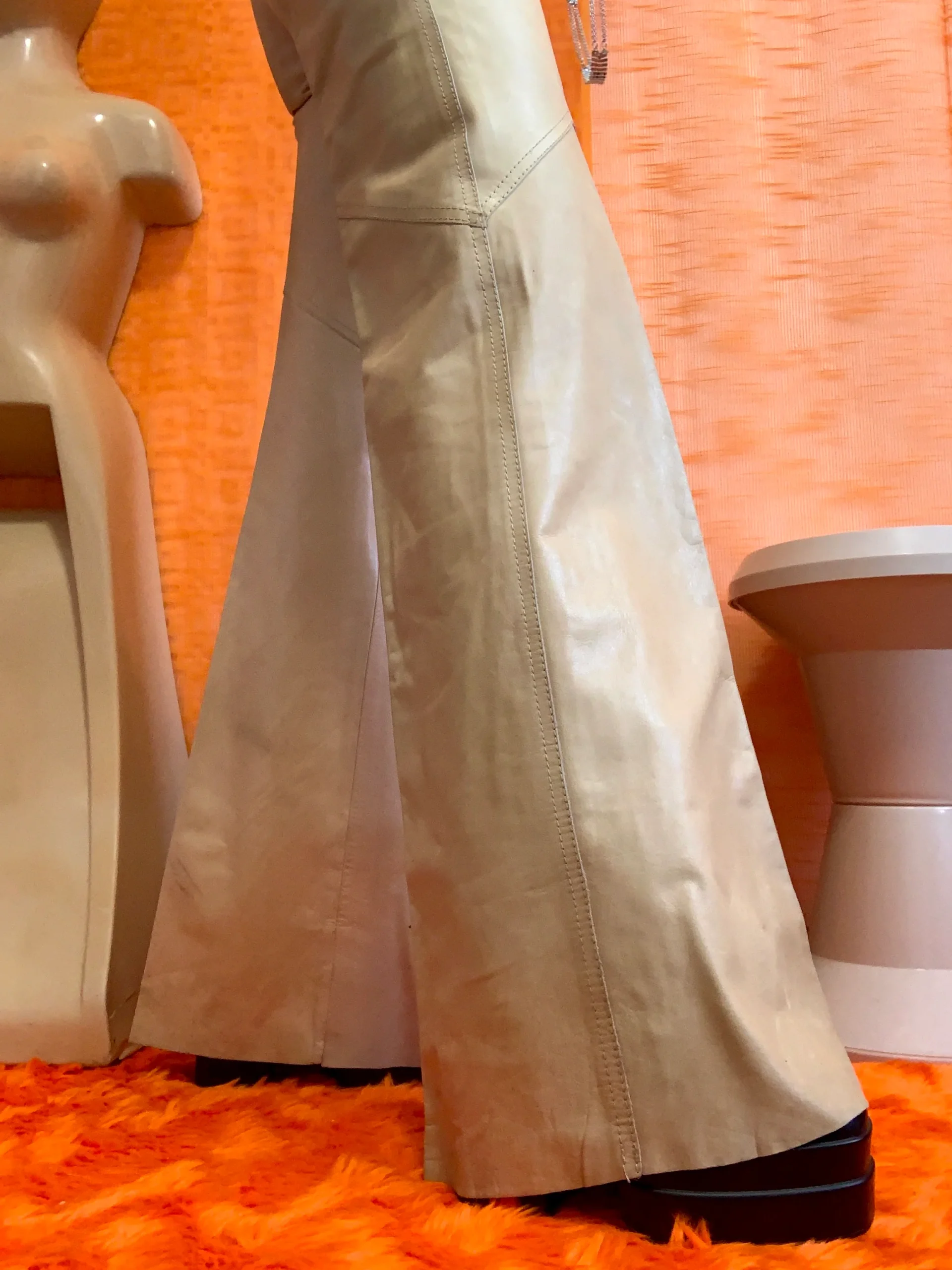 Pantalon Pattes d’éléphant en cuir beige confection fourreur – MAISON FURS ETTEX