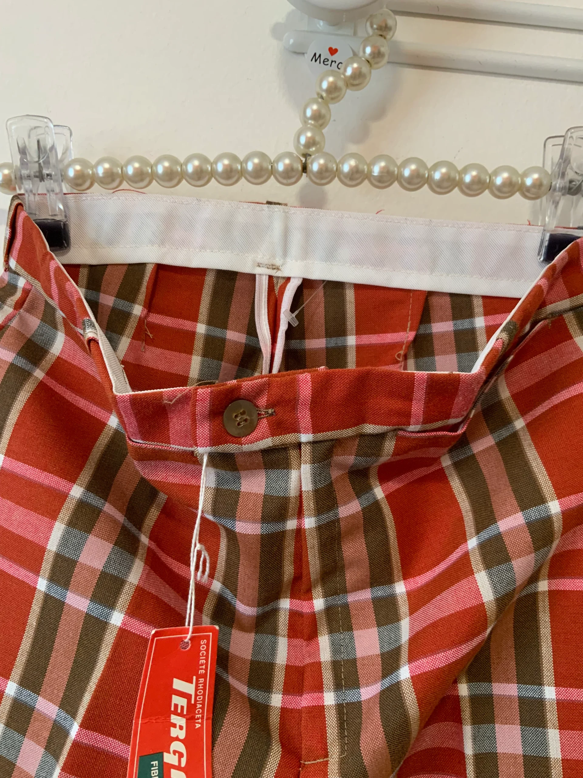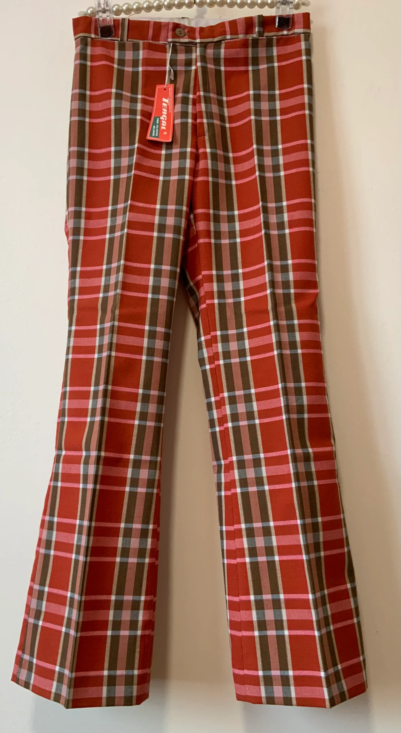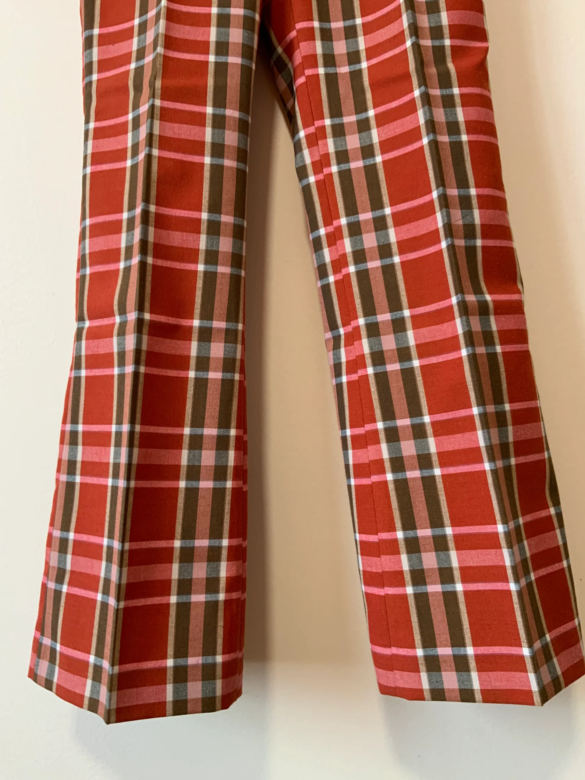 Pantalon pattes d’éléphant Flare Tergal avec Etiquette Deadstock 1970 A carreaux rouge – Une beauté seventies.