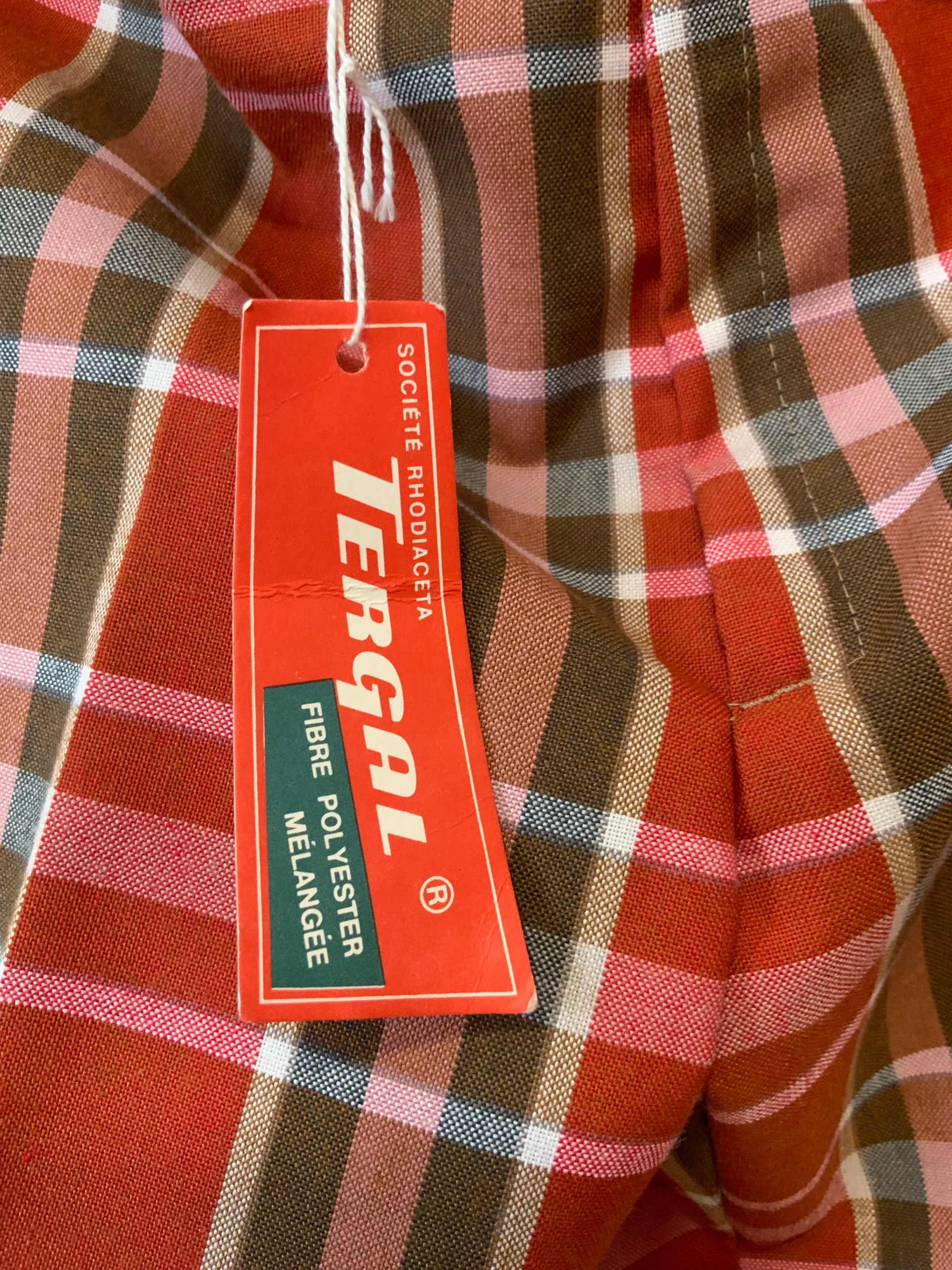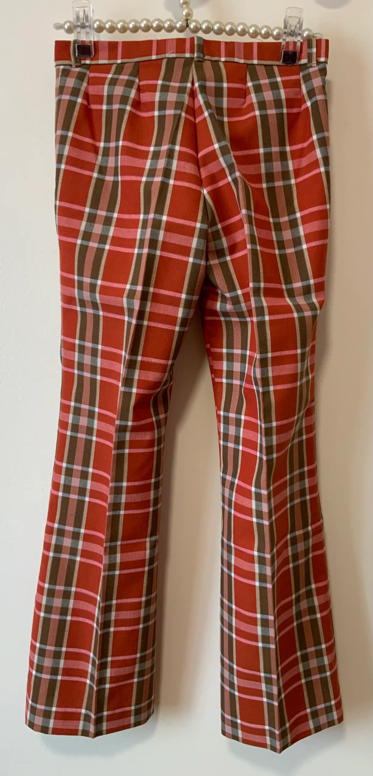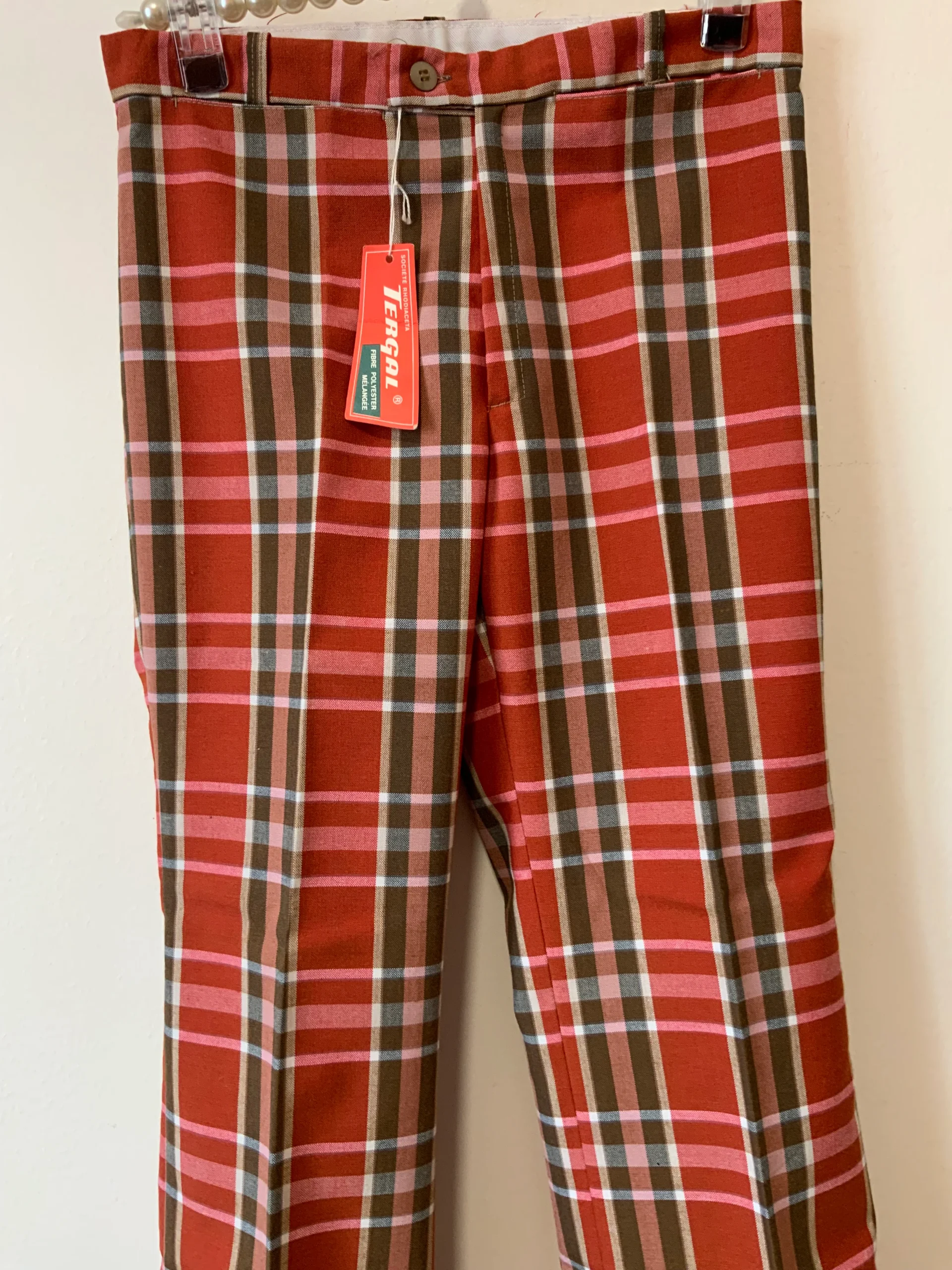 Pantalon pattes d’éléphant Flare Tergal avec Etiquette Deadstock 1970 A carreaux rouge – Une beauté seventies.