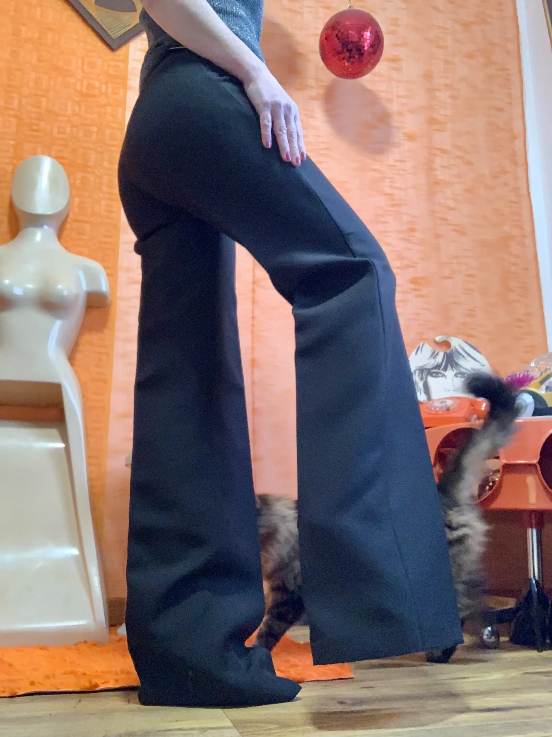 Très beau et large pantalon pattes d’éléphant Tergal 1970 Deadstock avec ses étiquettes neuves, Made in France coupe sublime très large en bas, Largeur d’une patte en bas 25 centimètres à plat.