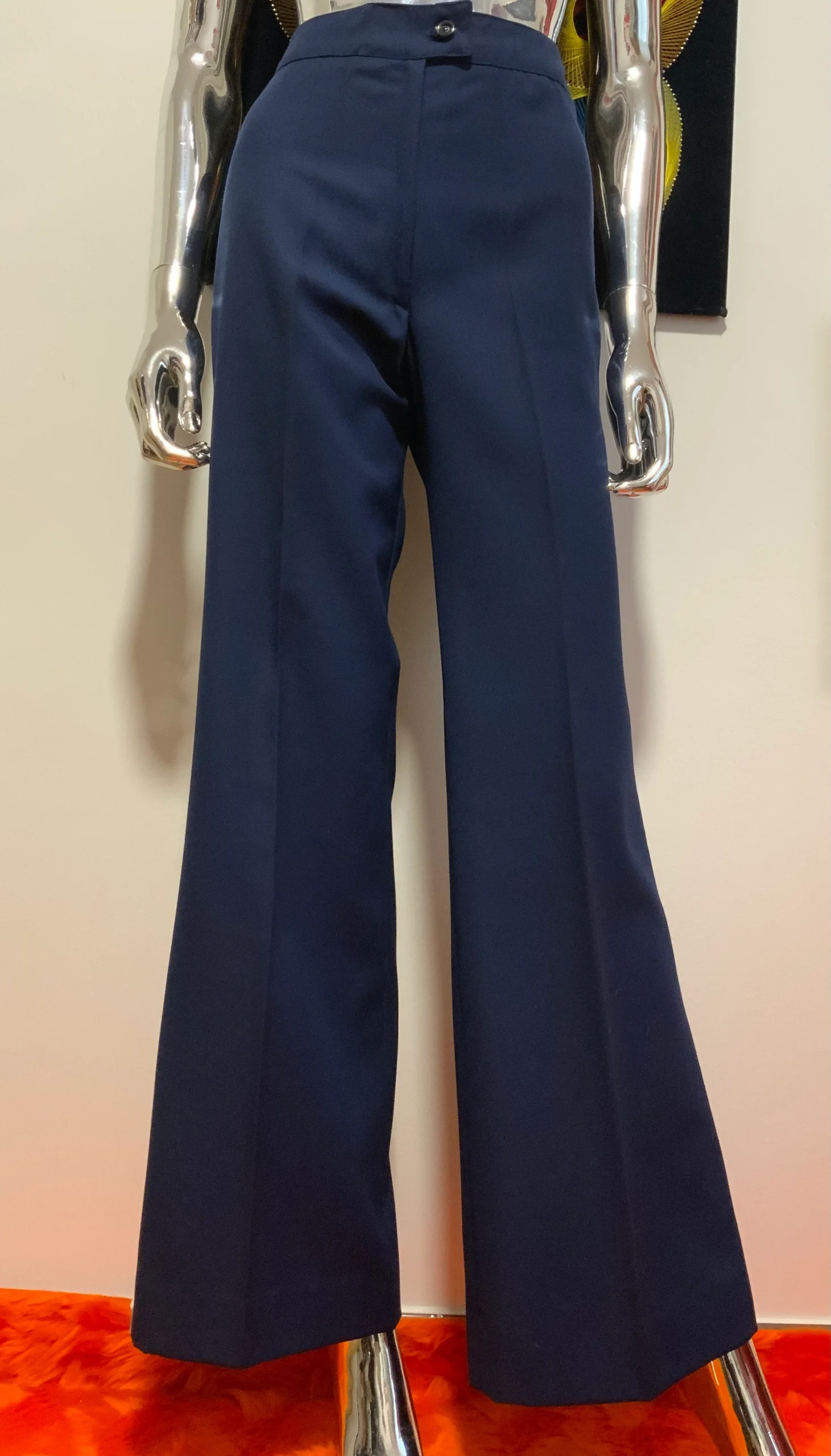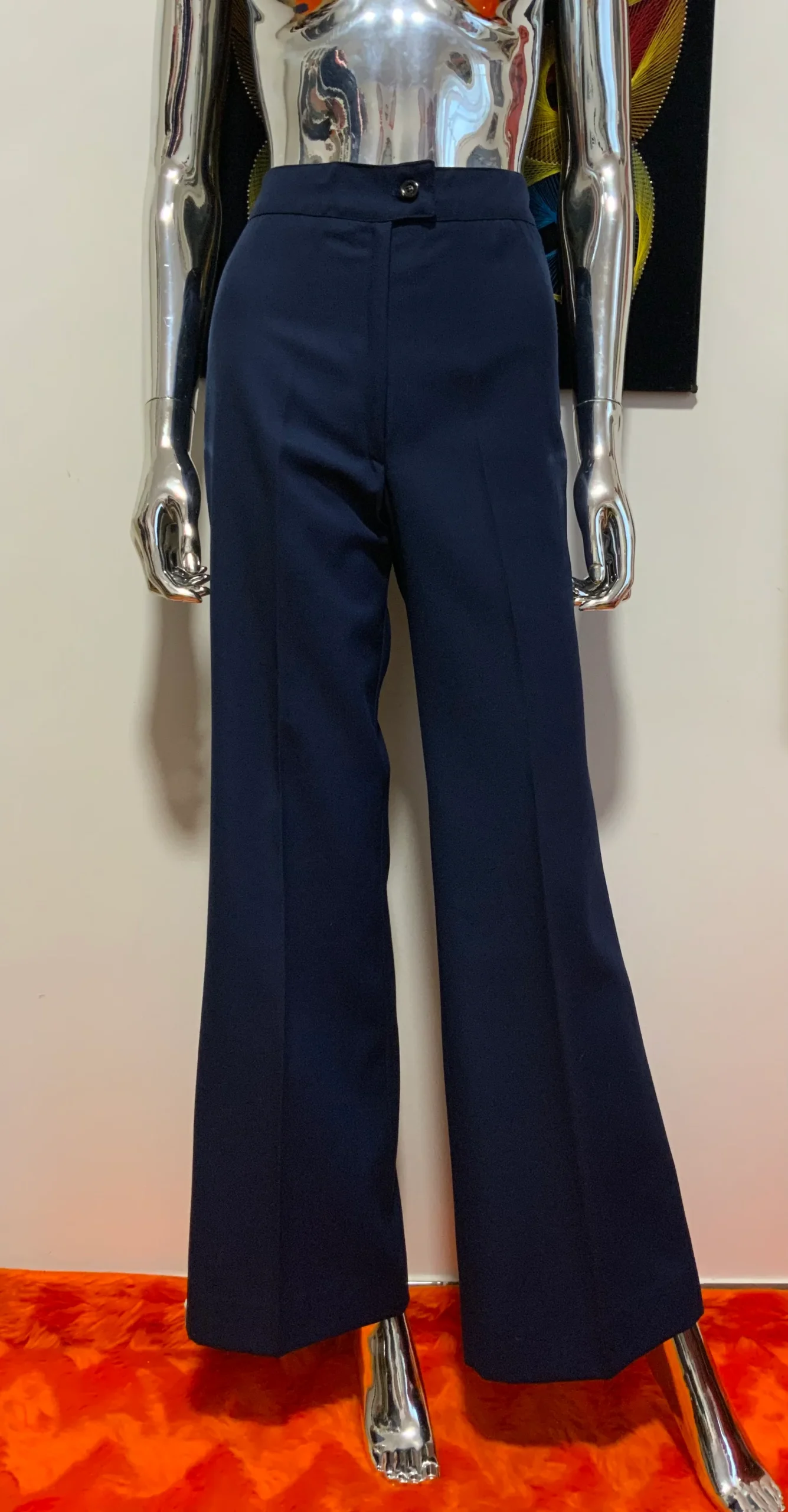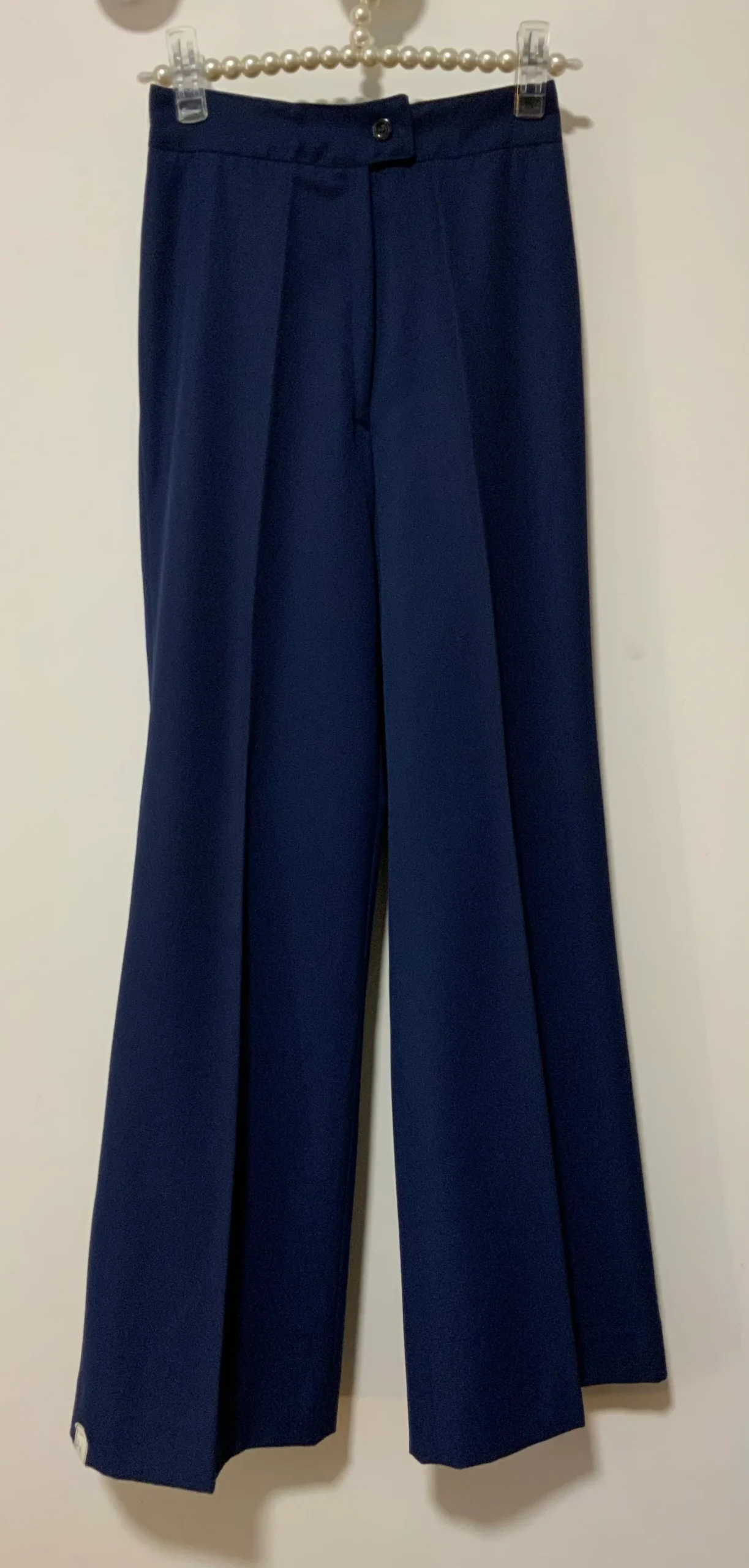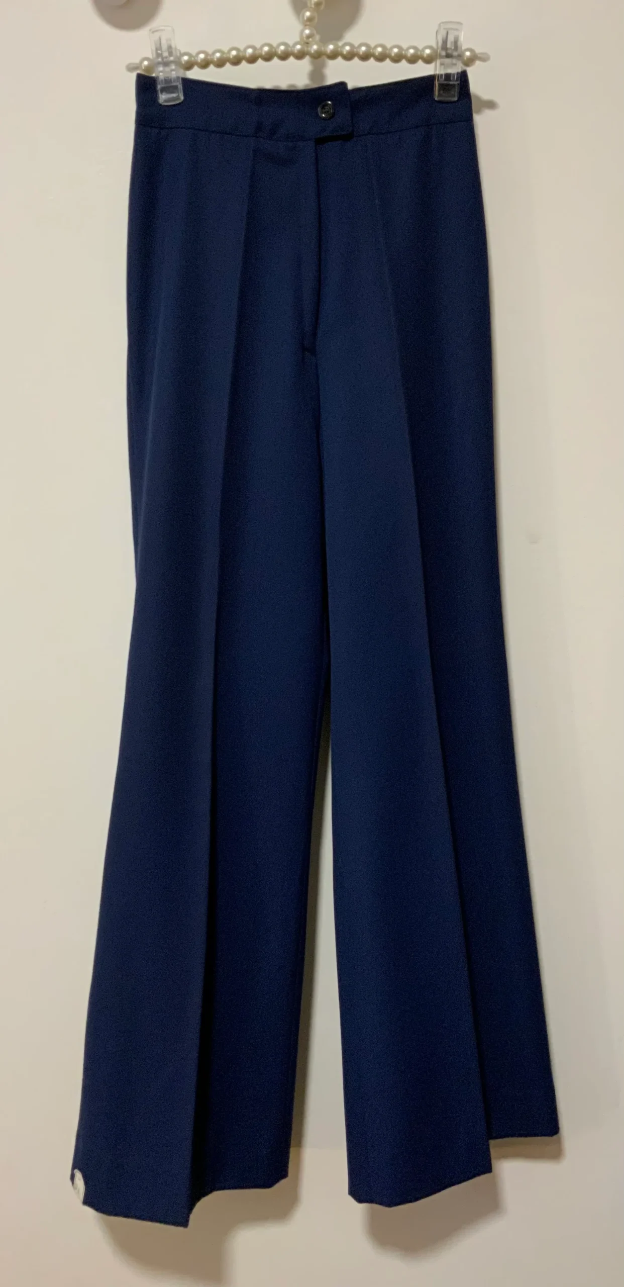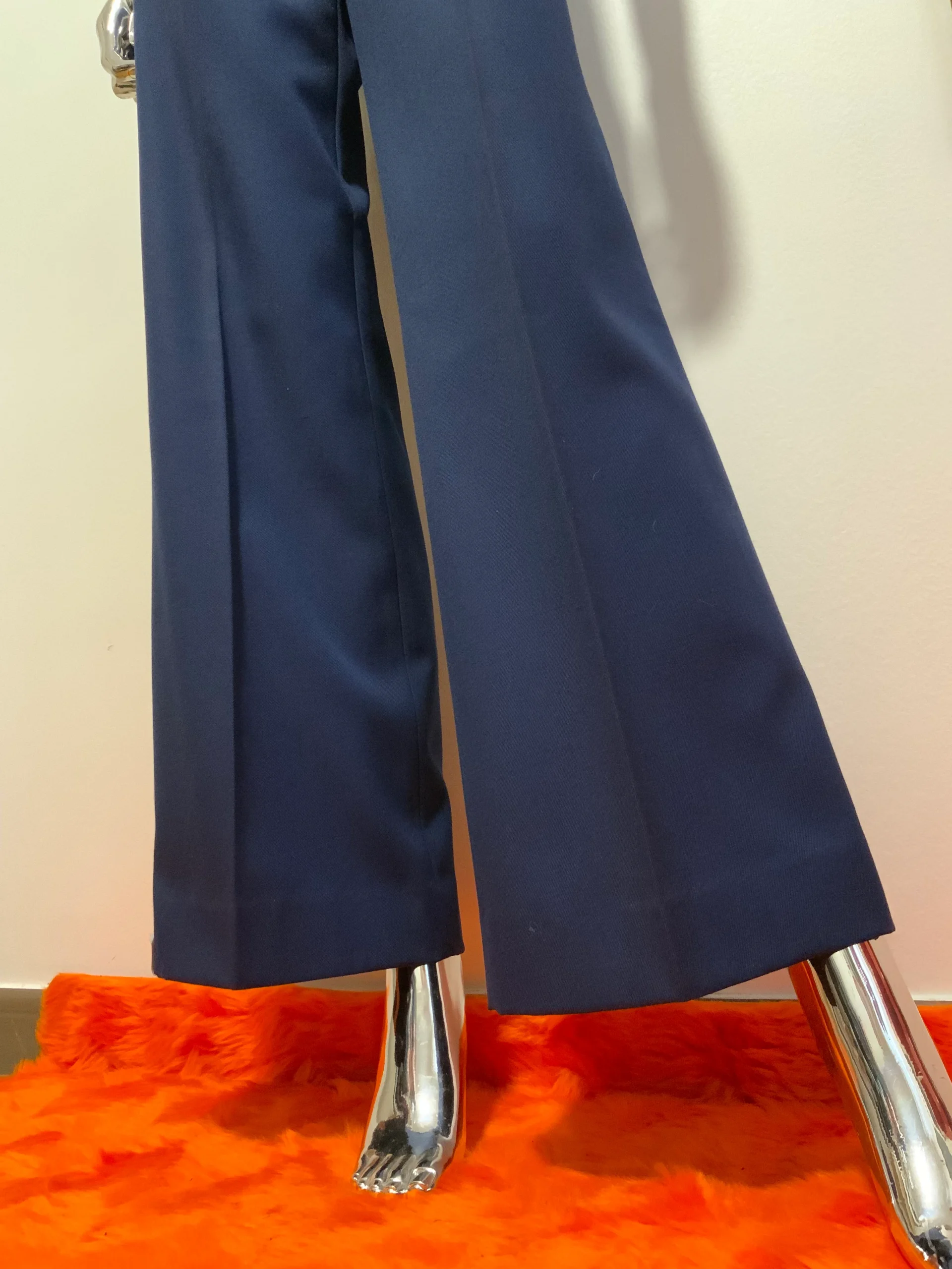 Flare Pantalon Large pattes d’éléphant Flare Marque Tergal 1970 stock rétro avec son étiquette – Couleur bleu marine – Taille haute.